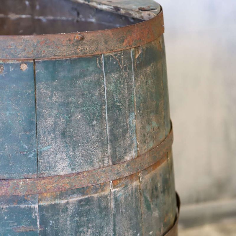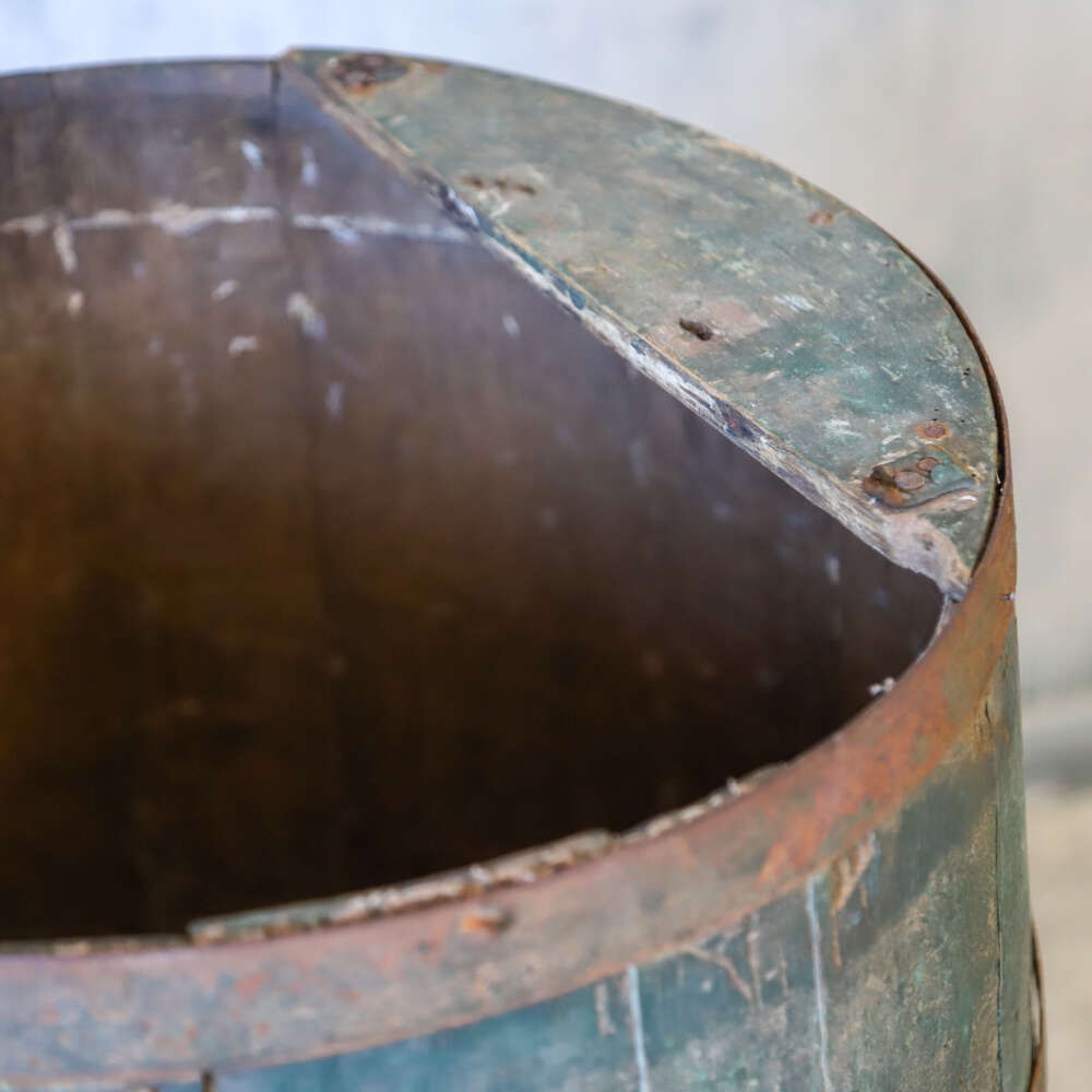 Original straps to keep the barrel together and in time worn powdery green paint.