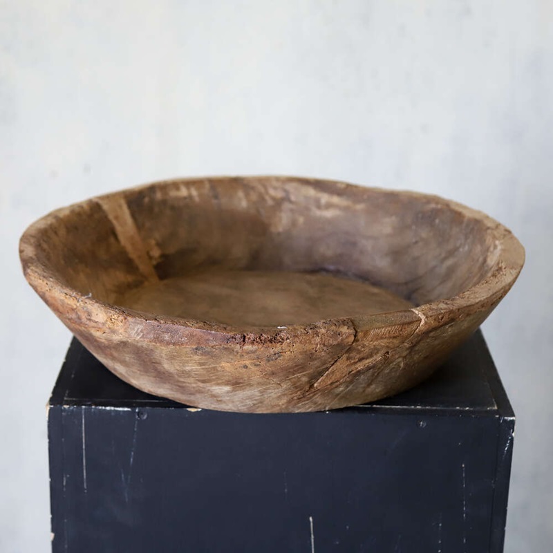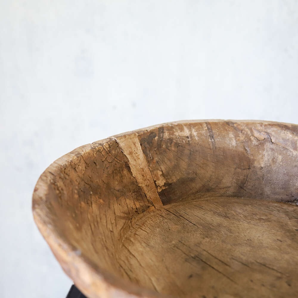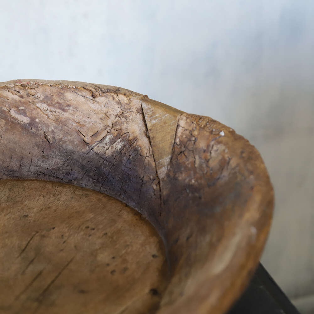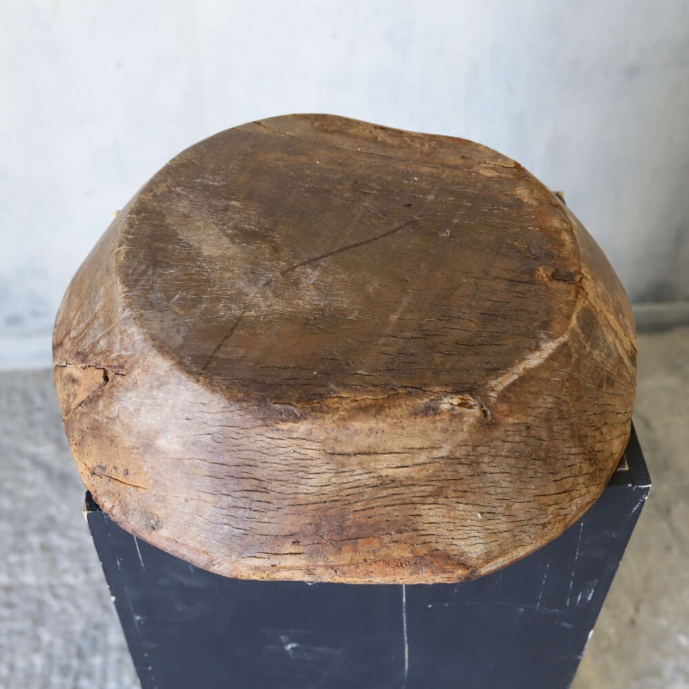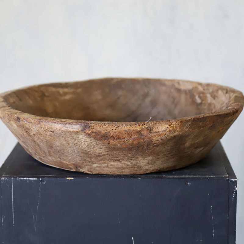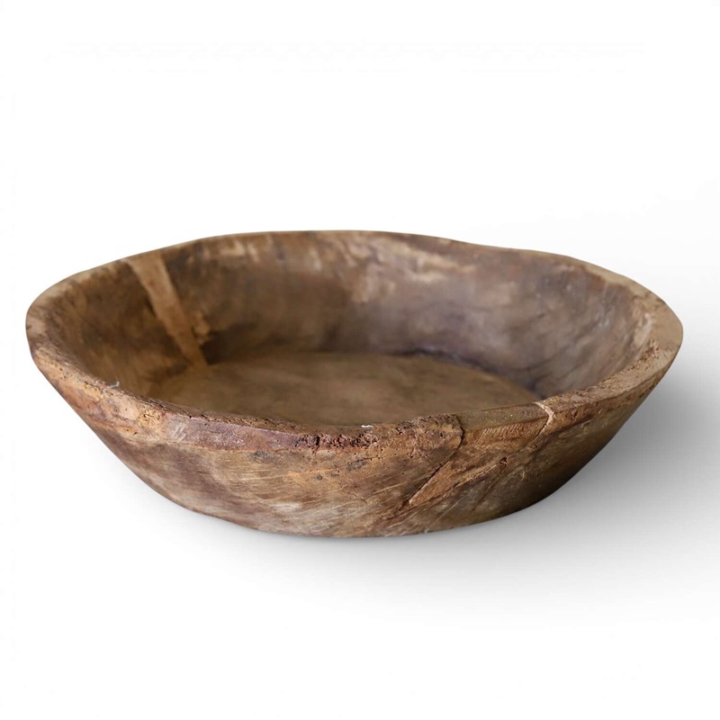 A wonderfully rustic small French dough or proving bowl, hand‑carved from sycamore and full of the warmth and character that only genuine antique kitchenware carries. The bowl shows historic patch repairs, adding to its authenticity and charm — the kind of honest, working‑life detail that makes these pieces so appealing.