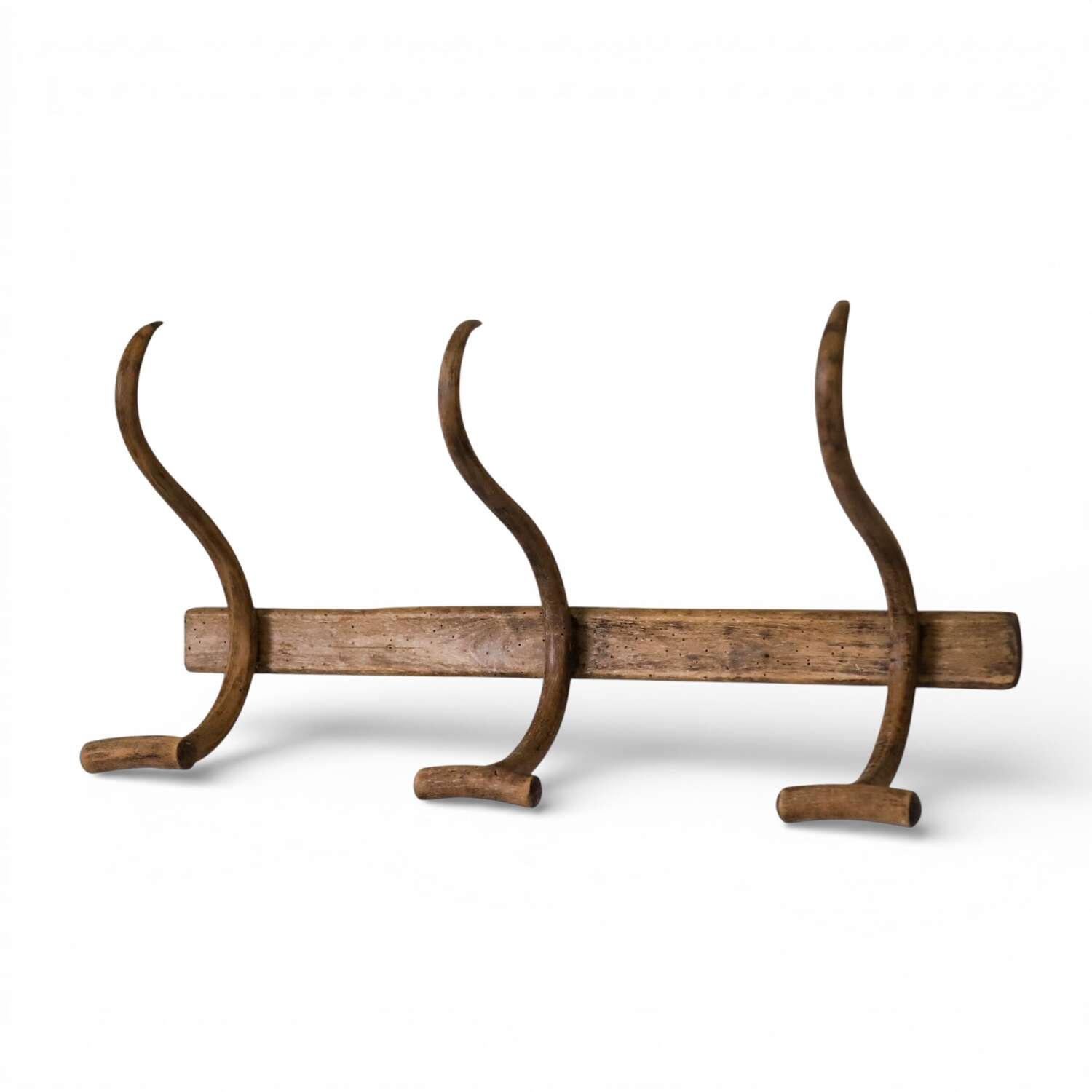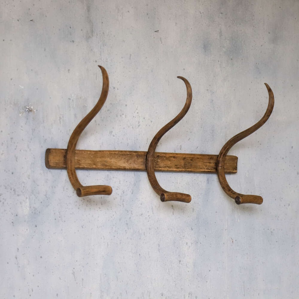 A charming vintage 1920s bentwood wall‑hanging hat and coat rack, made in Germany or Austria and showcasing the classic curved lines and lightness of form associated with early 20th‑century bentwood design. Compact, practical, and beautifully made, it offers both decorative appeal and everyday usefulness.