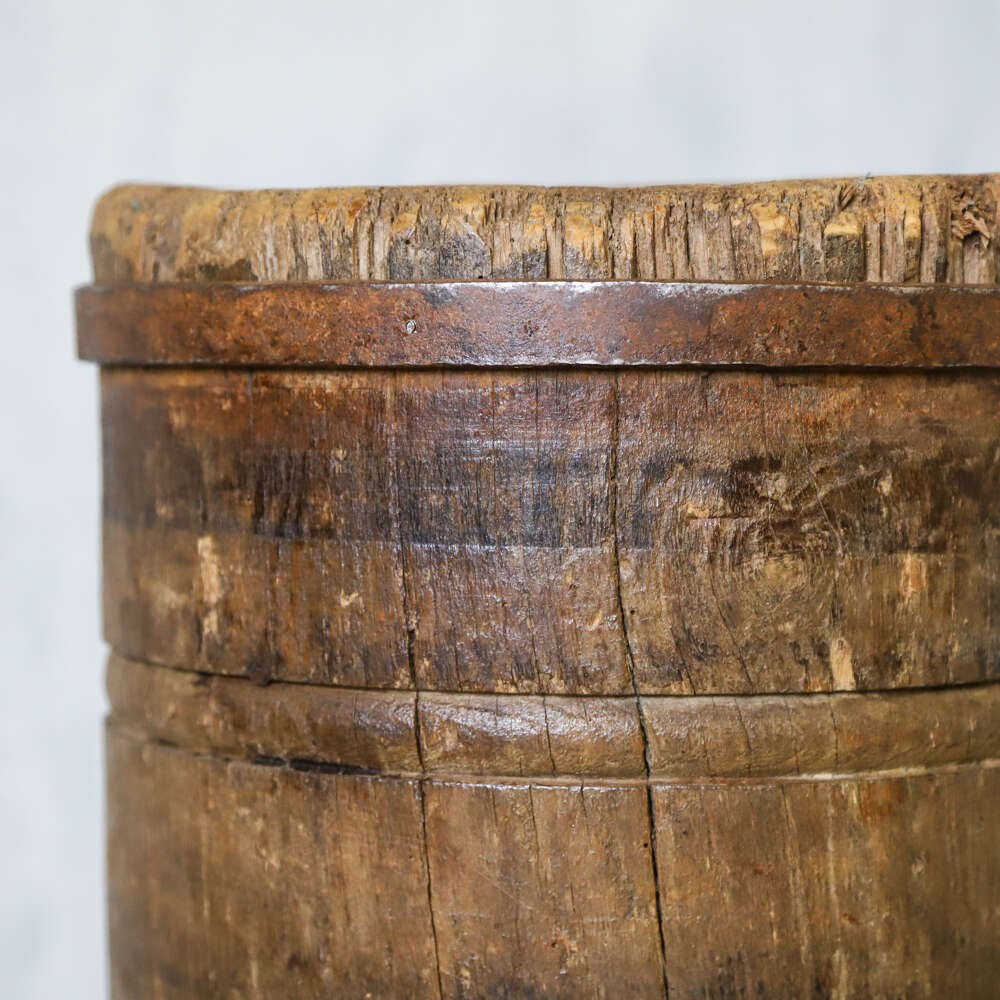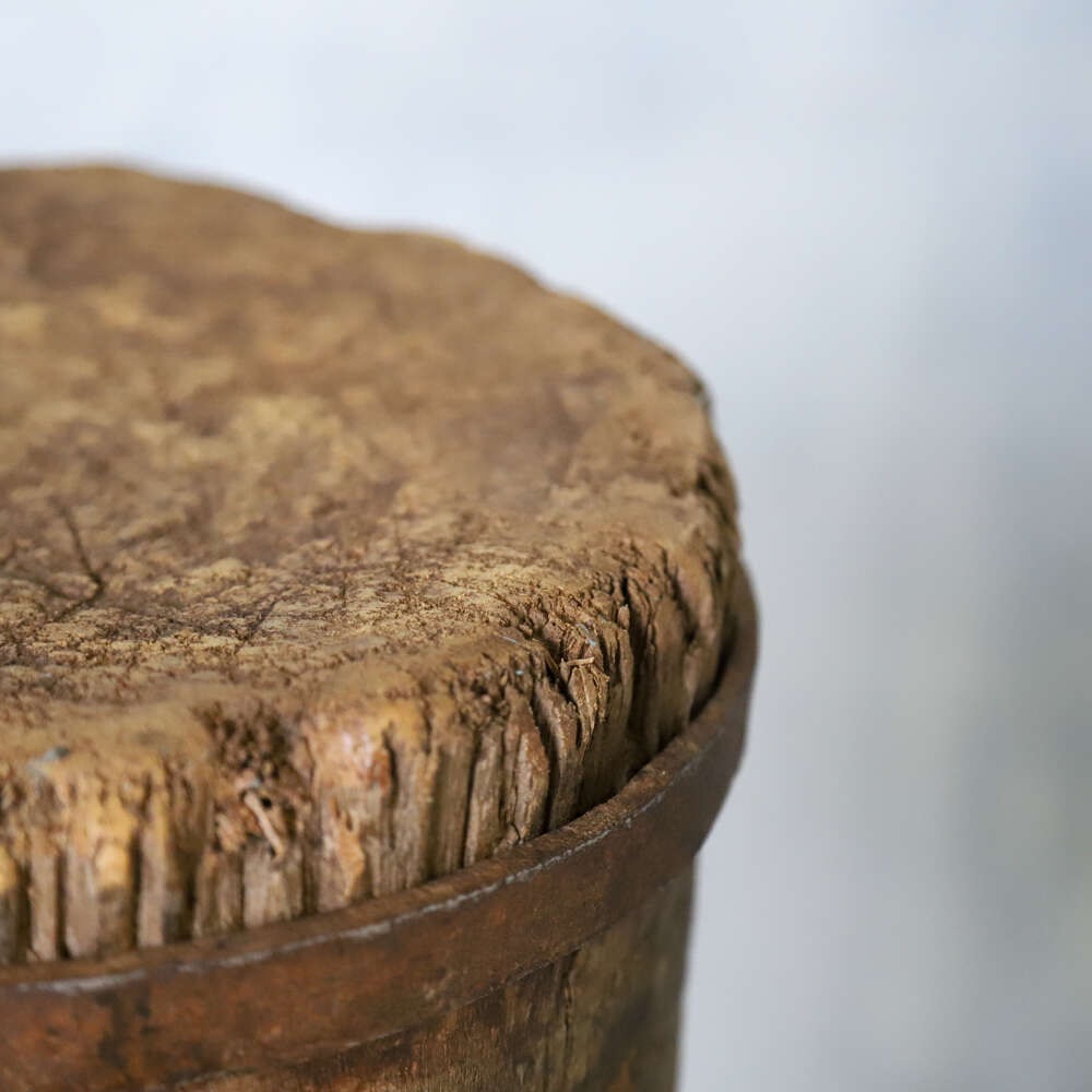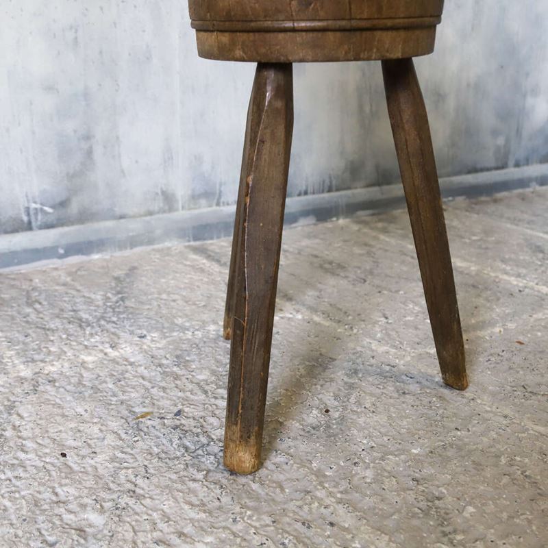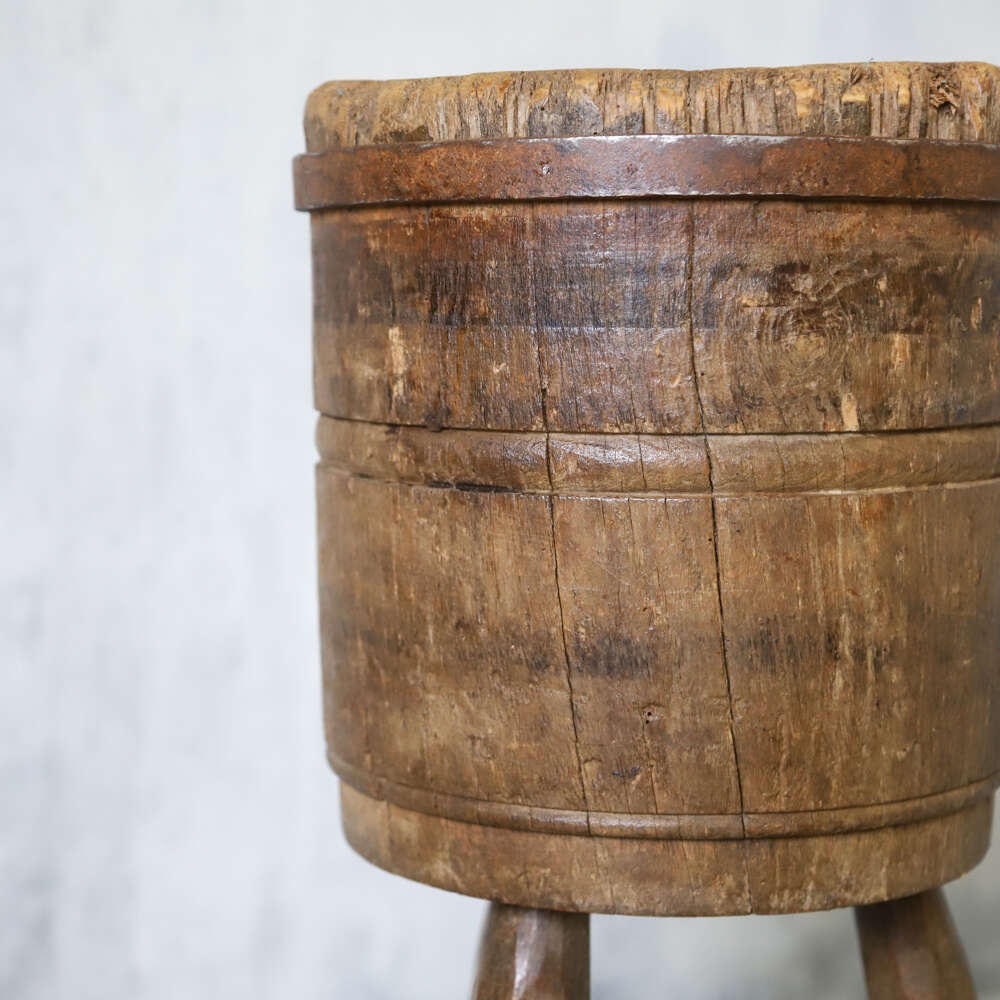 A wonderful characterful Vintage French Charcuterie Chopping Block, crafted from Oak and Elm on raised sturdy legs. These Blocks were used in Butchers shops and Charcuteries across France in the 19th and early20th Centuries. With a beautifully time worn surface, rich patina and a solid honest construction this would make a superb decorative accent to any Kitchen, Pantry or Dining space working well as a small side table or display stand.