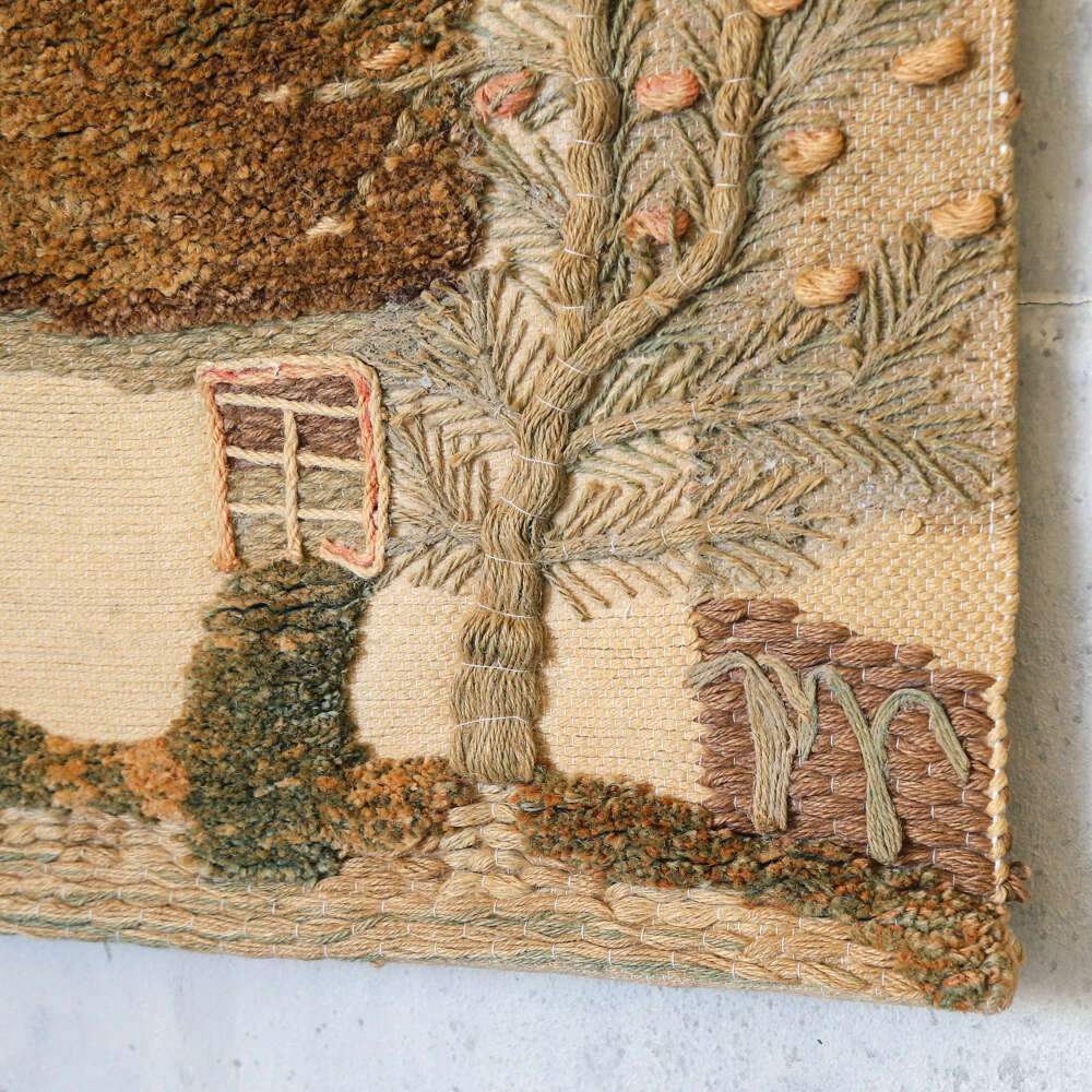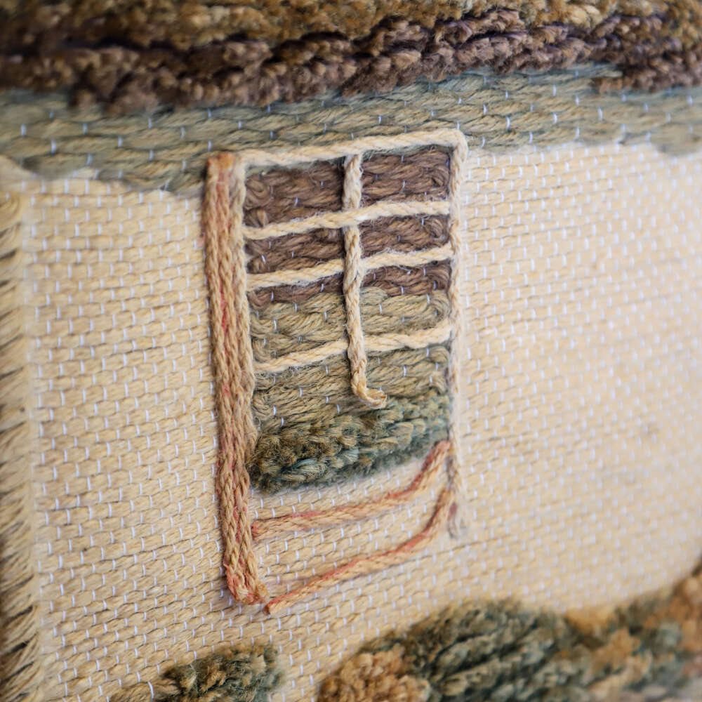 - Woolwork embroidery has long been a favoured medium for capturing domestic and pastoral scenes, its textured stitches lending warmth and depth to the subject. This mid‑century example depicts a classic English country cottage - whitewashed walls, thatched roof, and a garden in bloom - worked entirely by hand in richly coloured wools. The evenness of the stitching and the harmonious palette speak to the skill and patience of its maker.
