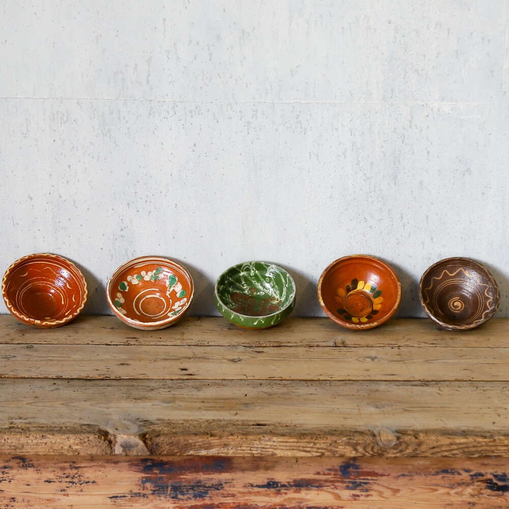 A charming set of five individual earthenware bowls from Wales, dating to the 1920s. Each piece is semi-glazed, giving a wonderful contrast between the earthy, natural clay and the softer sheen of the glaze. Varied in size yet harmoniously related, they make a delightful decorative grouping. The largest measures 7 cm high by 17 cm in diameter. All are in good condition, carrying the subtle signs of age and use that lend them authenticity and warmth.