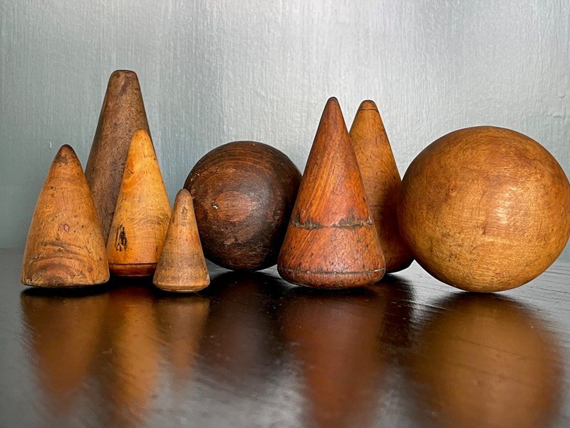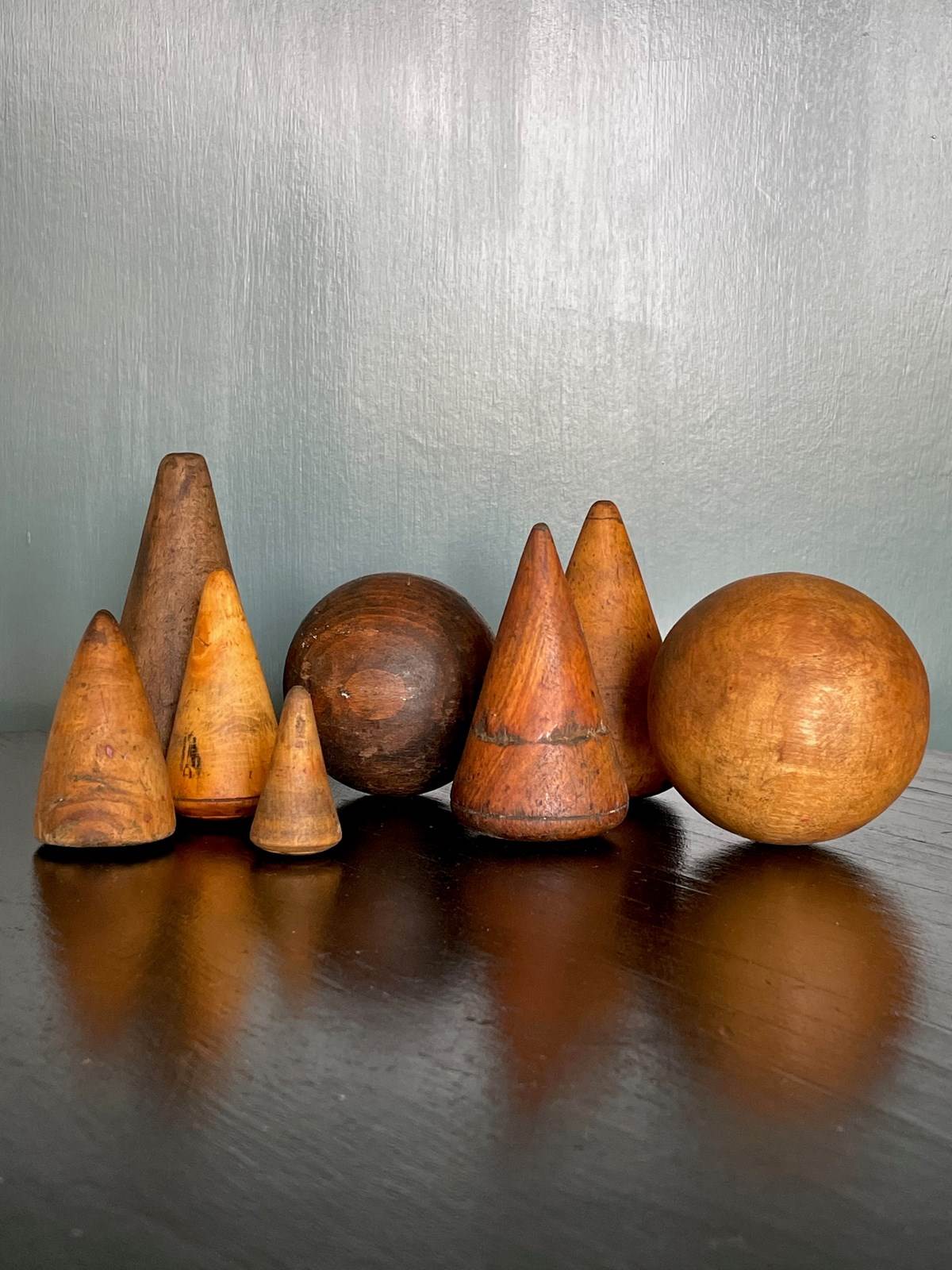 A lovely collection of sculptural vintage wooden forms, with gentle wear consistent with age. Eight in total, and price is for the set.