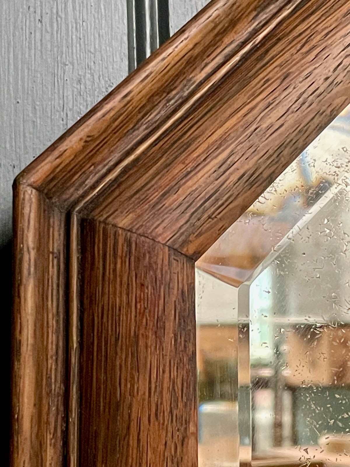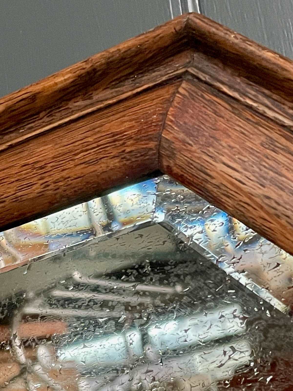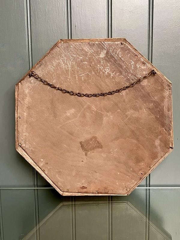 A simple but appealing English octagonal mirror, with both a bevelled edge, and the most appealing distress to the mirror backing. The foxing to the glass is near perfect – enough to reflect the room, but not enough to reveal your wrinkles! The original chain is present to the reverse, so ready to hang.