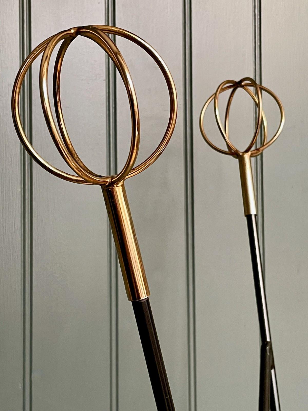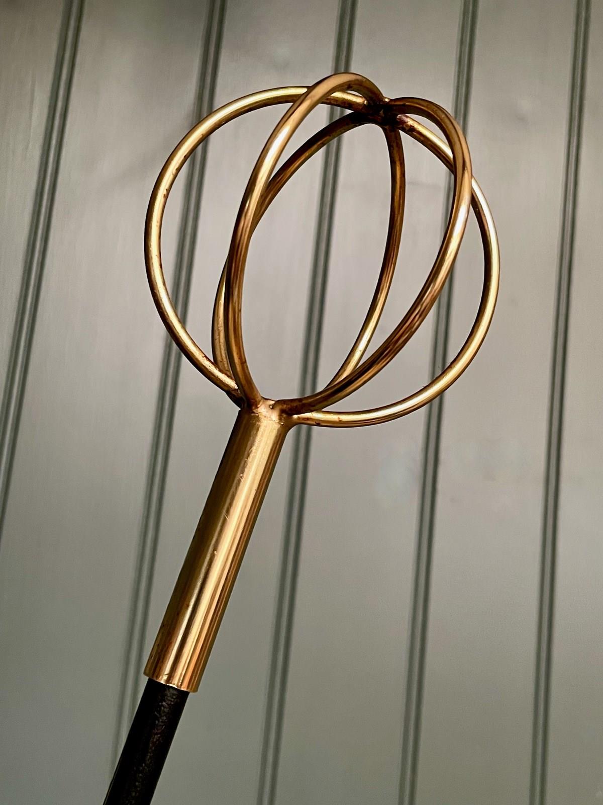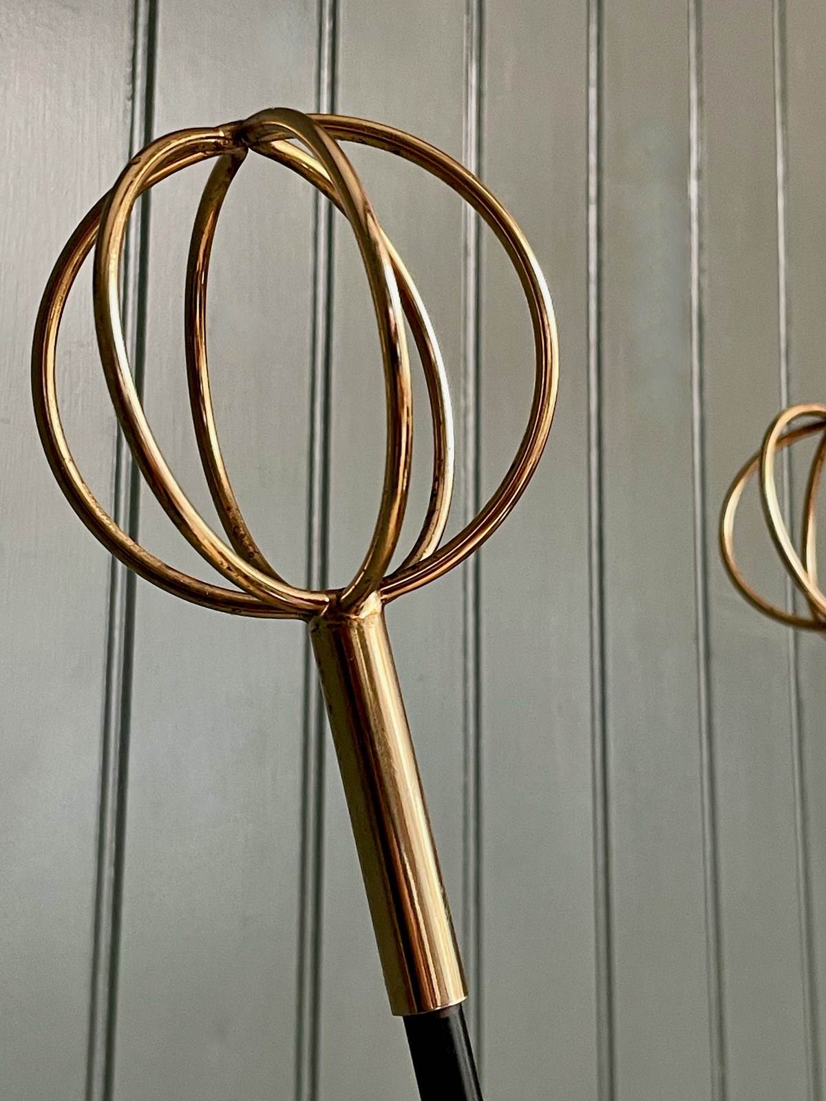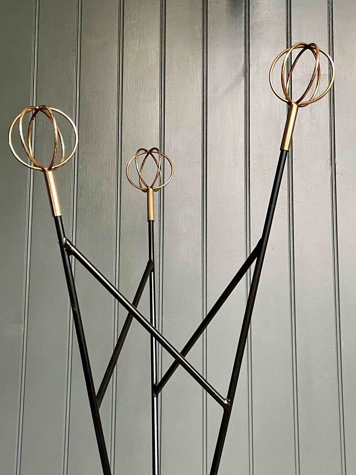 A very striking mid century coat stand by Roger Feraud, with three open brass spheres above an elegant stem in original black paint. Lovely condition, with just the lightest of wear consistent with age.