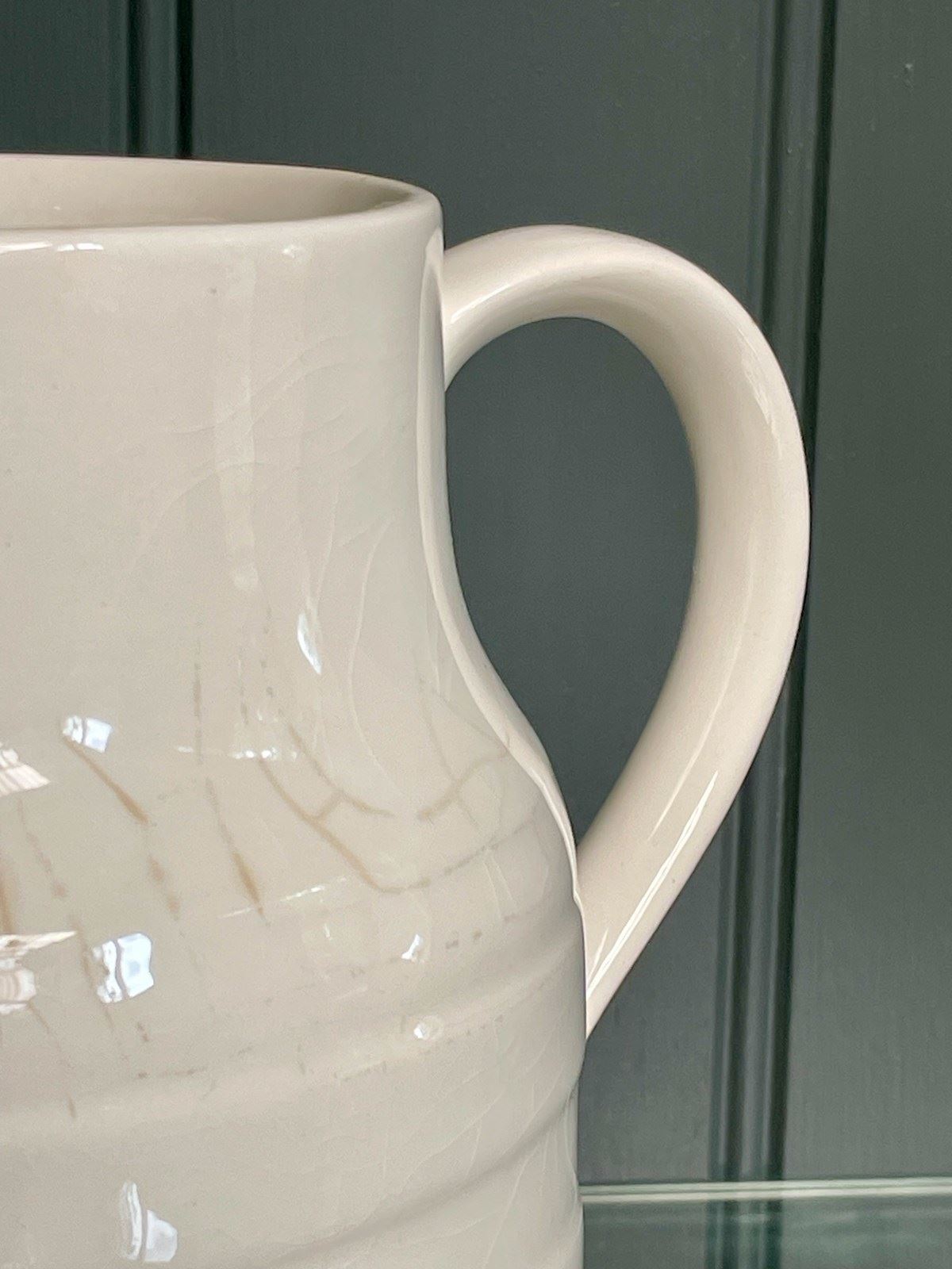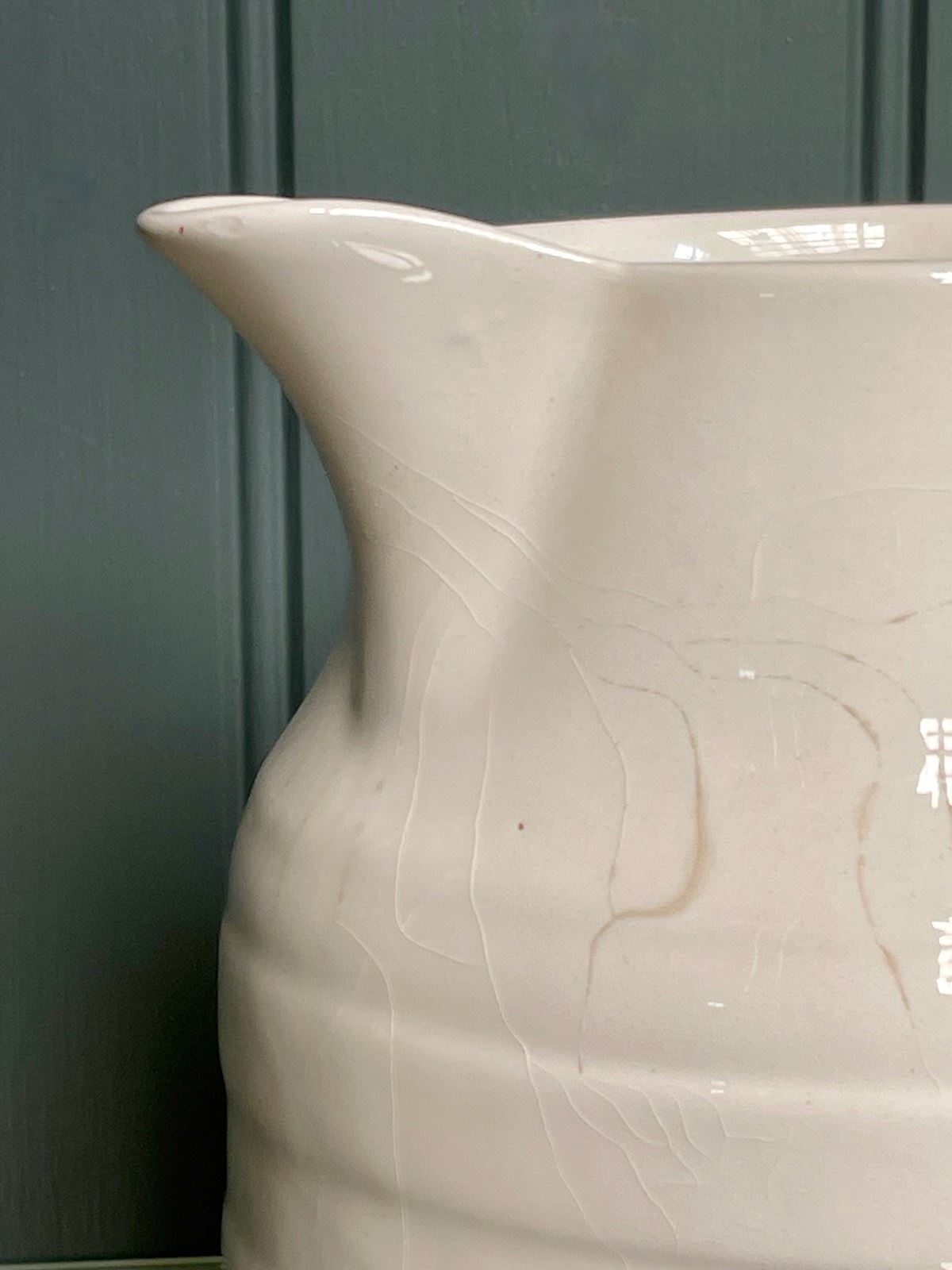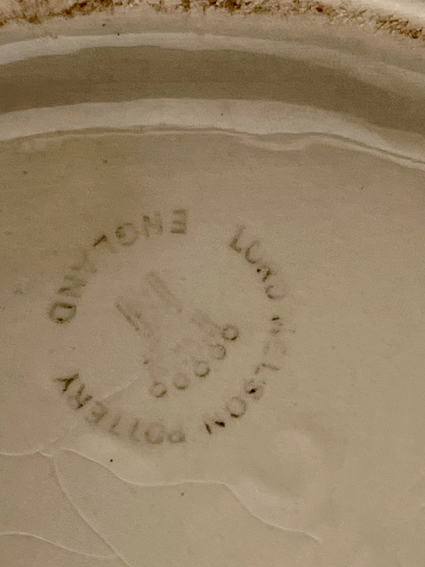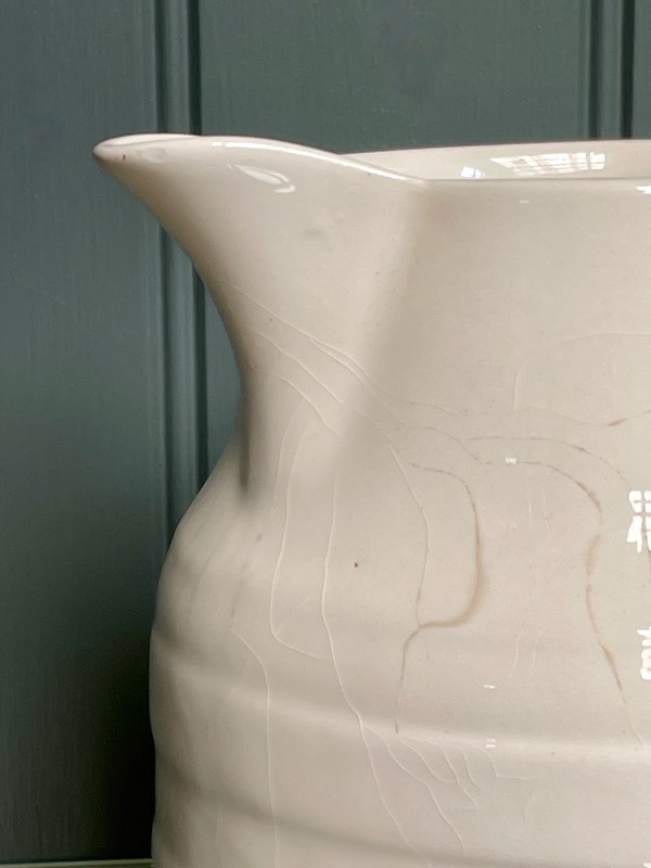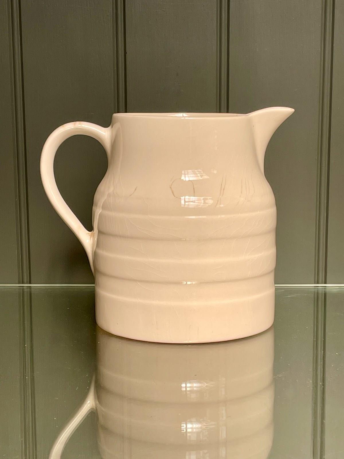 A classic English vintage milk jug, with a ‘Lord Nelson Pottery’ maker’s transfer to the underside. This is an unusually large example, and would also make a pleasing kitchen vase. No knocks or chips, but a little light wear consistent with age.