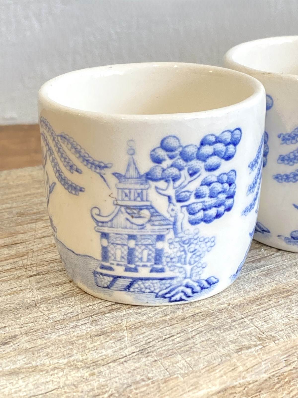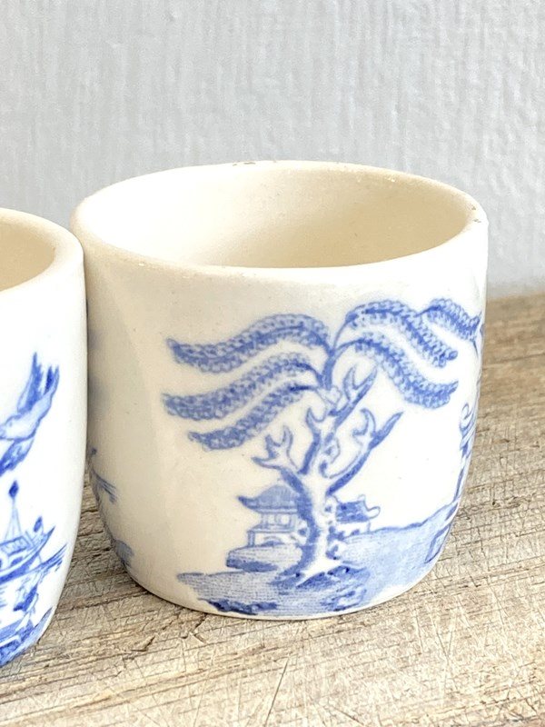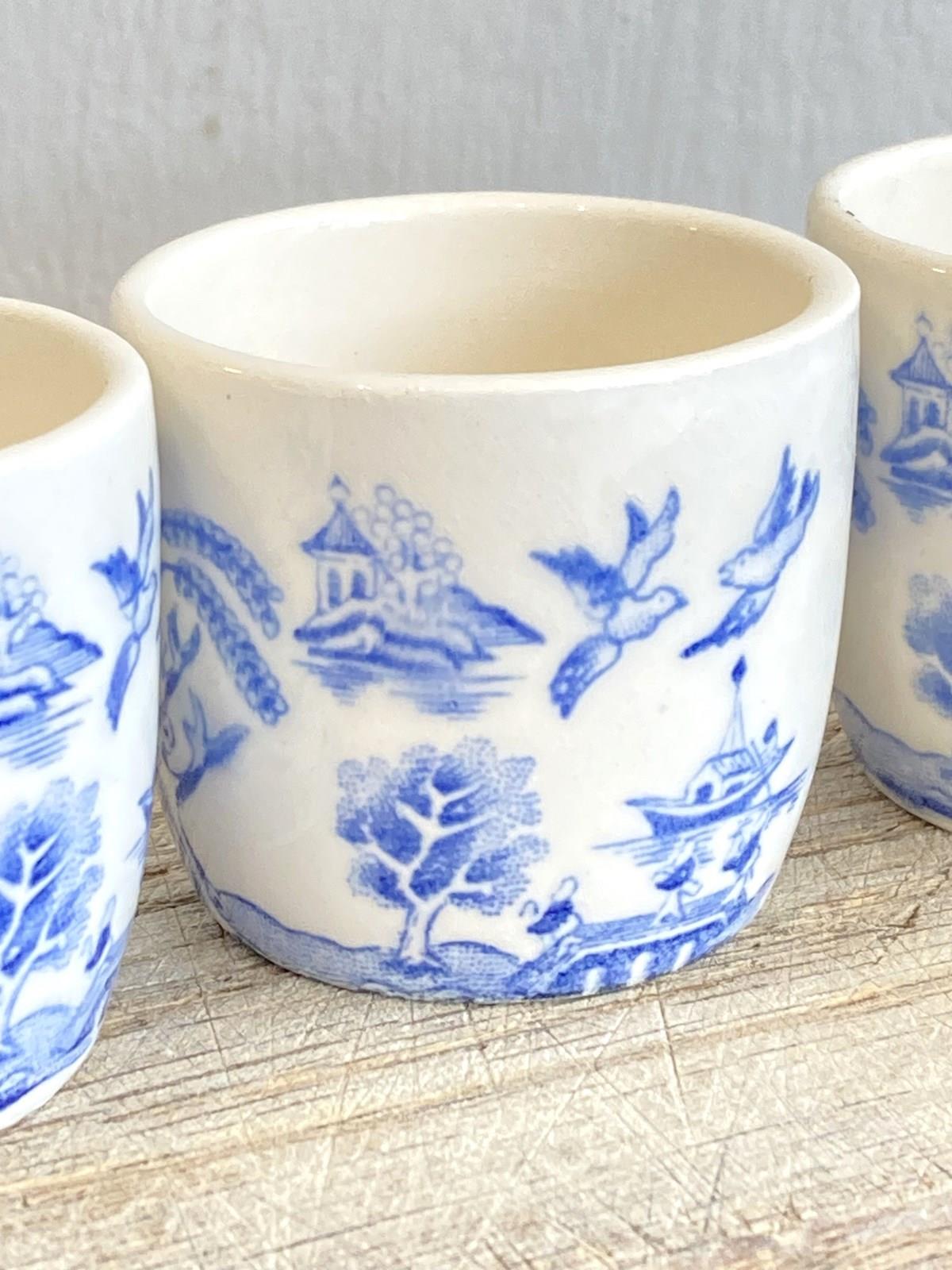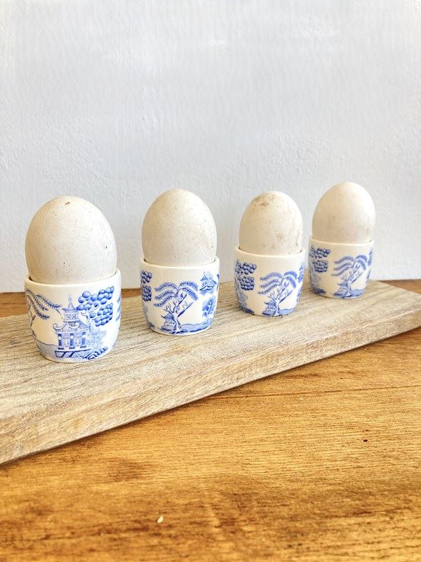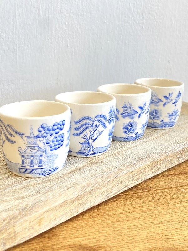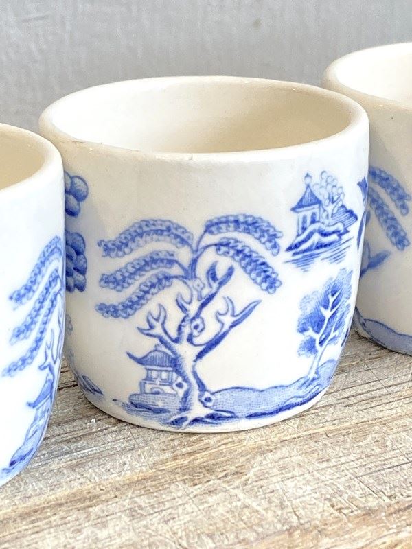4 Vintage Willow Pattern Egg Cups