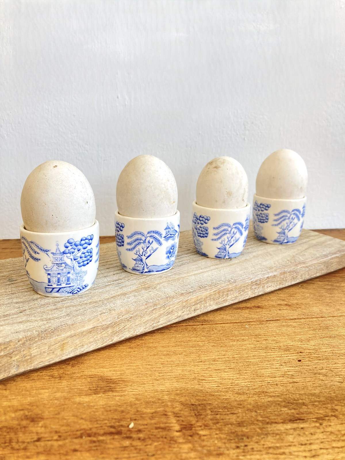 A very sweet little set of 4 vintage ceramic egg cups with the ever-popular blue & white willow pattern, all in lovely condition.