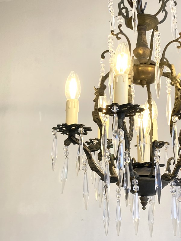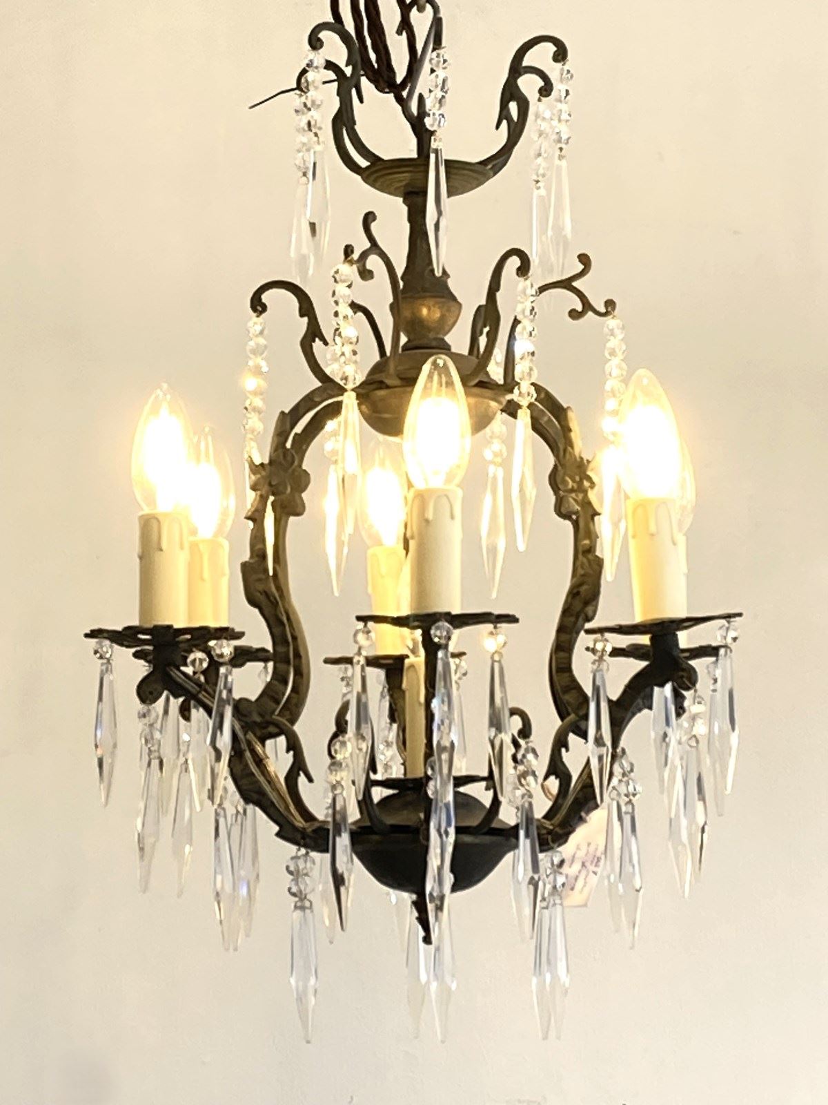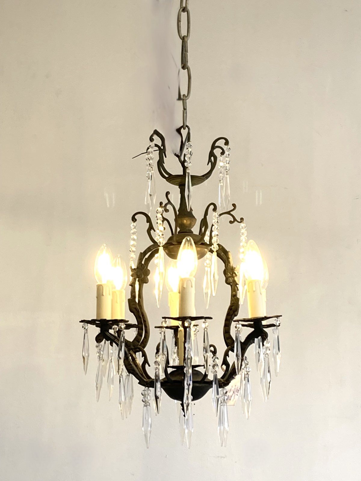 Antique Birdcage Chandelier With Icicle Crystals