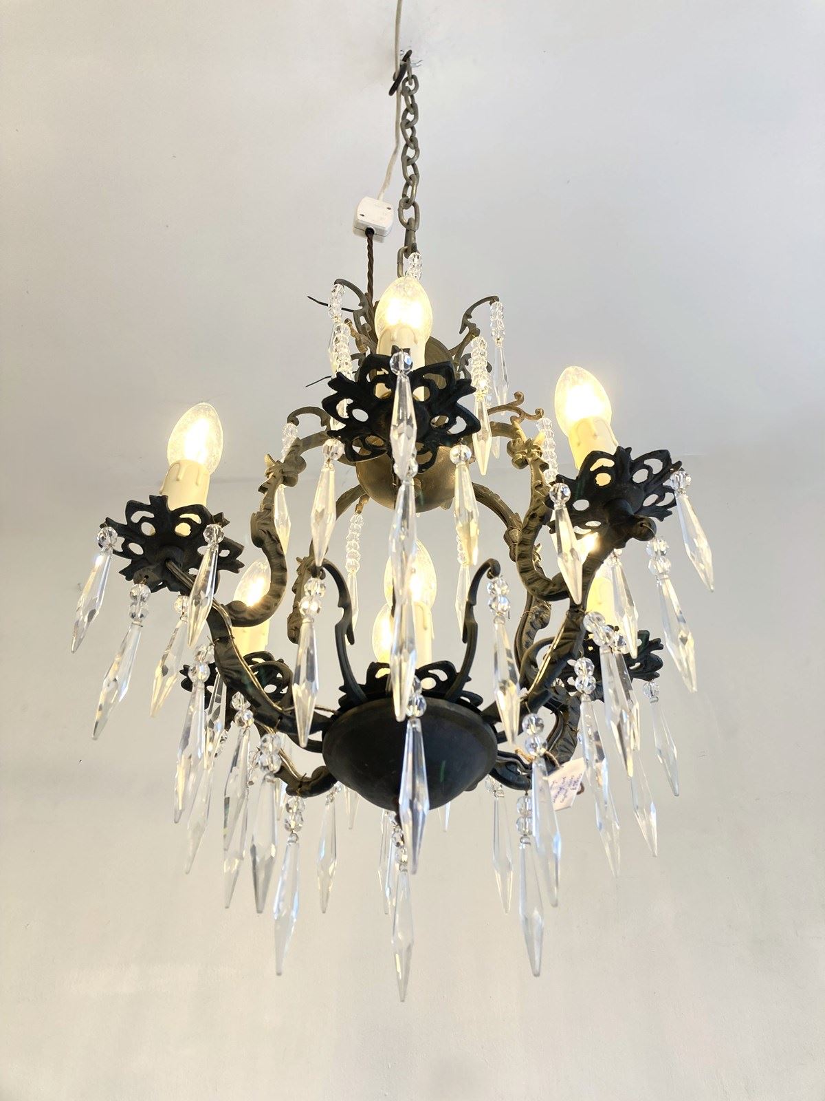 All of our chandeliers have been rewired and restored to current British specifications and are in full working order. We recommend that all chandeliers are fitted by a qualified electrician and are securely fitted into a joist.