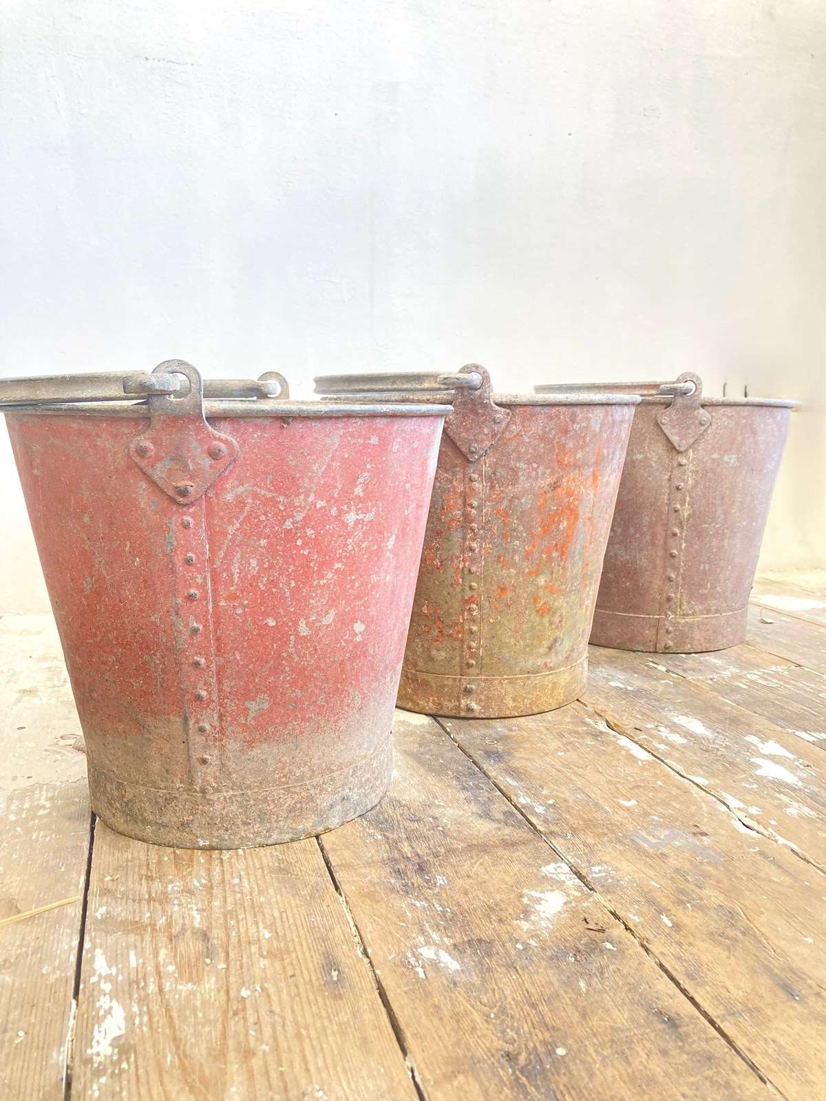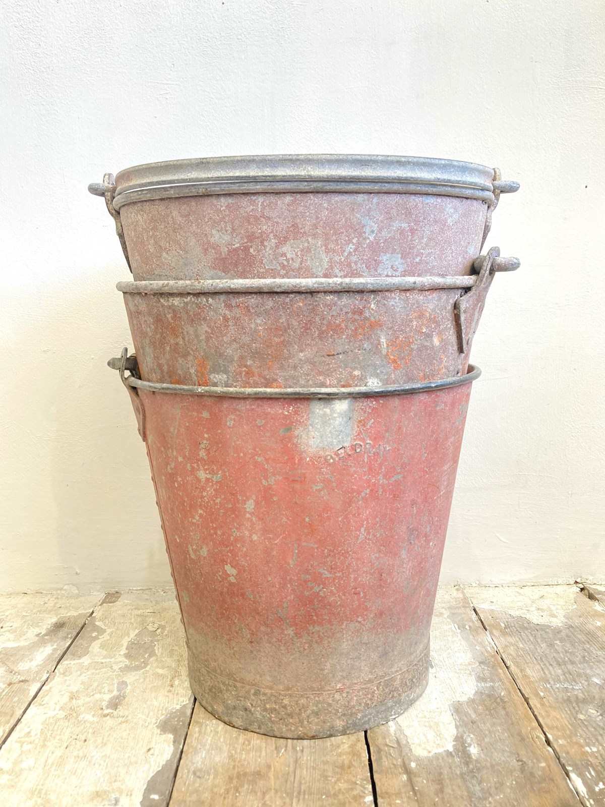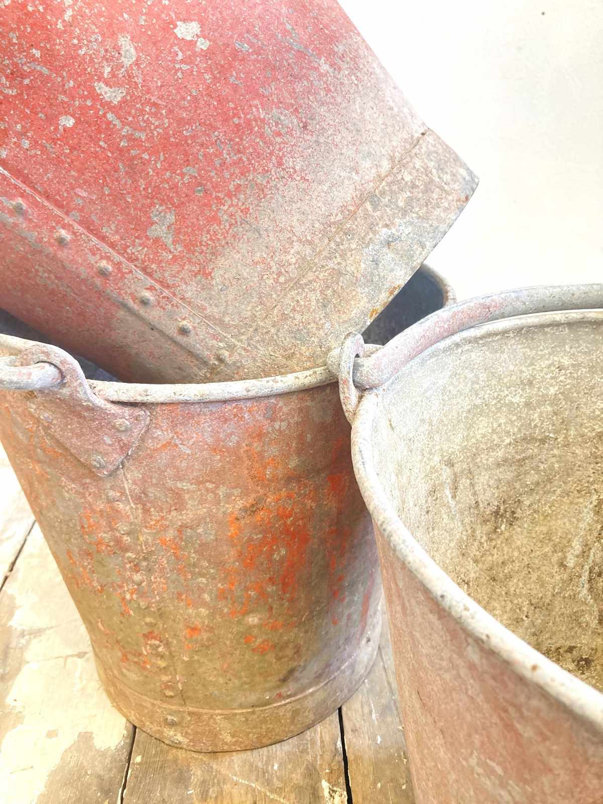 These old fire buckets are so beautifully made with incredibly thick galvanised steel and the most wonderful rivets down the sides - they weigh a tonne! The original red paint has faded over time to a lovely soft, weathered raspberry and they would make wonderful containers for kindling by the fire, ice buckets for parties, for planting or full of cut flowers. Decorative and useful.