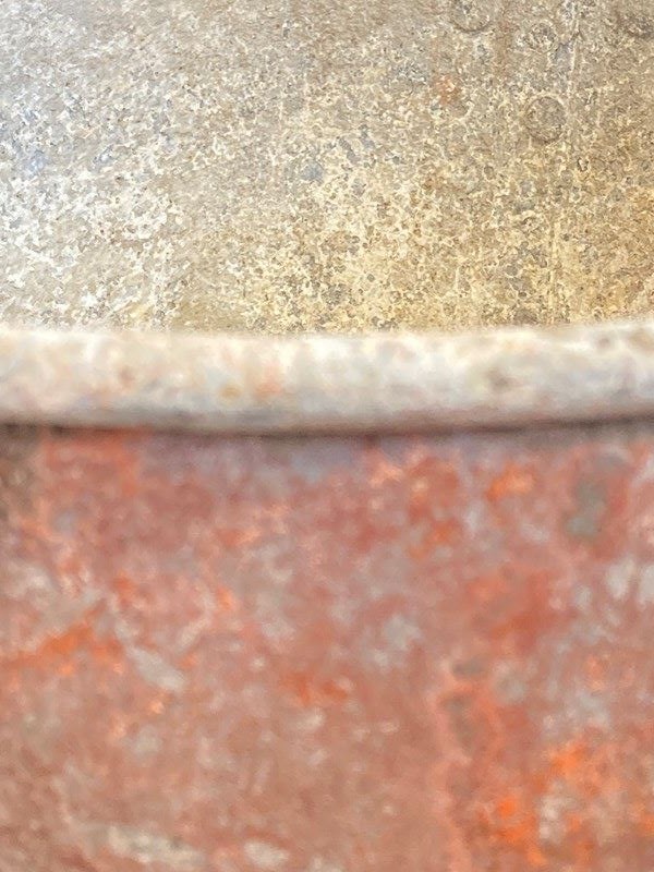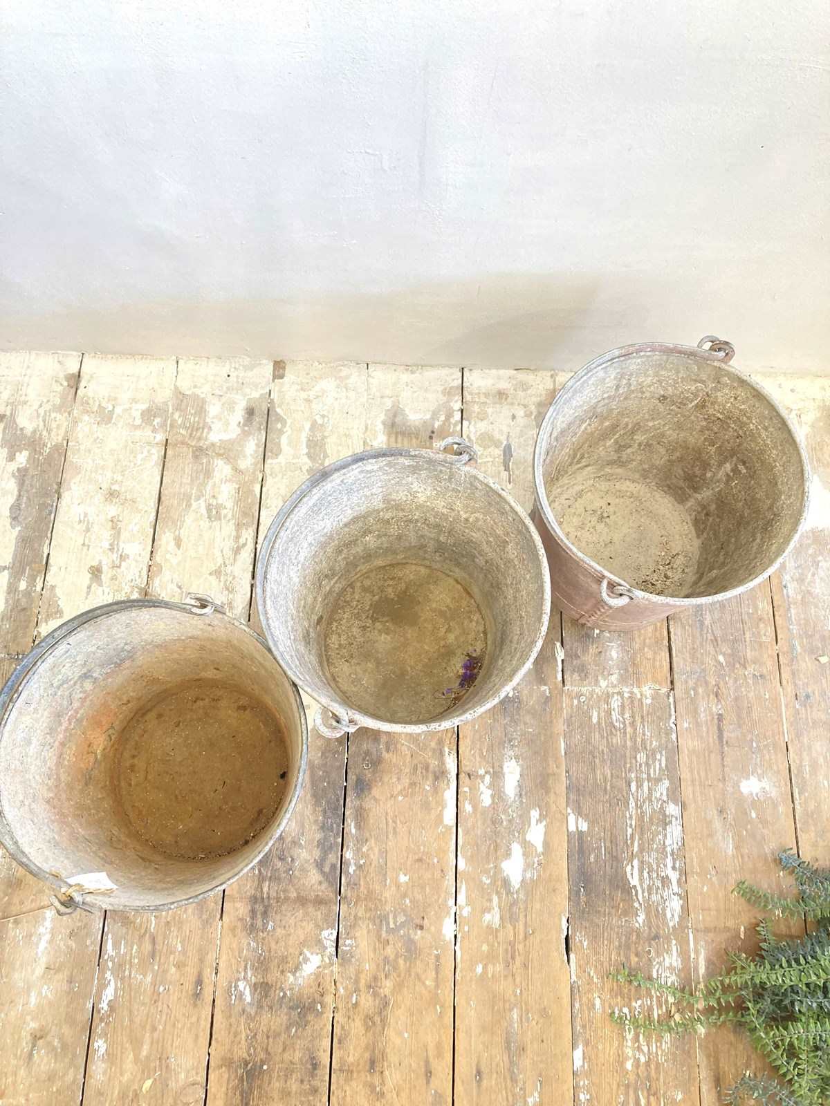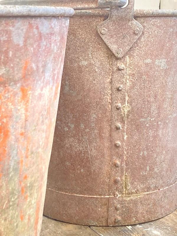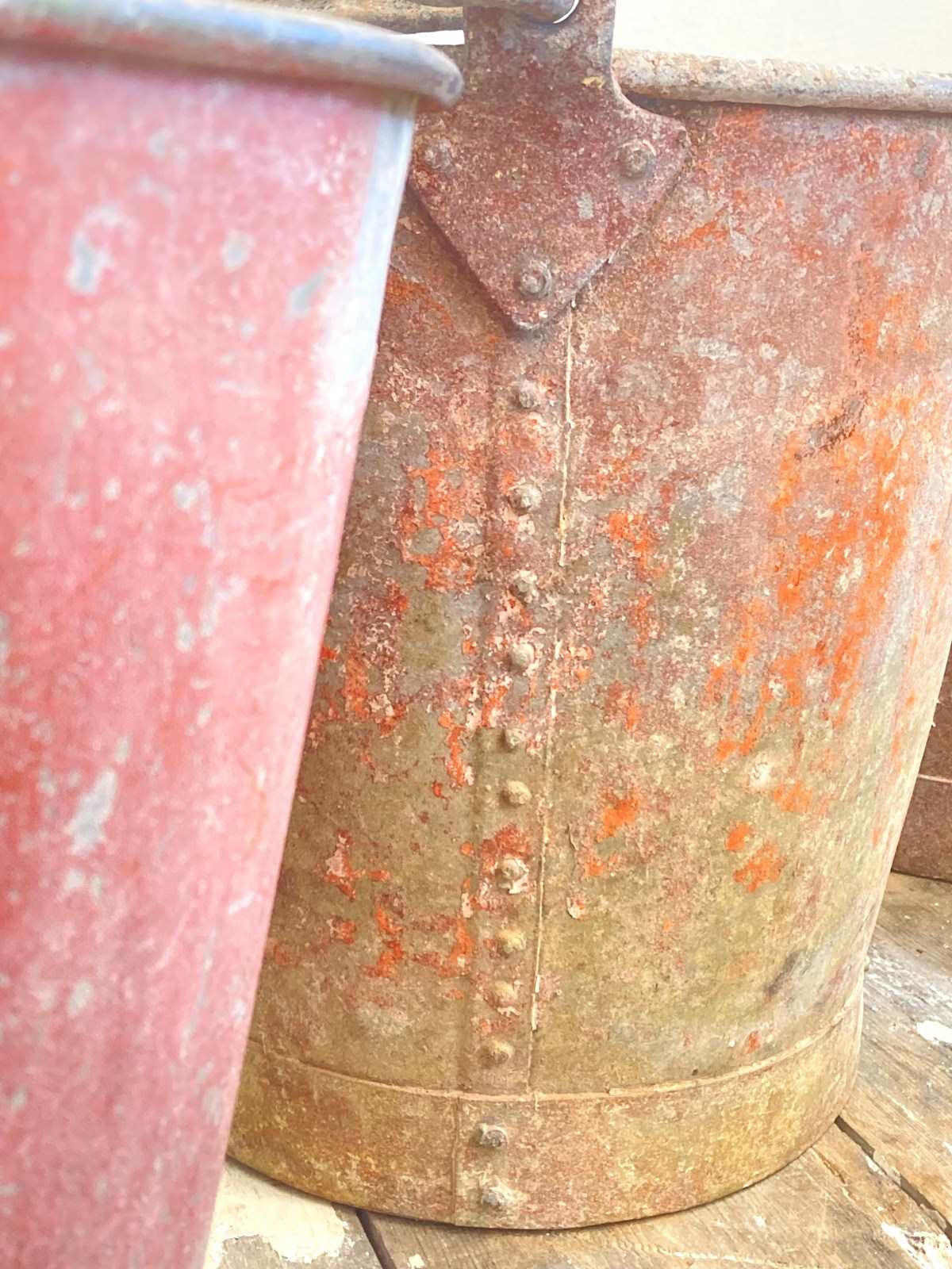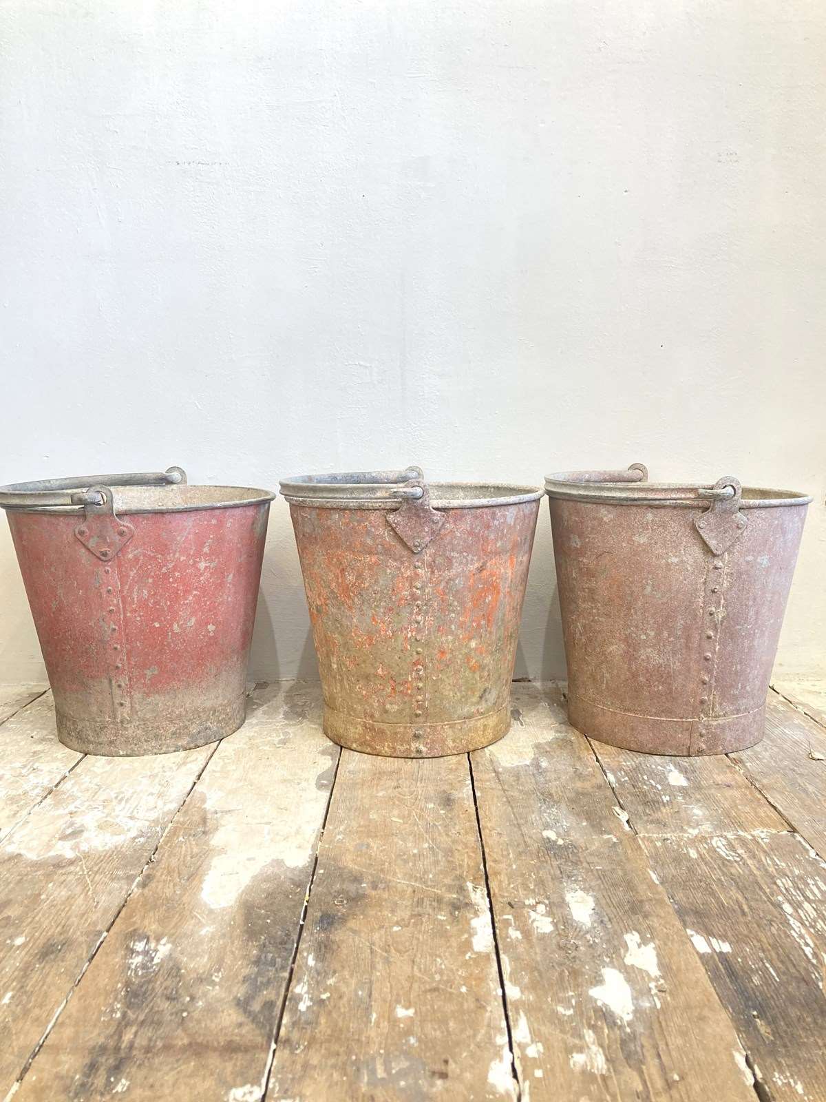 These old fire buckets are so beautifully made with incredibly thick galvanised steel and the most wonderful rivets down the sides - they weigh a tonne! The original red paint has faded over time to a lovely soft, weathered raspberry and they would make wonderful containers for kindling by the fire, ice buckets for parties, for planting or full of cut flowers. Decorative and useful.