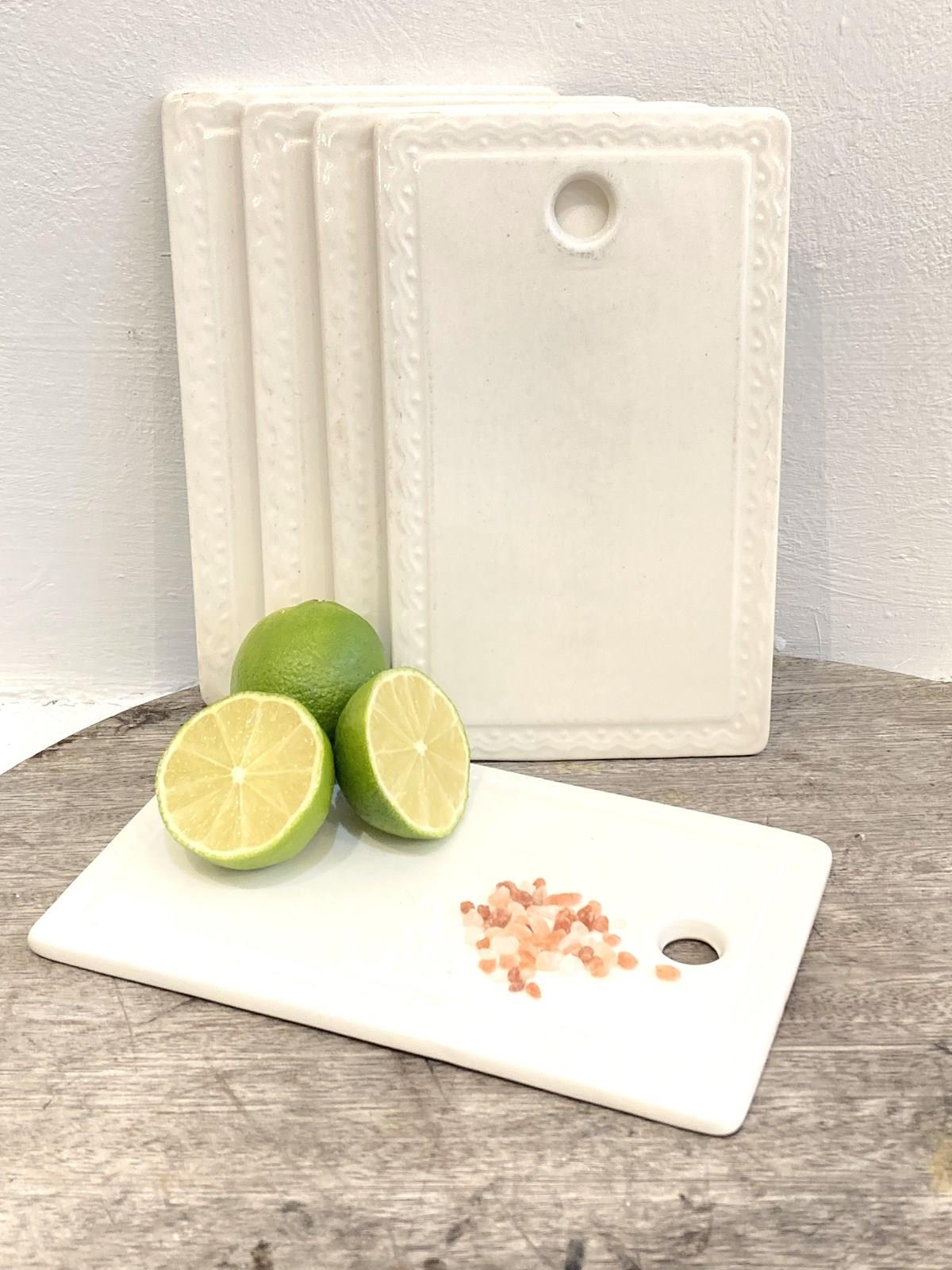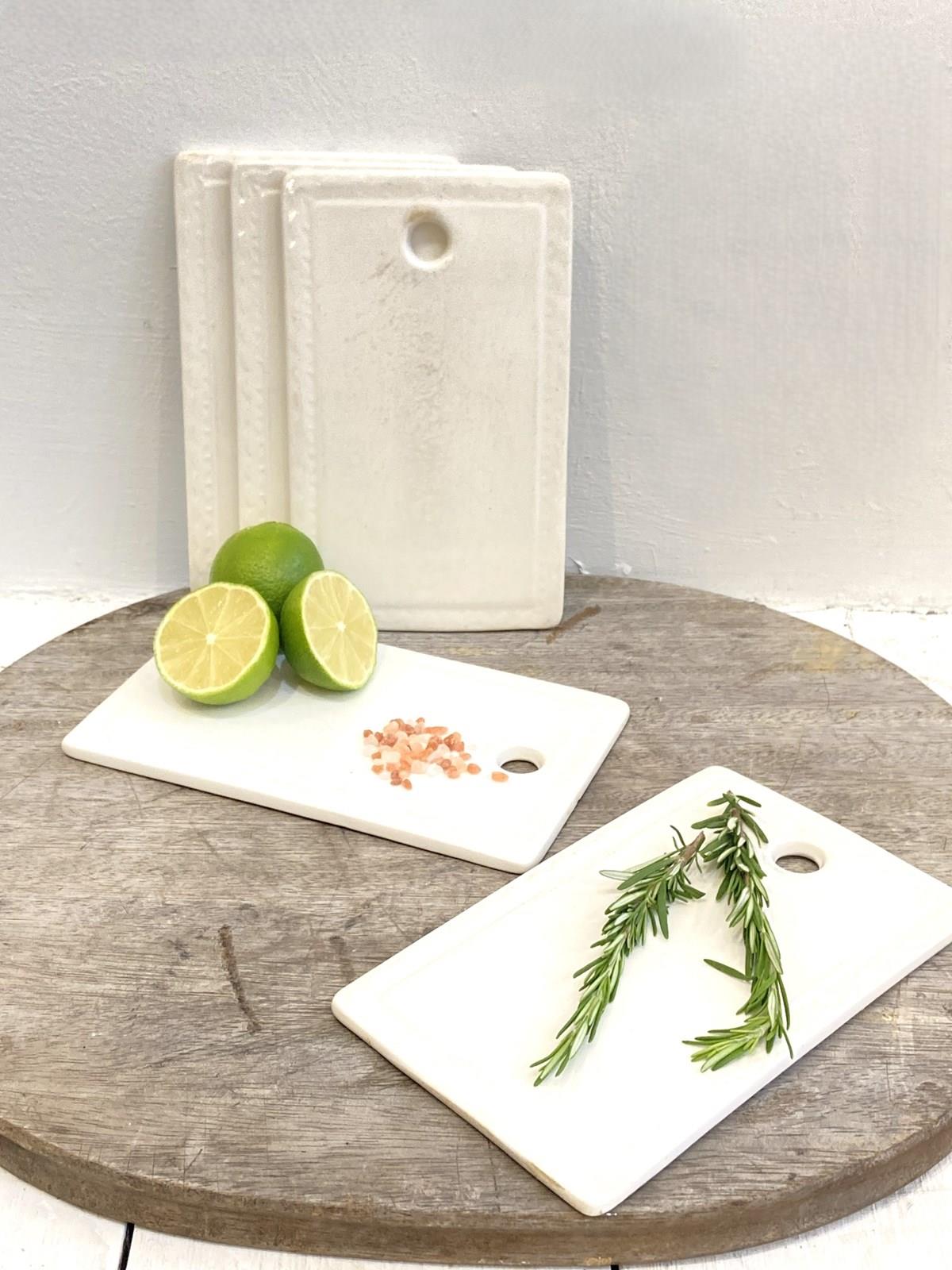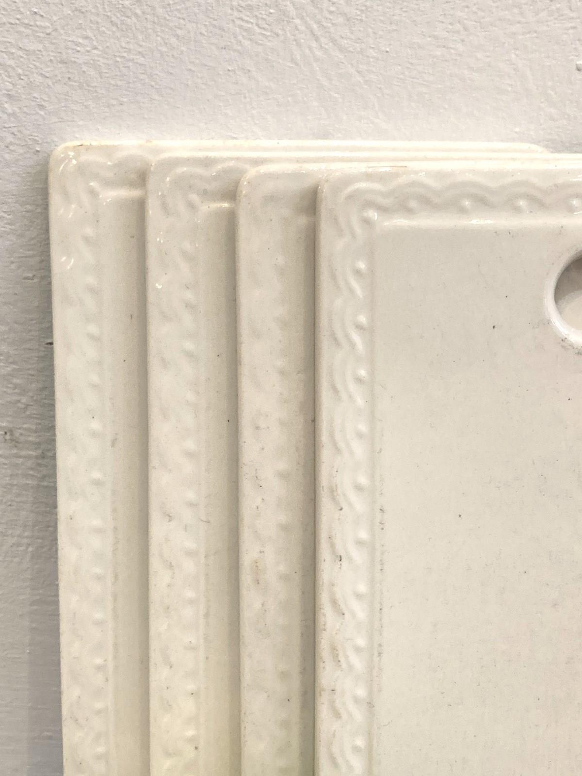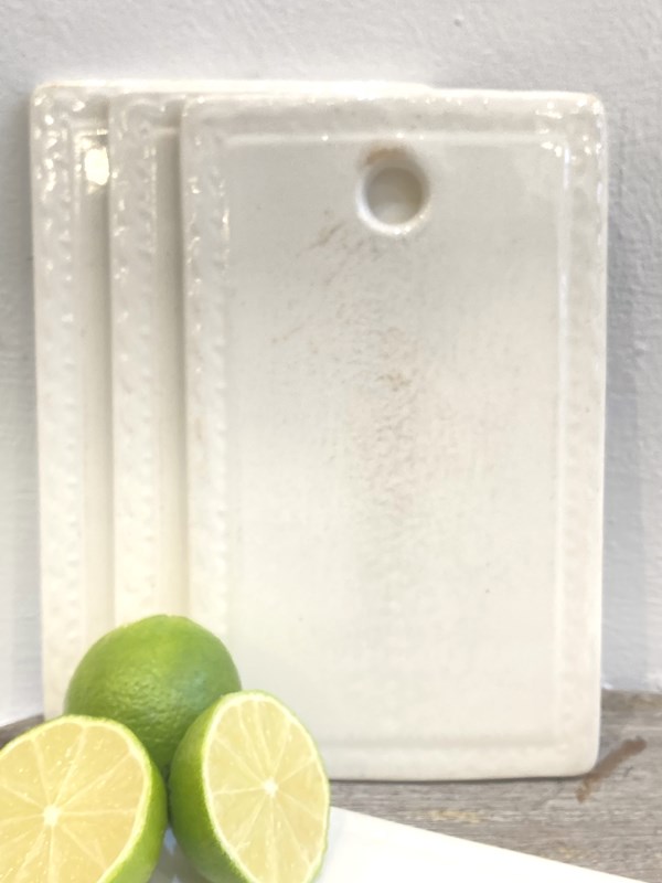 A lovely little haul of C19th French ironstone onion or breakfast boards in excellent condition. With understated moulded decorative detail around the rim and a hole for hanging, these look wonderful in a country kitchen and are still super-useful for serving tapas, mezze, cheese etc or on a cocktail trolley for slicing the lemons & limes for your G&T!