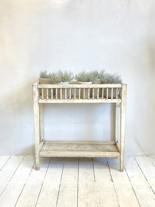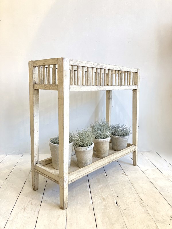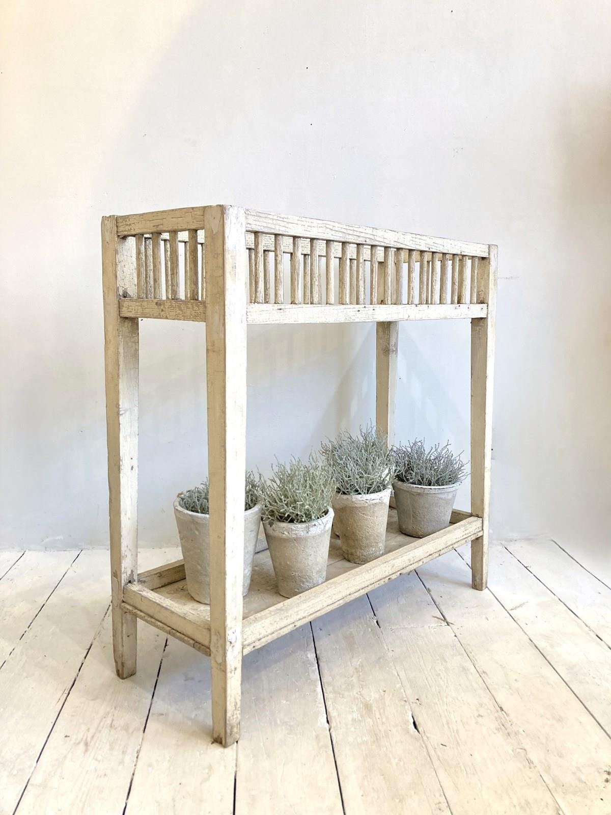 A charming French plant stand c.1900 with original, weathered white paint in totally untouched condition. Perfect for a conservatory or orangery, this would look beautiful piled with plants; alternatively we've seen them used in kitchens for holding linens, cannisters... all sorts!