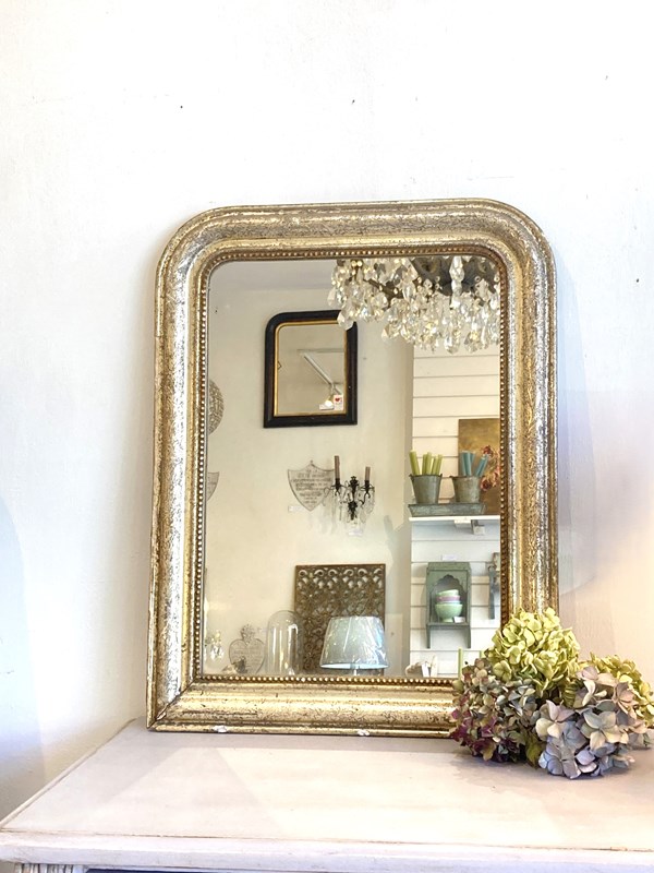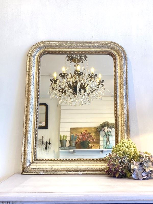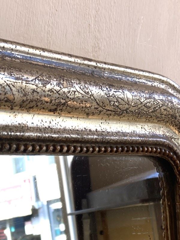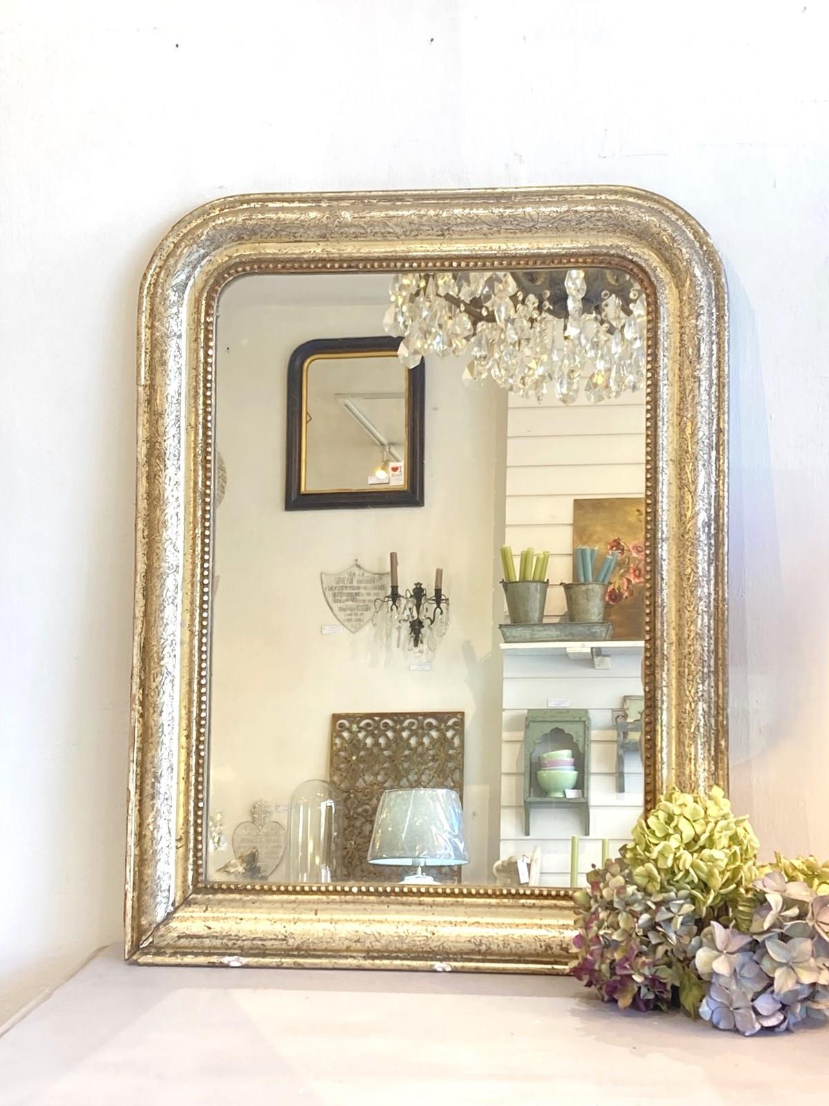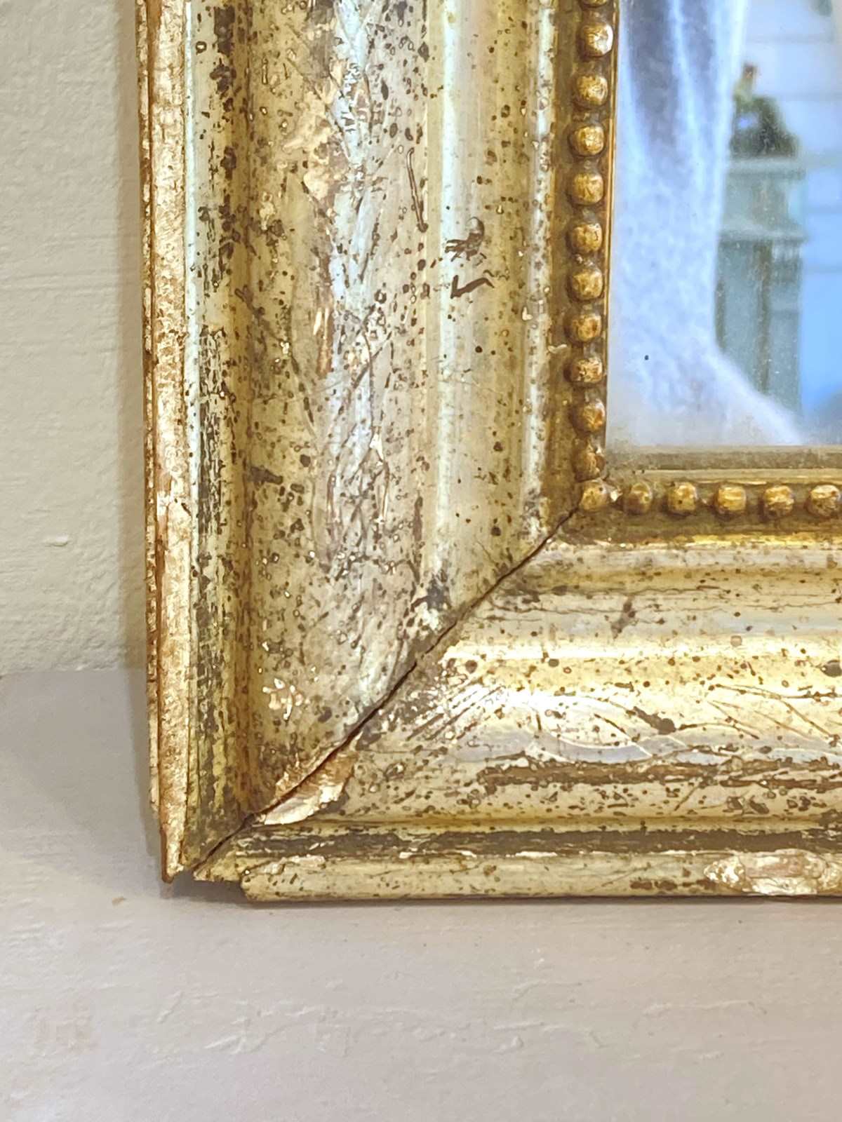 We absolutely adore silver-gilt mirrors partially because they're so rare and hard to find so this really screamed to us when we saw it at an antiques fair. It's not in perfect condition - there are some knocks and missing edges (as shown in the pictures) but it's completely untouched and such a beautiful colour. Original glass and backing (which has a couple of old woodworm holes which are long gone but treated as a precaution) it's a fabulous piece in a useful size. c.1870.