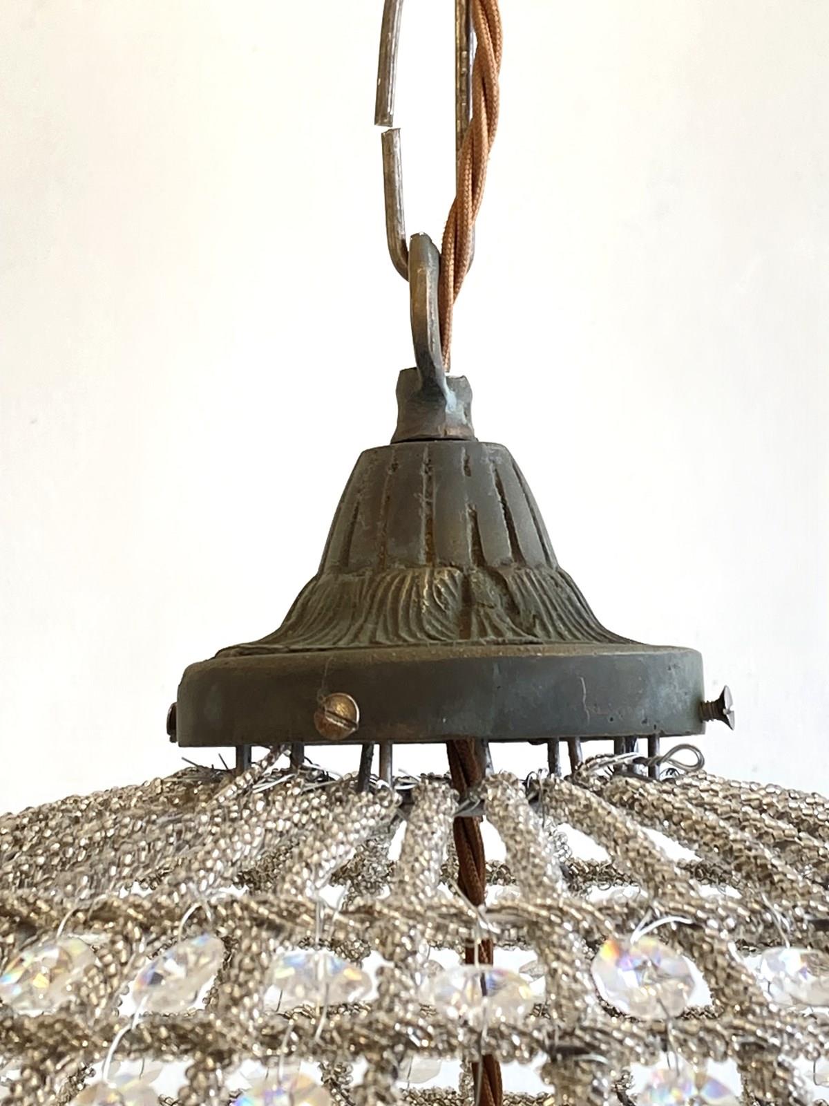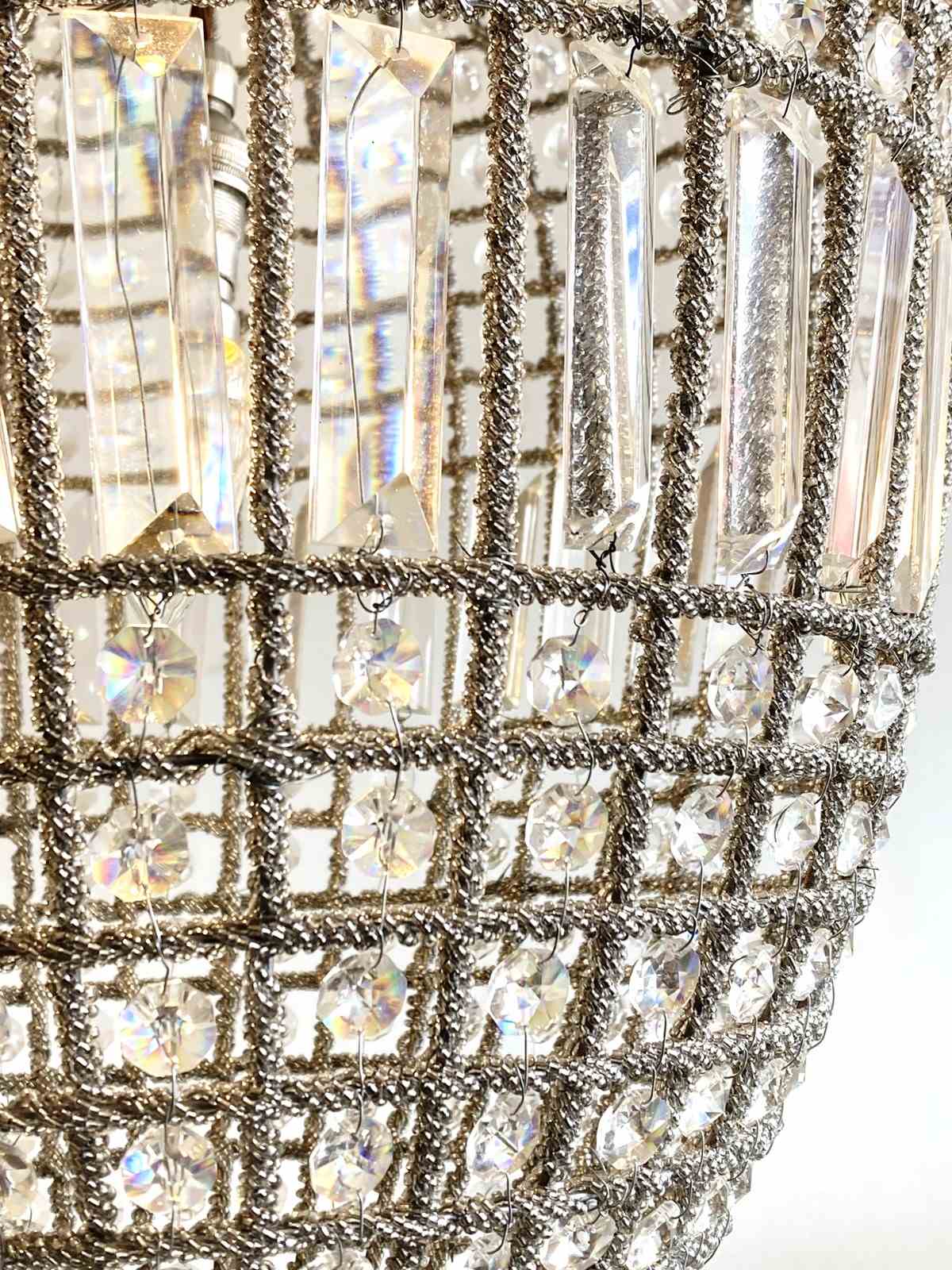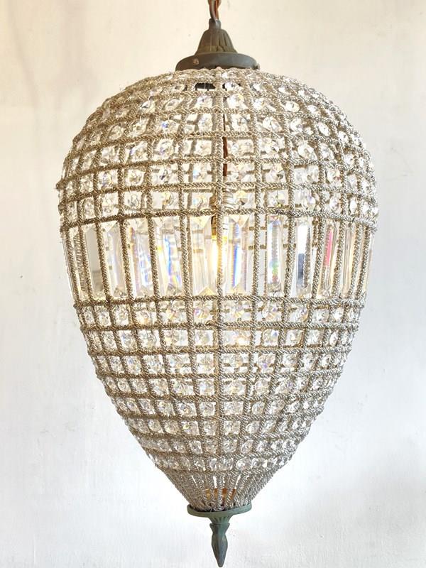 This acorn shapedf light has individually crystal buttoned cells encased in twisted glass beads with a central band of rectangular faceted crystals which diffuse the light beautifully and create stunning rainbow effects.