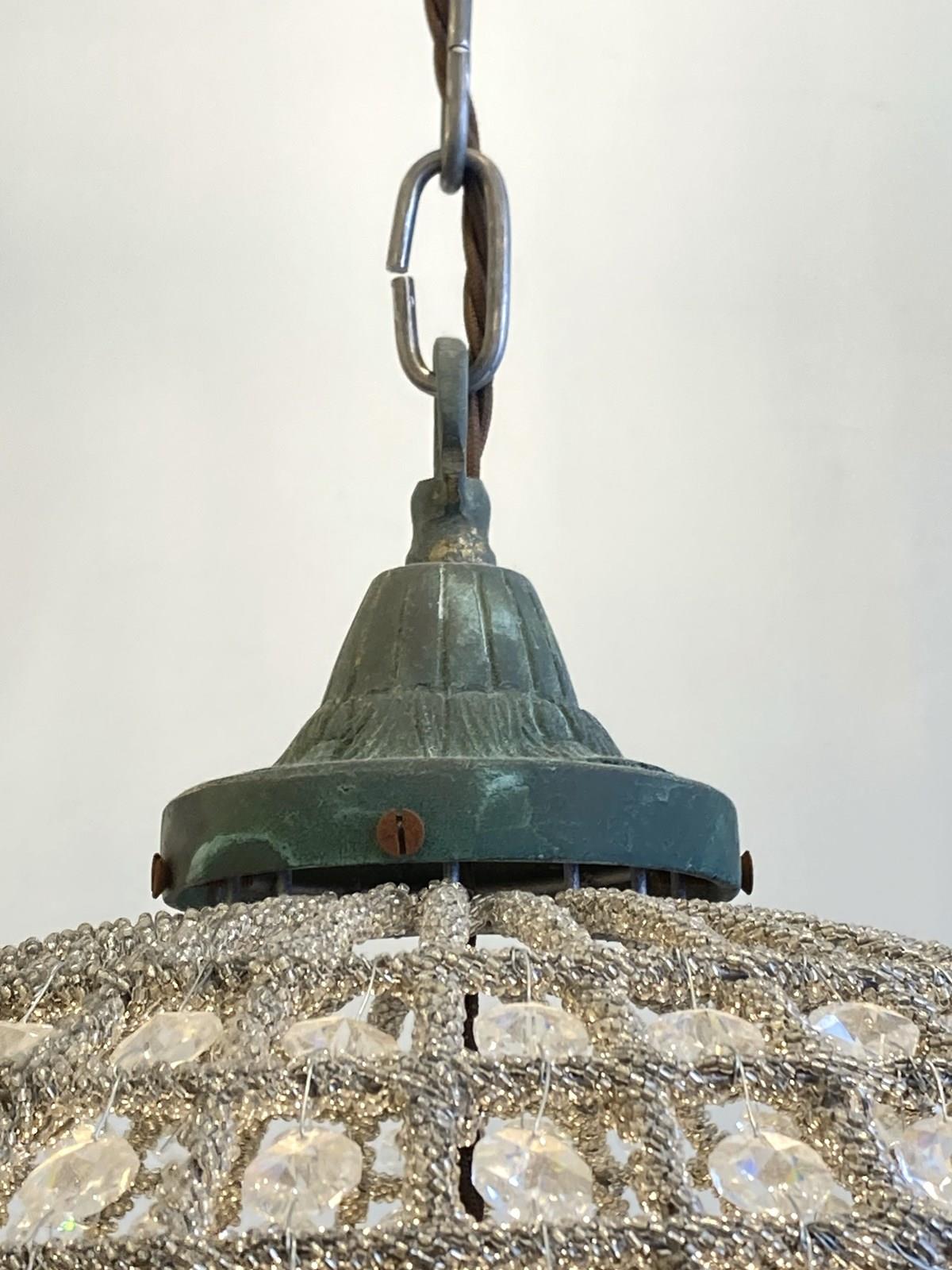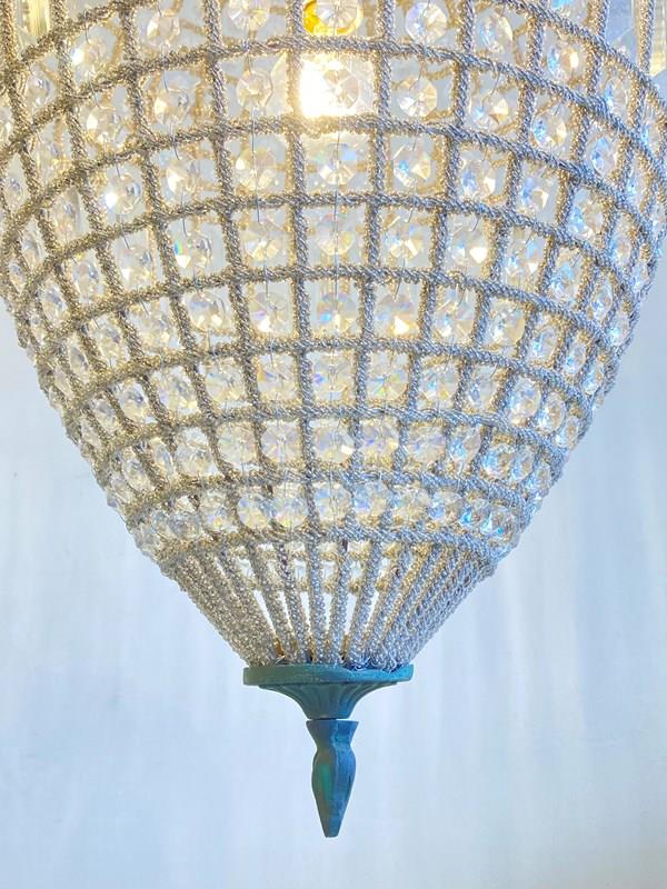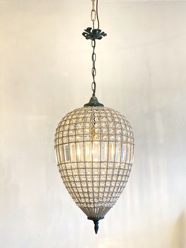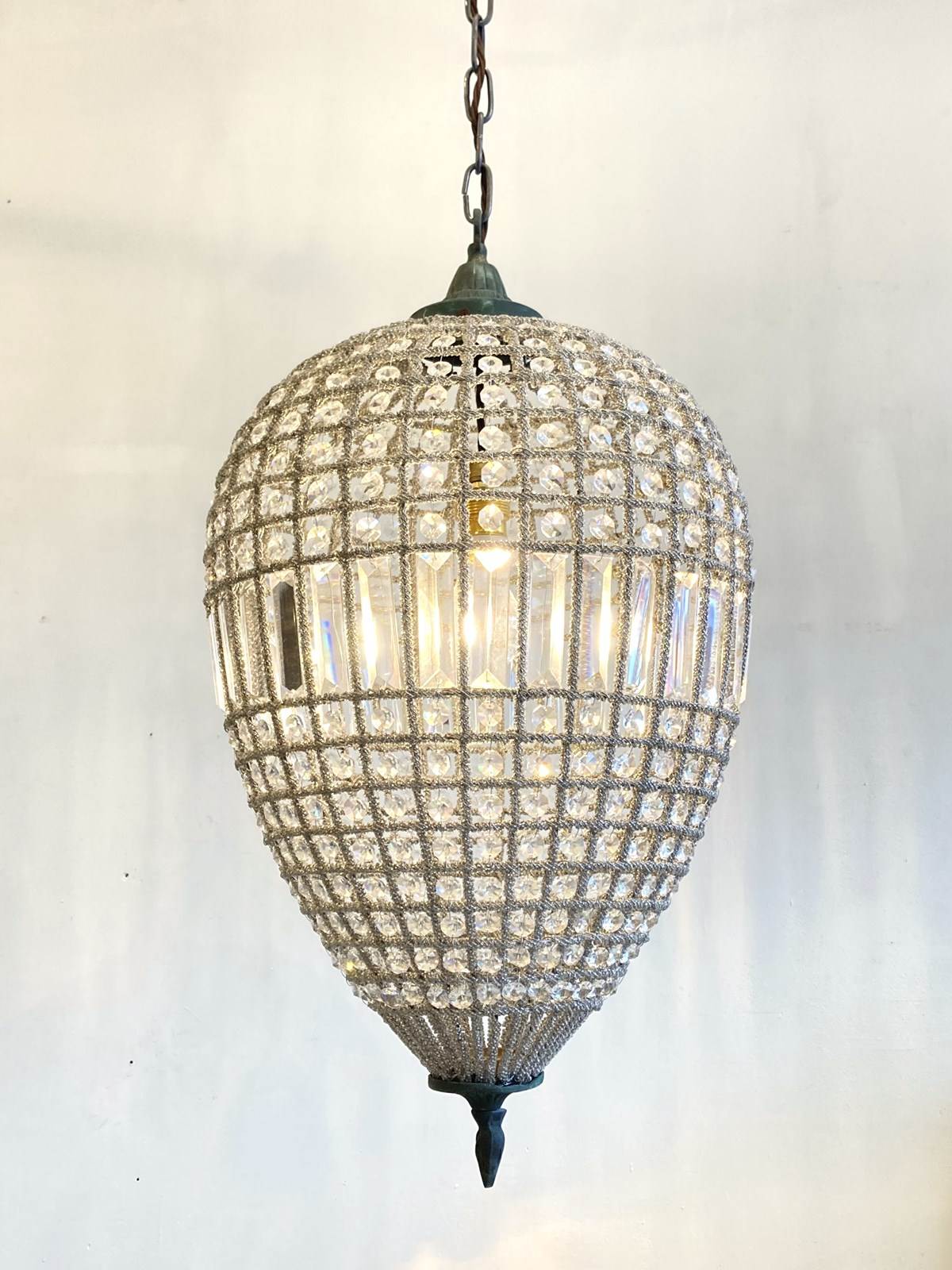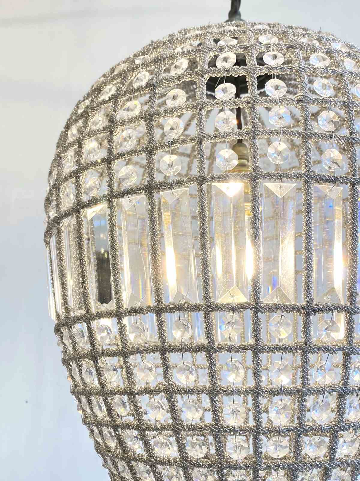 This acorn shaped light has individually crystal buttoned cells encased in twisted glass beads with a central band of rectangular faceted crystals which diffuse the light beautifully and create stunning rainbow effects.