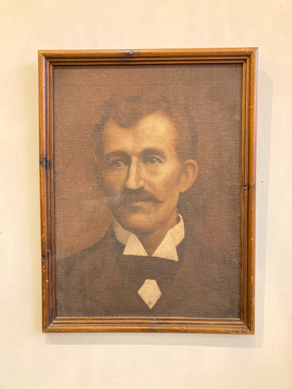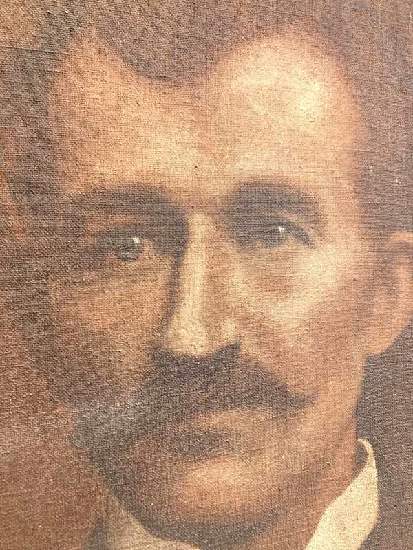 A beautifully painted portrait of a French gentleman on board with the original wooden frame c.1900. This probably would have been commissioned for an office or other business premises and he would have been one of the bosses - it's really nicely done and rather formal!