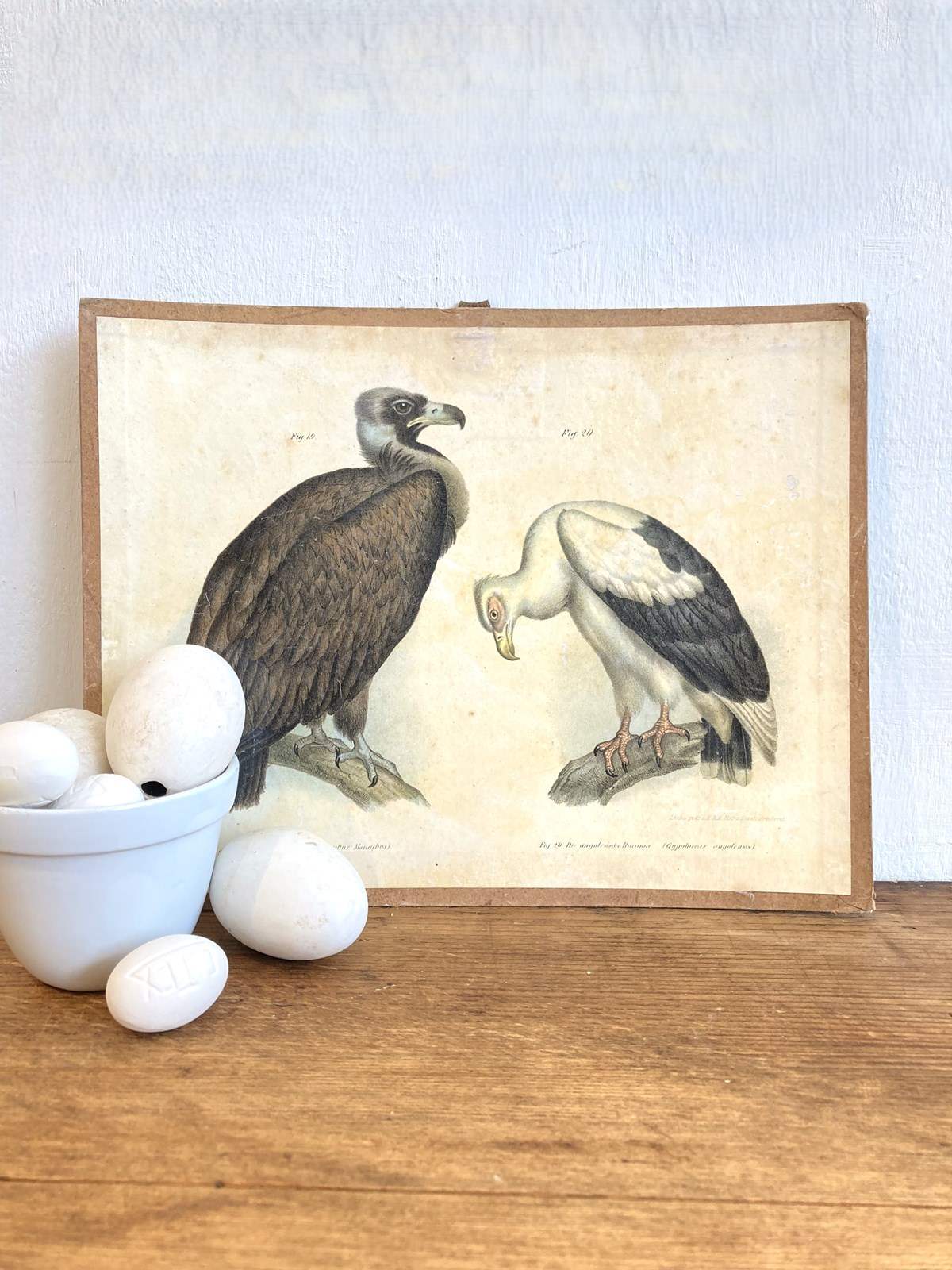 Possibly a plate from an old book, this beautifully coloured bird print has been nicely mounted and laminated with a canvas loop and brass ring. Sourced in Hungary, this was possibly a teaching aid but it's so decorative it would make a lovely piece of wall art in either a library, nursery or kitchen maybe?