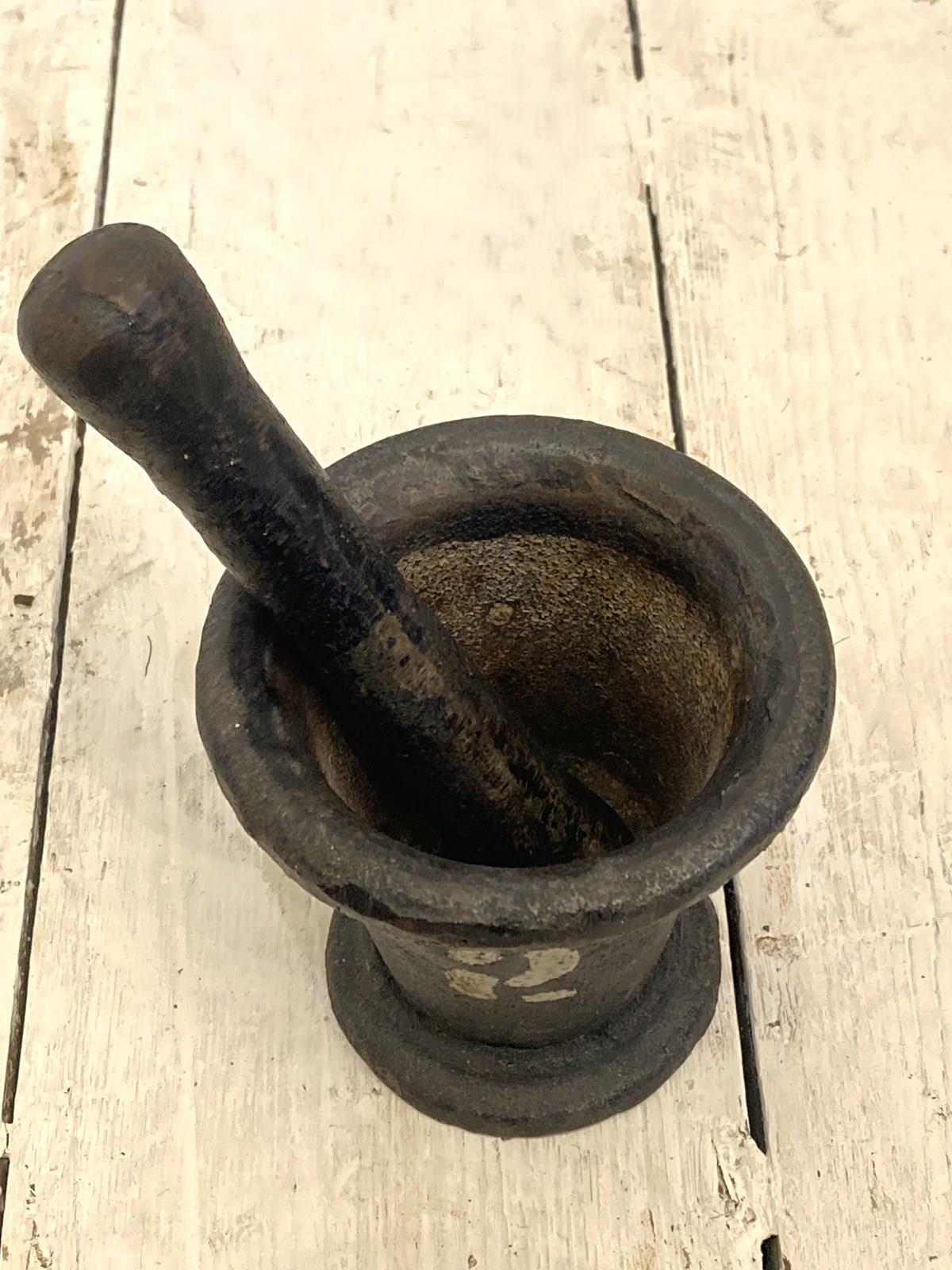 This fabulous old iron mortar & pestle weighs a tonne, so perfect for grinding spices!
