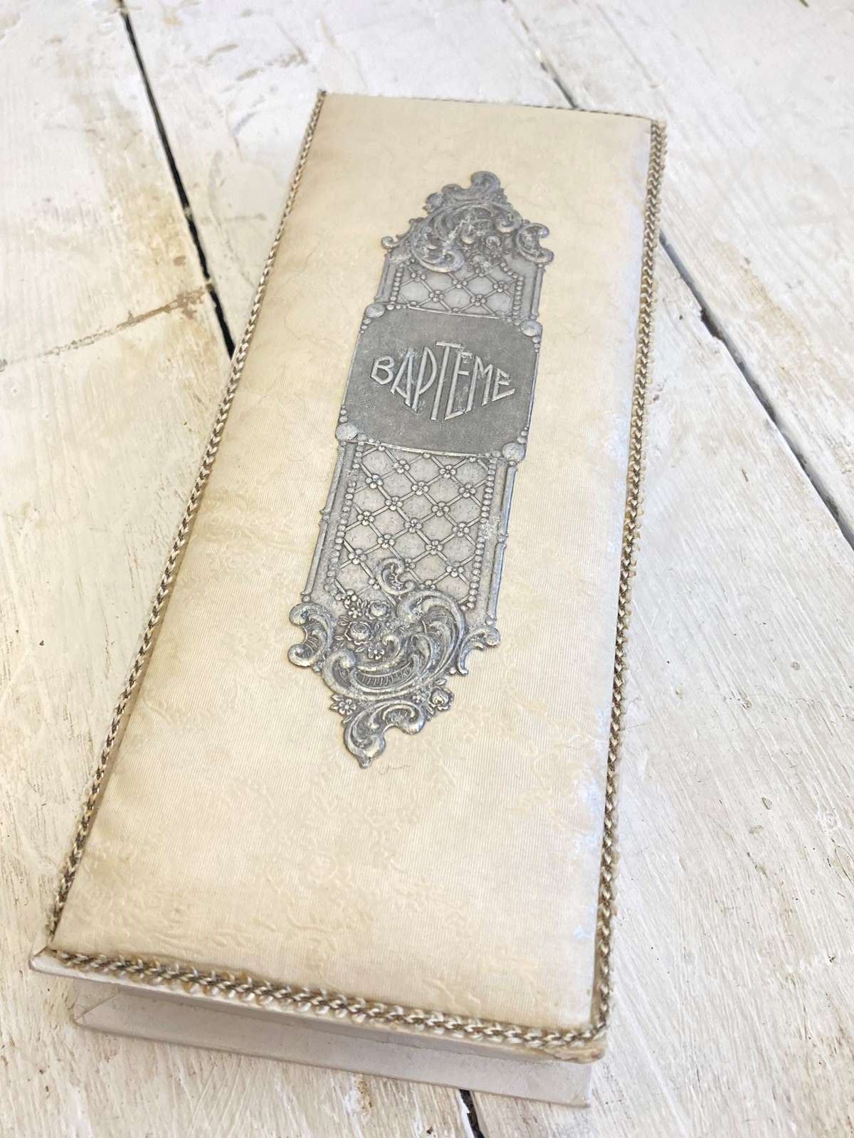 Old French Card & Fabric Baptism Box