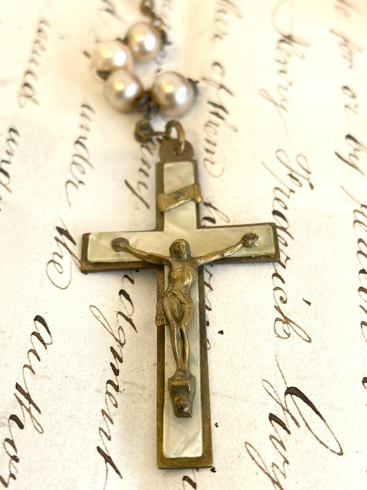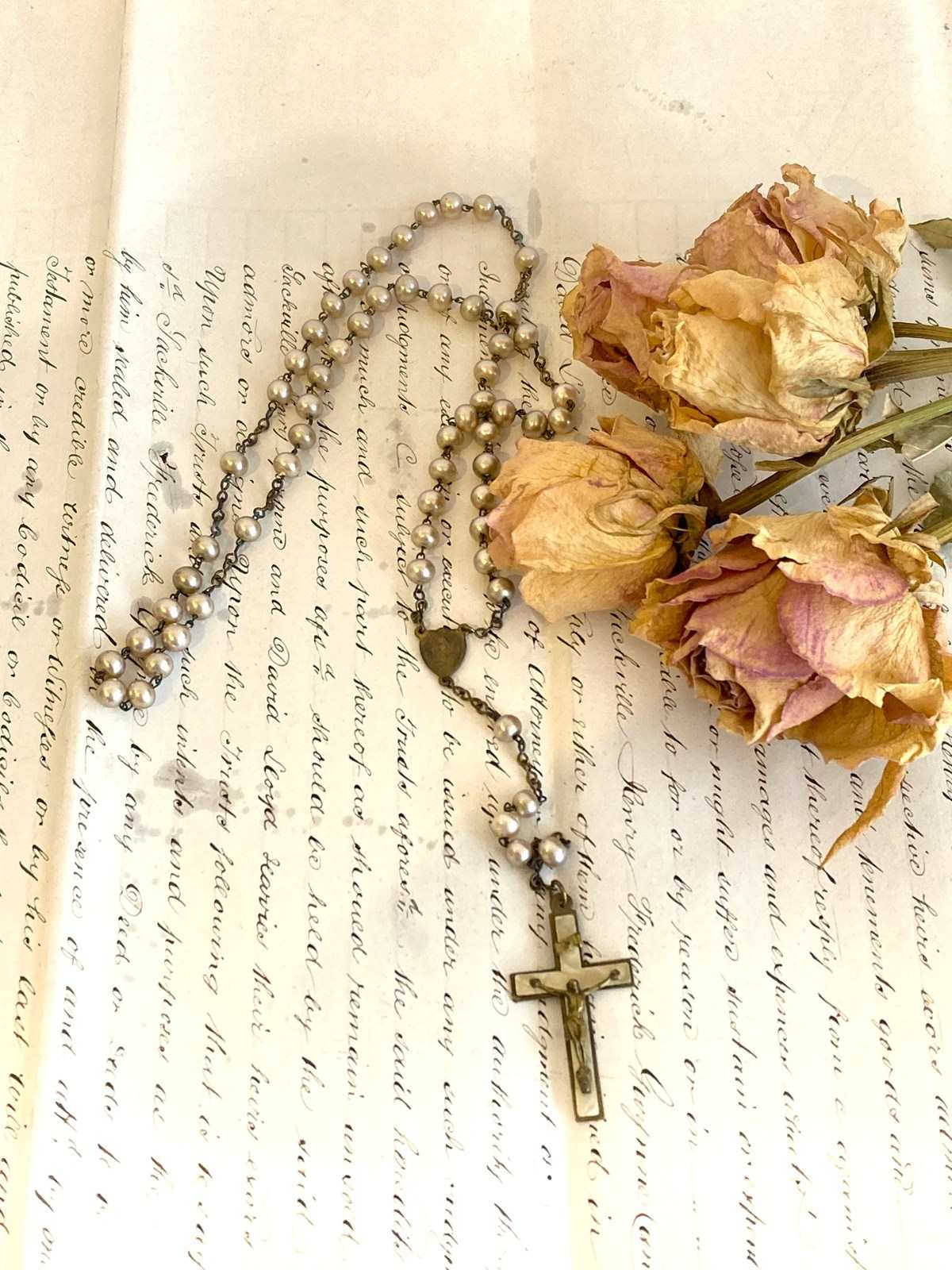 A very pretty vintage rosary with grey simulated pearls in excellent condition.