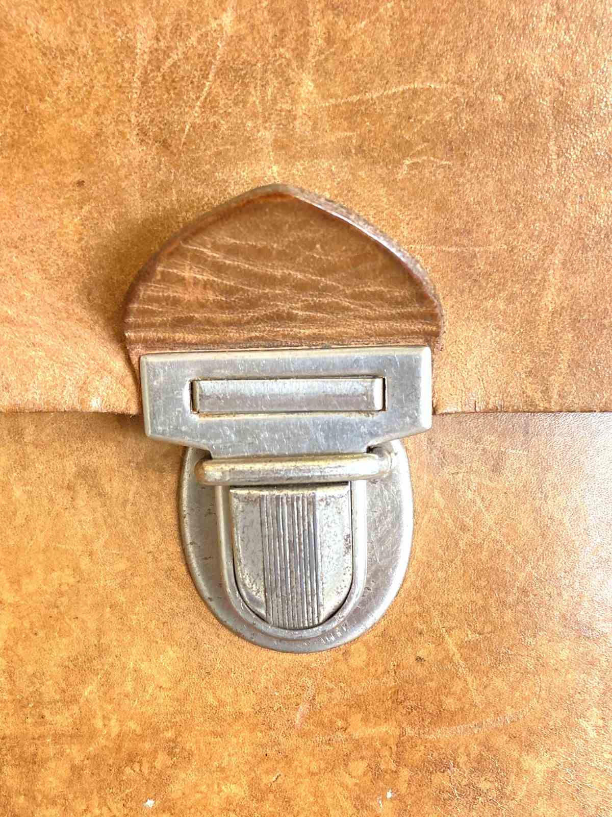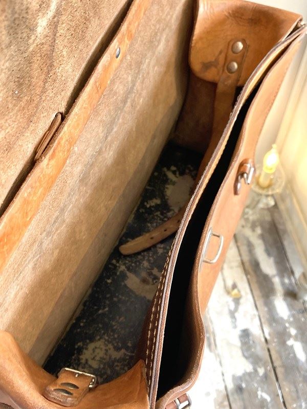 The shape is kept with a metal bar across the inside of the top and there are two internal sections to keep things organised with a strap running from side to side to keep documents and files safe. It has a wonderful warm colour with a deep glow.