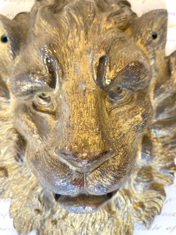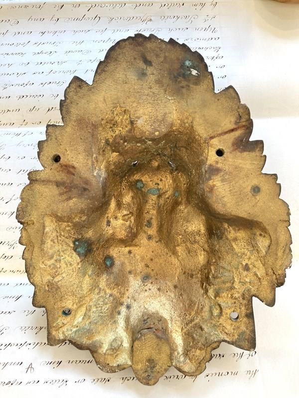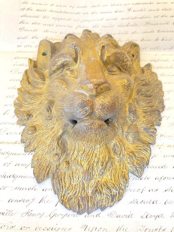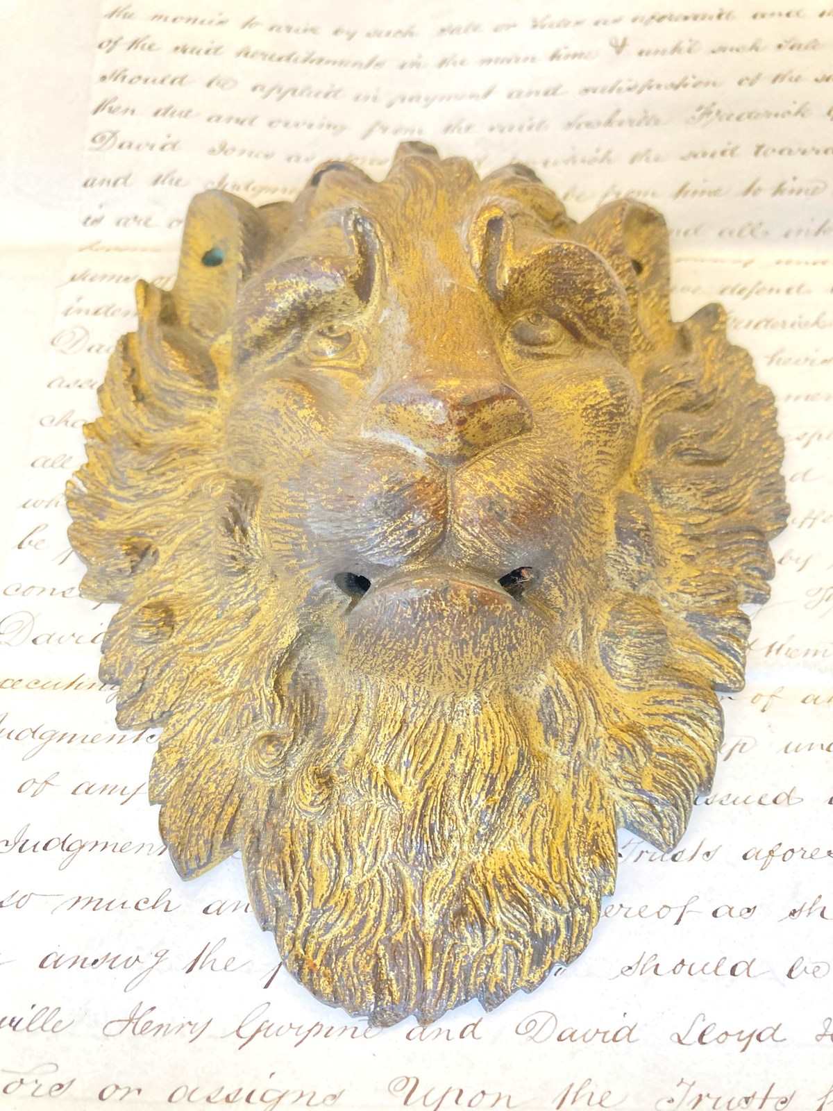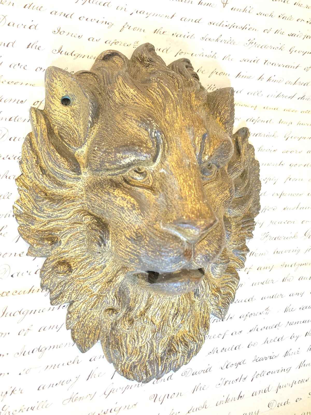 Beautifully cast, heavy and very decorative, this old brass lion head was either originally a door knocker or a wall light with the lost piece attached through the holes either side of the mouth. Now it makes an impactful display item or a rather fabulous gift for a Leo!