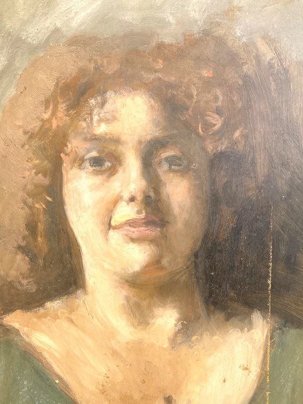 A beautifully executed portrait in oil on board - the expression on her face is captivating and her untamed hair makes me think of Scottish highlands - there's something of Merida from Disneys Brave going on here! The murky background really makes her skin pop and creates a moody intensity.