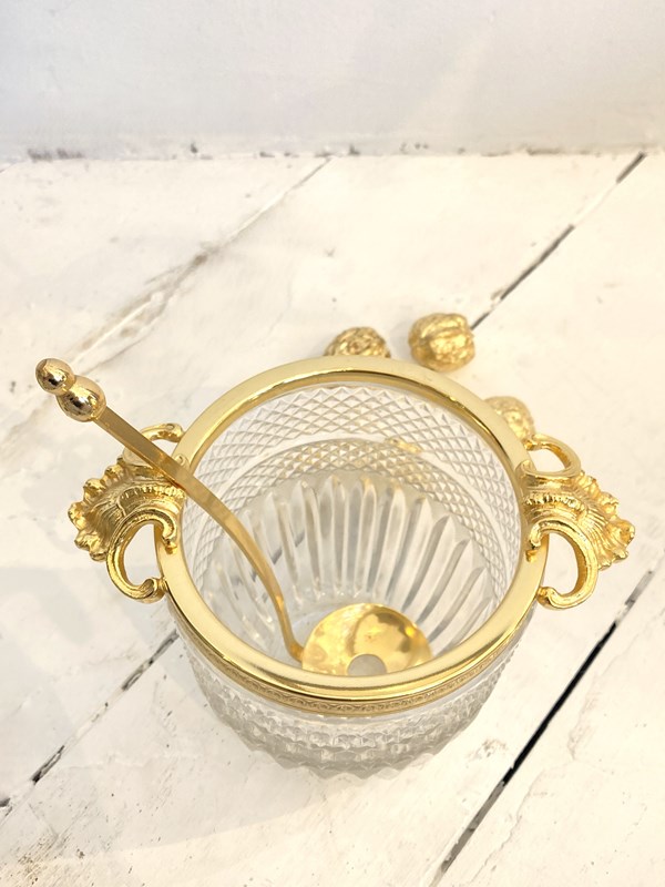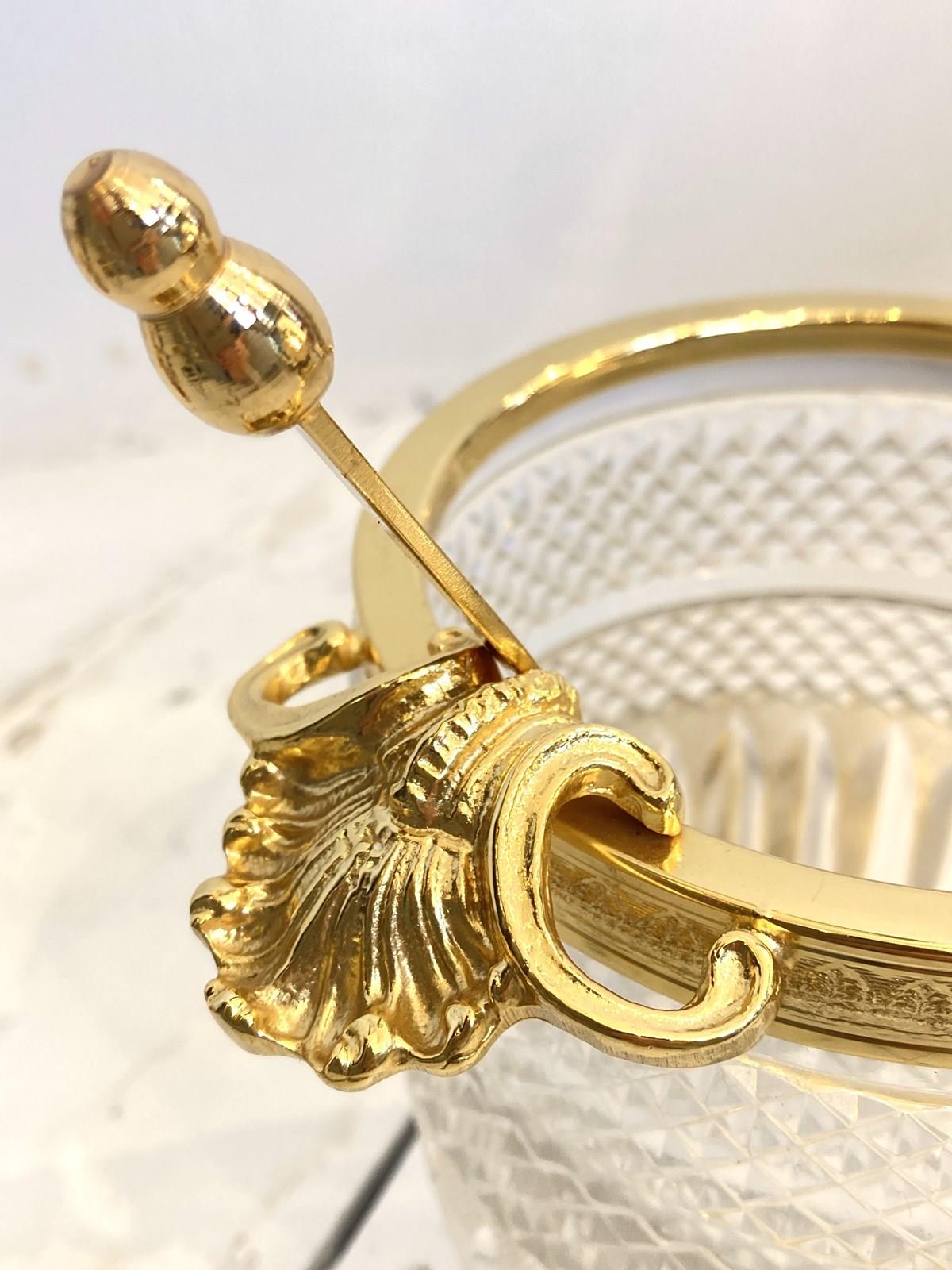 This ice bucket is just so fabulously kitsch, we love it! The glass has a wonderful hobnail design topped with a gilt, decorative rim and rather ornate handles - it also has the original ice scoop which drains the cubes from the melted water. A great addition to a cocktail trolley!