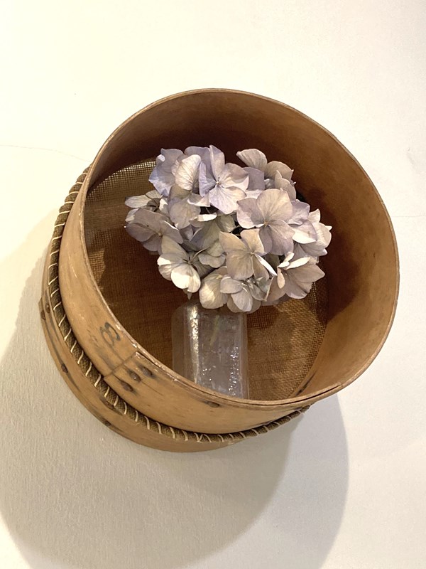 A rustic old bentwood riddle or garden sieve, originally for sieving stones and pebbles from the soil which it's still perfect for (it has a very fine mesh) but they also make wonderful decoration either in the garden as a collection on a wall, fence or side of the shed? I've also seen someone use them en masse in a kitchen as box frames which looked wonderfully rustic!