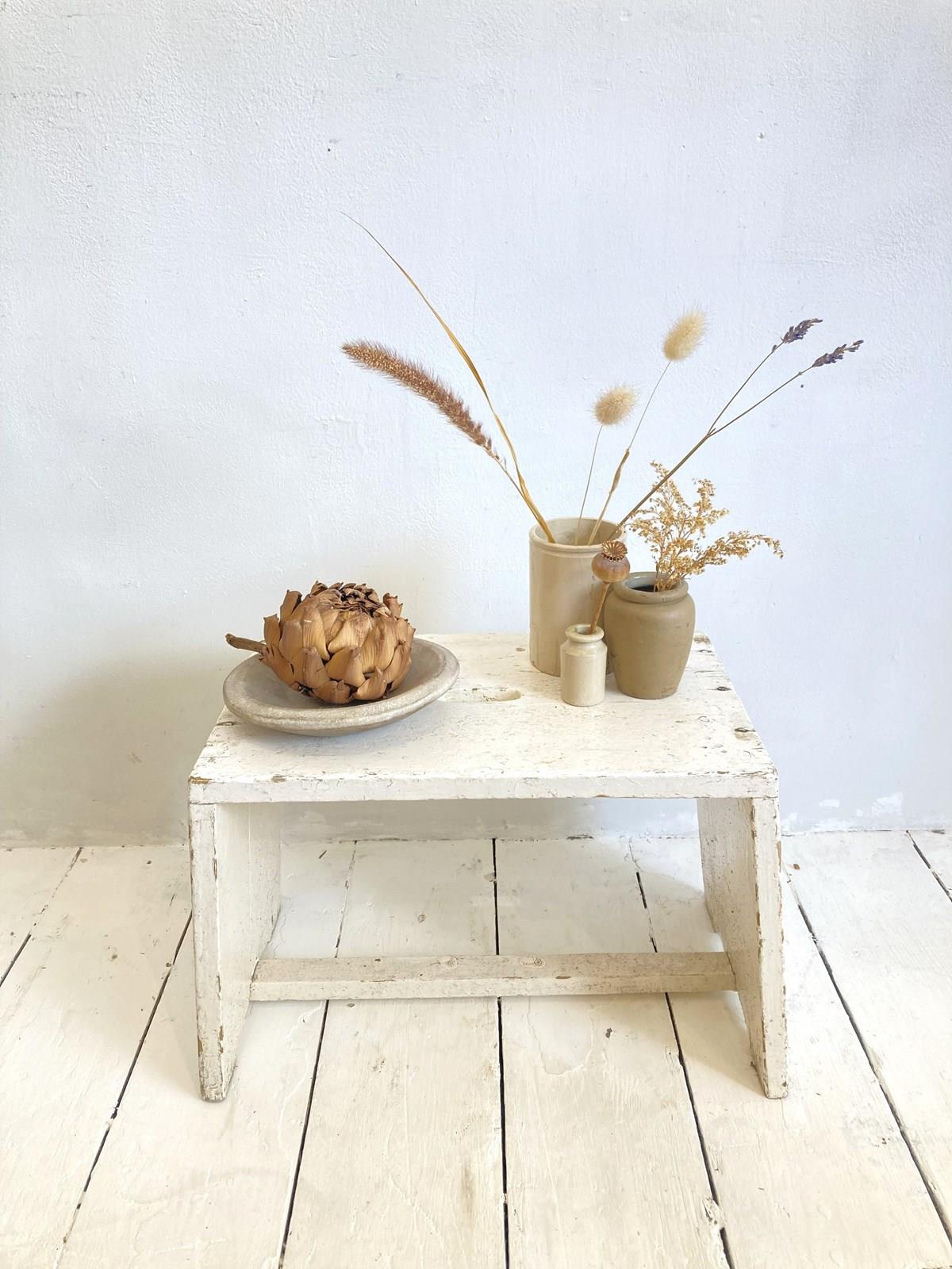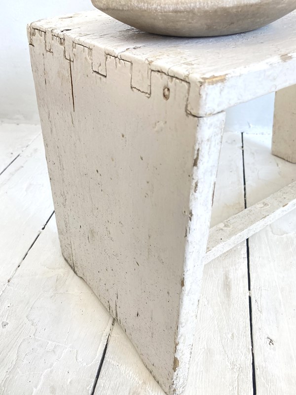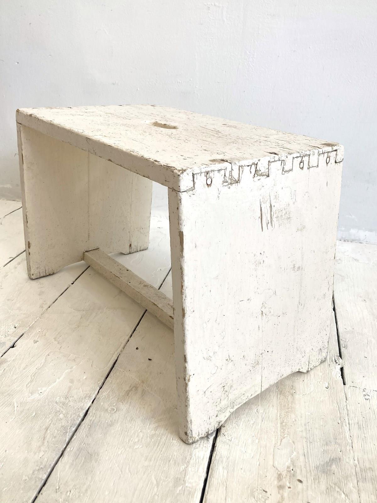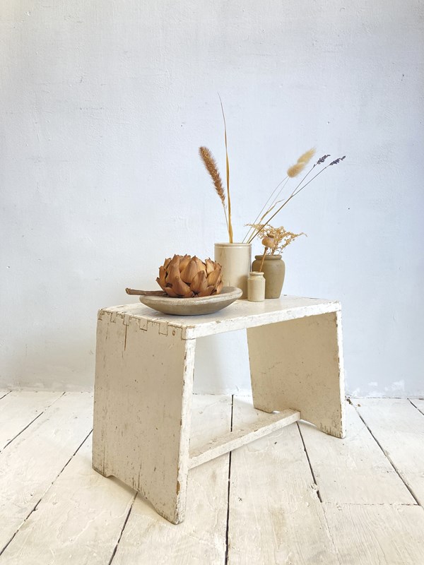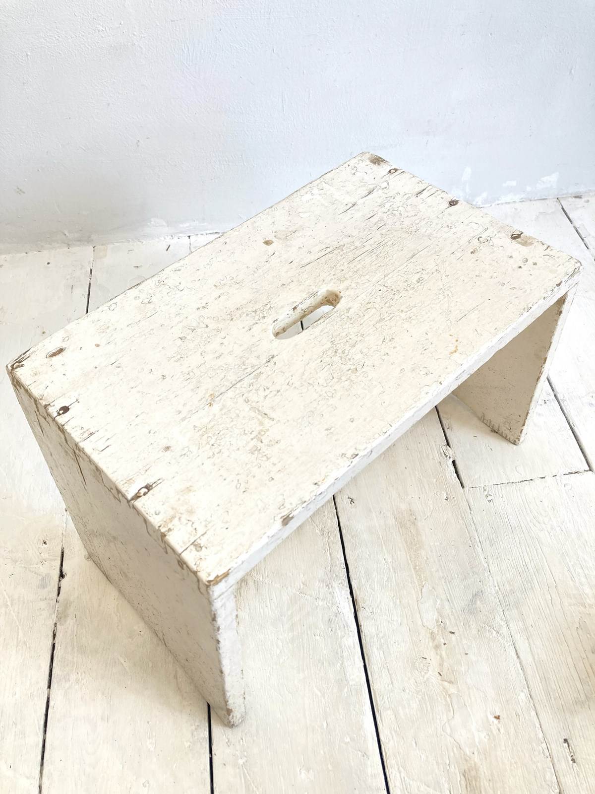 This little Hungarian step stool is a generous enough size to be used as a little side table, perfect for a cup of tea or glass of wine! Completely sound and stable with the original stretcher, this has the weathered old white paint which has a lovely rustic charm.