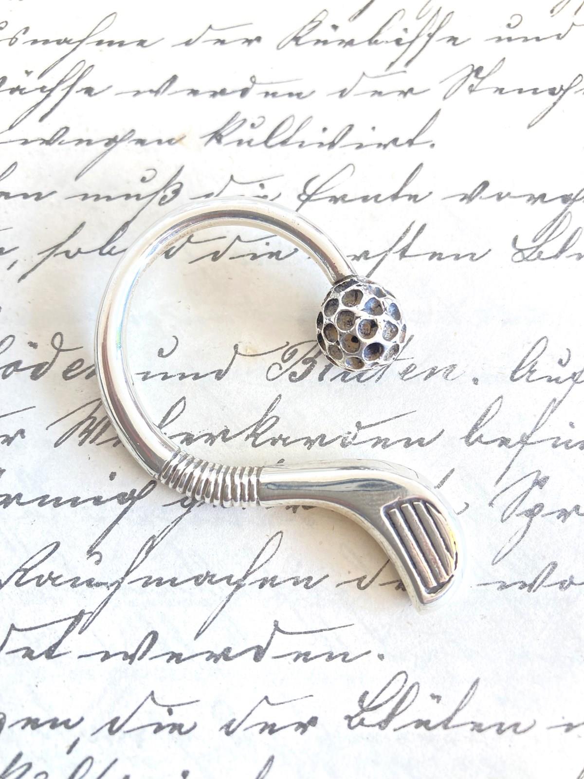 A wonderful gift for the golfing enthusiast - this substantial sterling silver keyring (stamped 925) is modelled as a golf club and ball - unscrew the ball to slide your keys on!