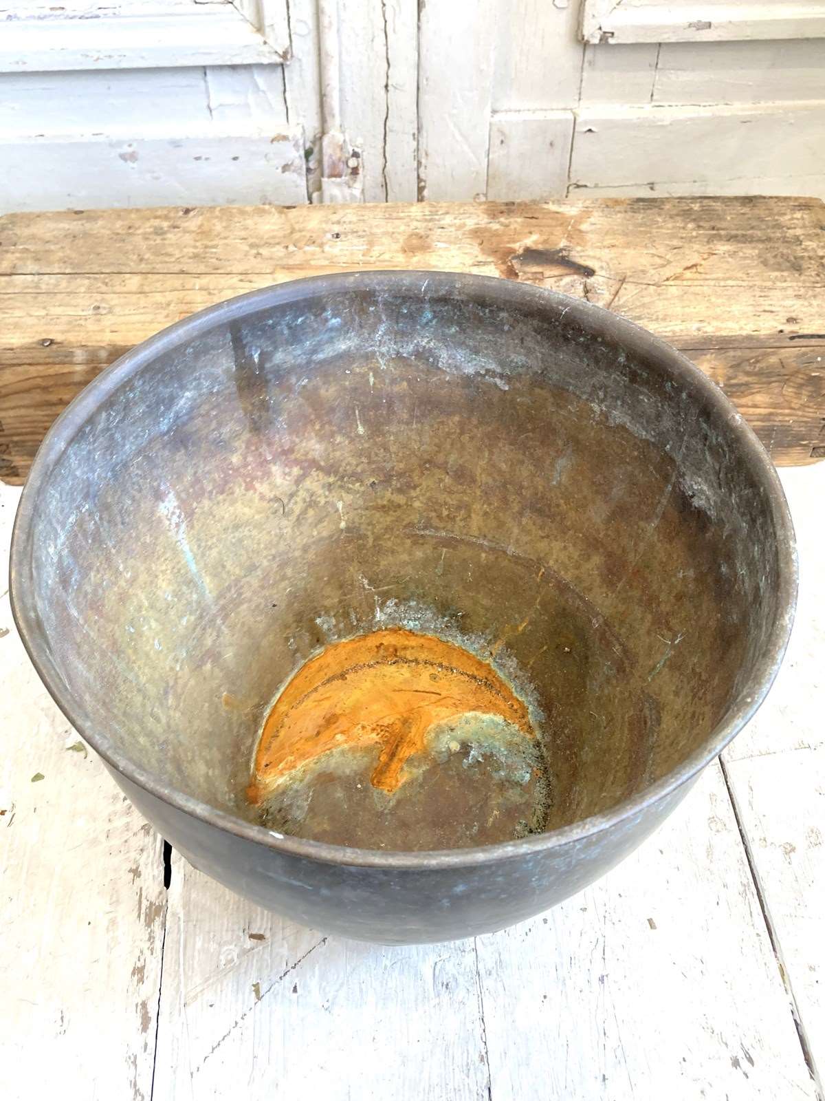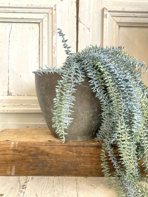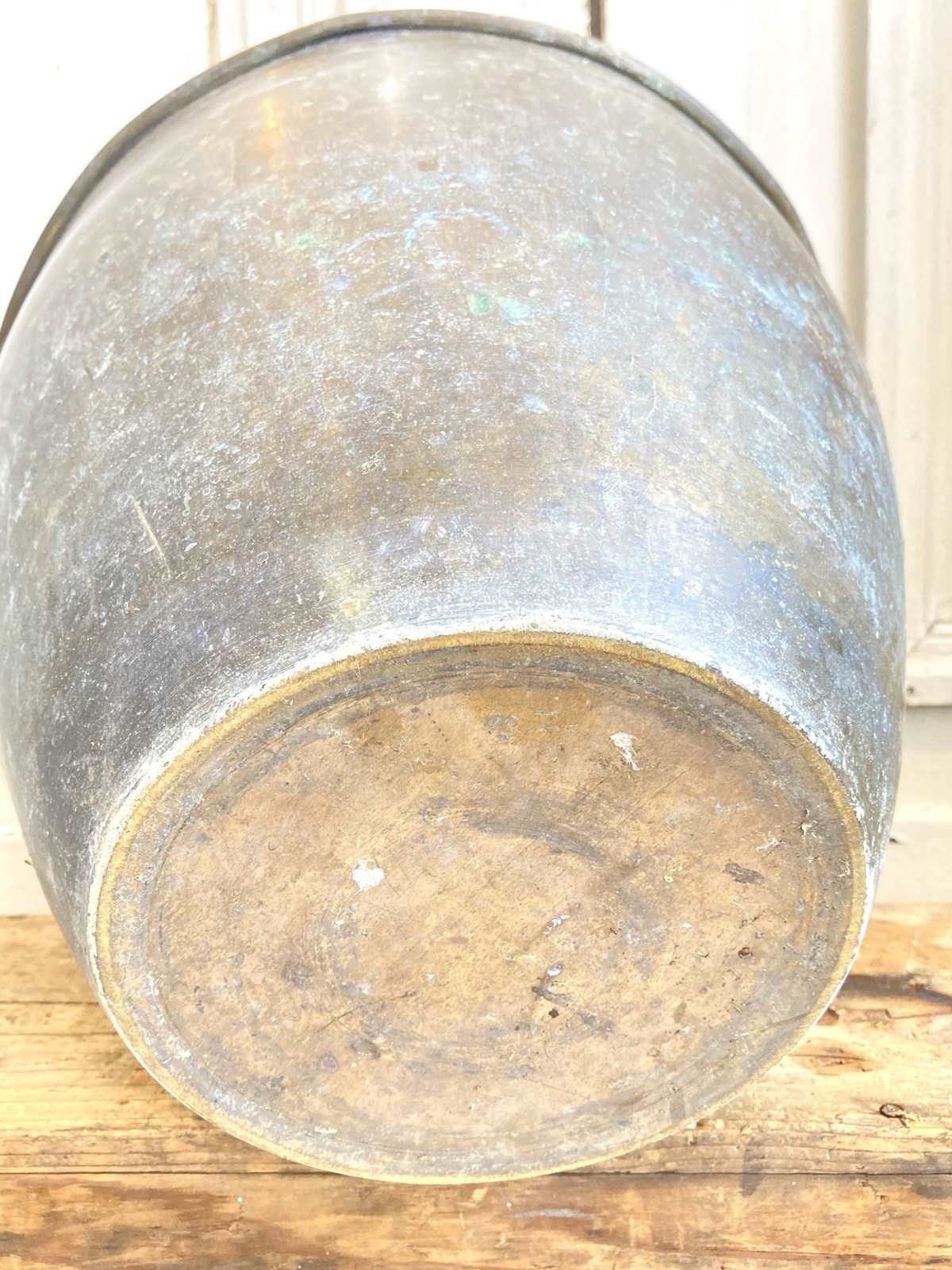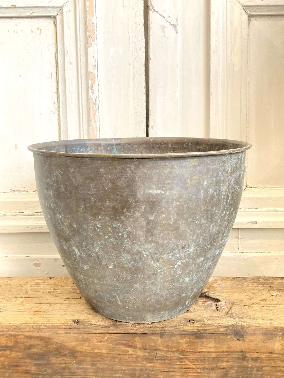 An old brass planter that has developed the most wonderful verdigris patina! Whilst perfect as a plant pot, I can't help but look at it and think it would make a fabulous champagne bucket as it would hold at least 2-3 bottles.