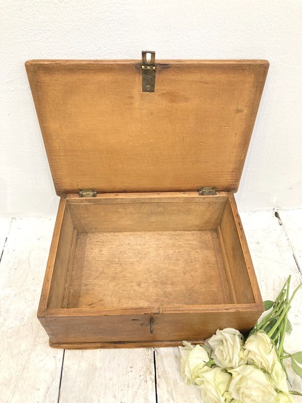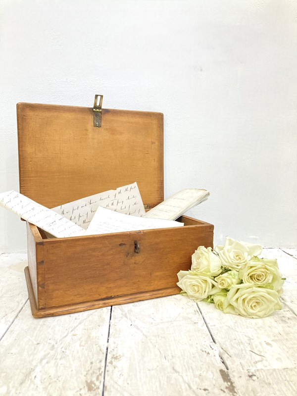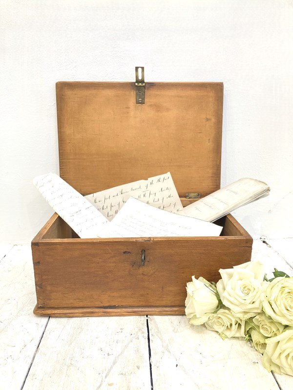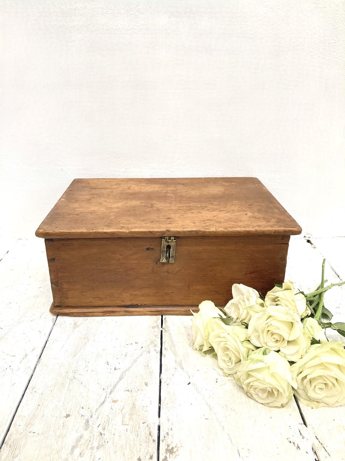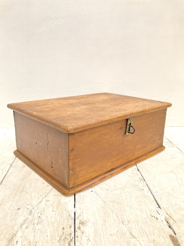 A sweet little tabletop pine box, c.1890 - perfect for storing papers, treasures & trinkets, this would also be a perfect momento box for a new born or Christening gift! Original brass catch - all in lovely condition.