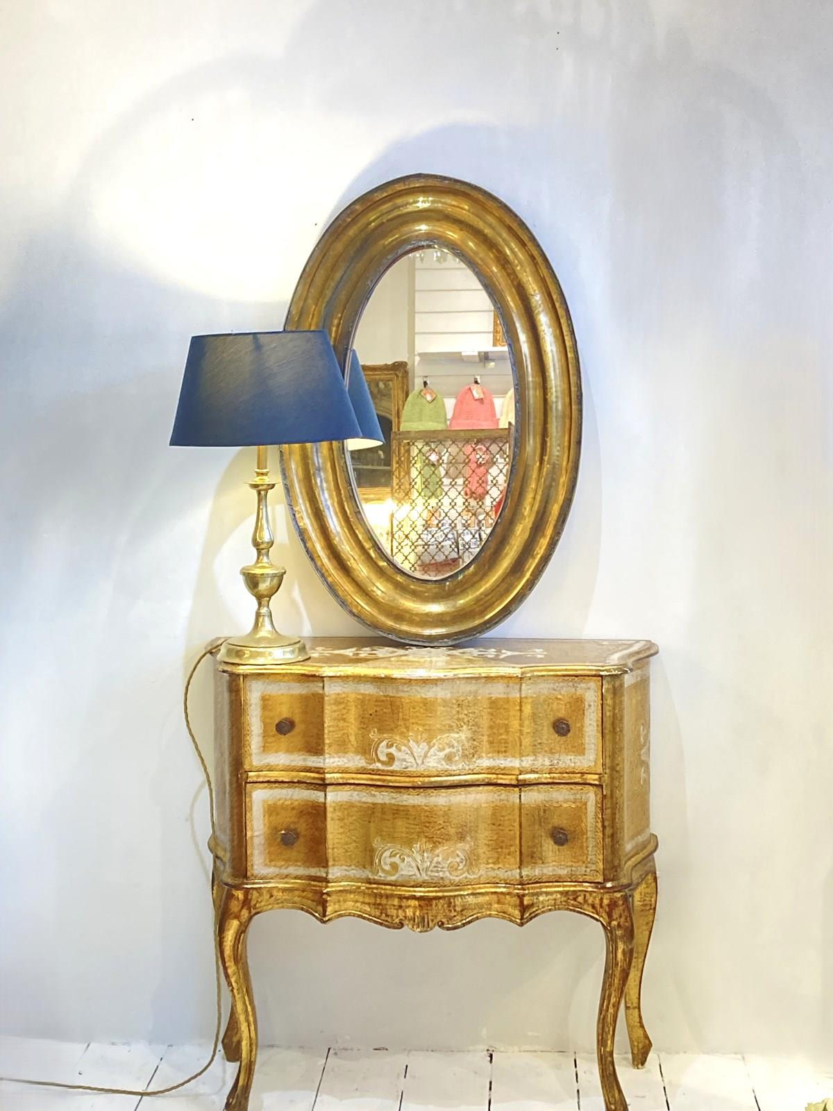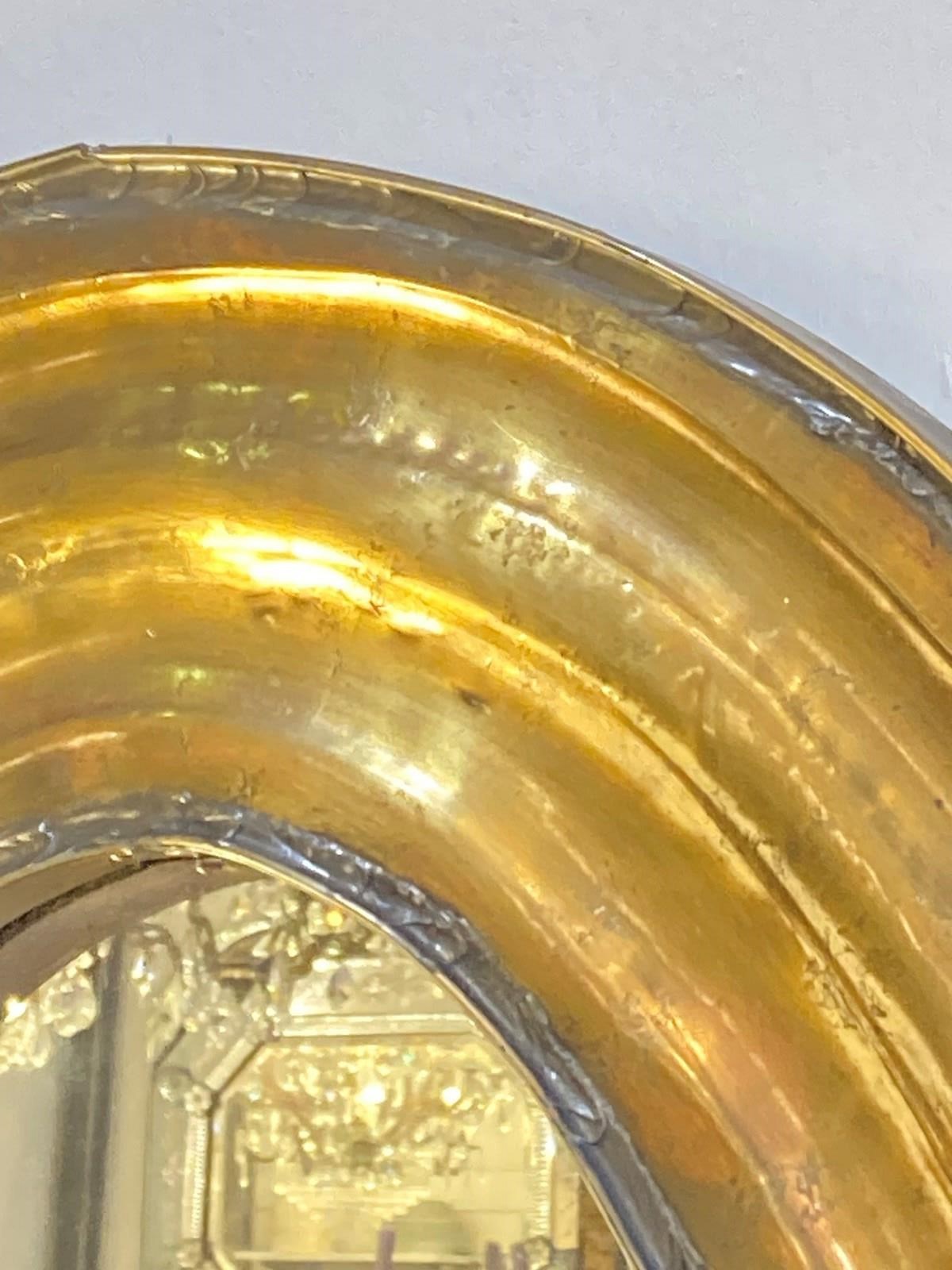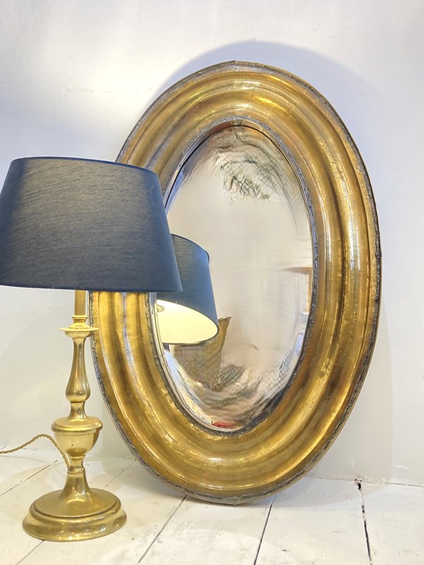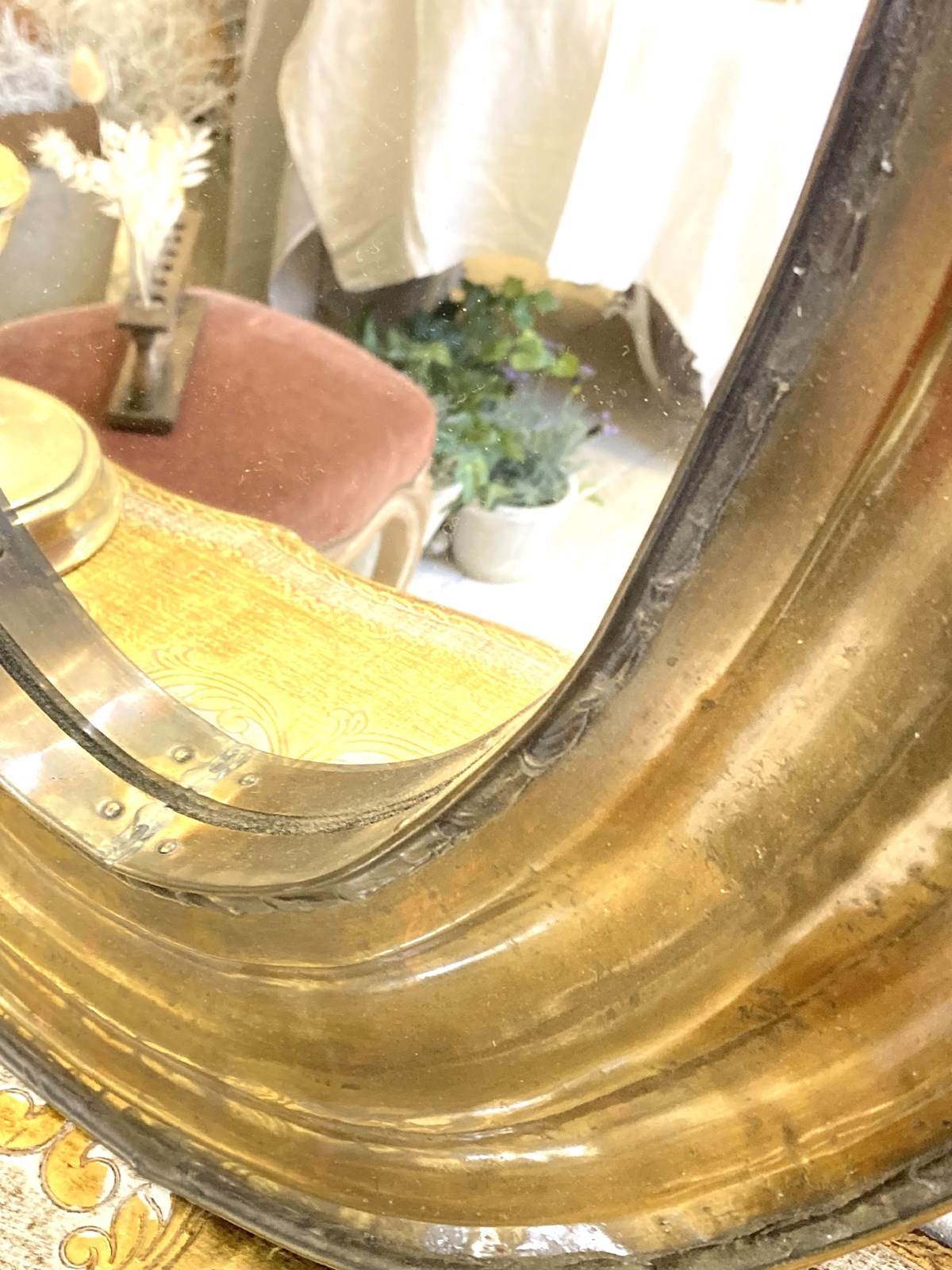 An utterly fabulous vintage French mirror with the most gorgeous chunky brass frame which has gently aged to a mellow, warm glow. The oval shape works just as well in portrait or landscape orientation - if you would like us to change the hanging (currently portrait) just let us know. A really striking piece.