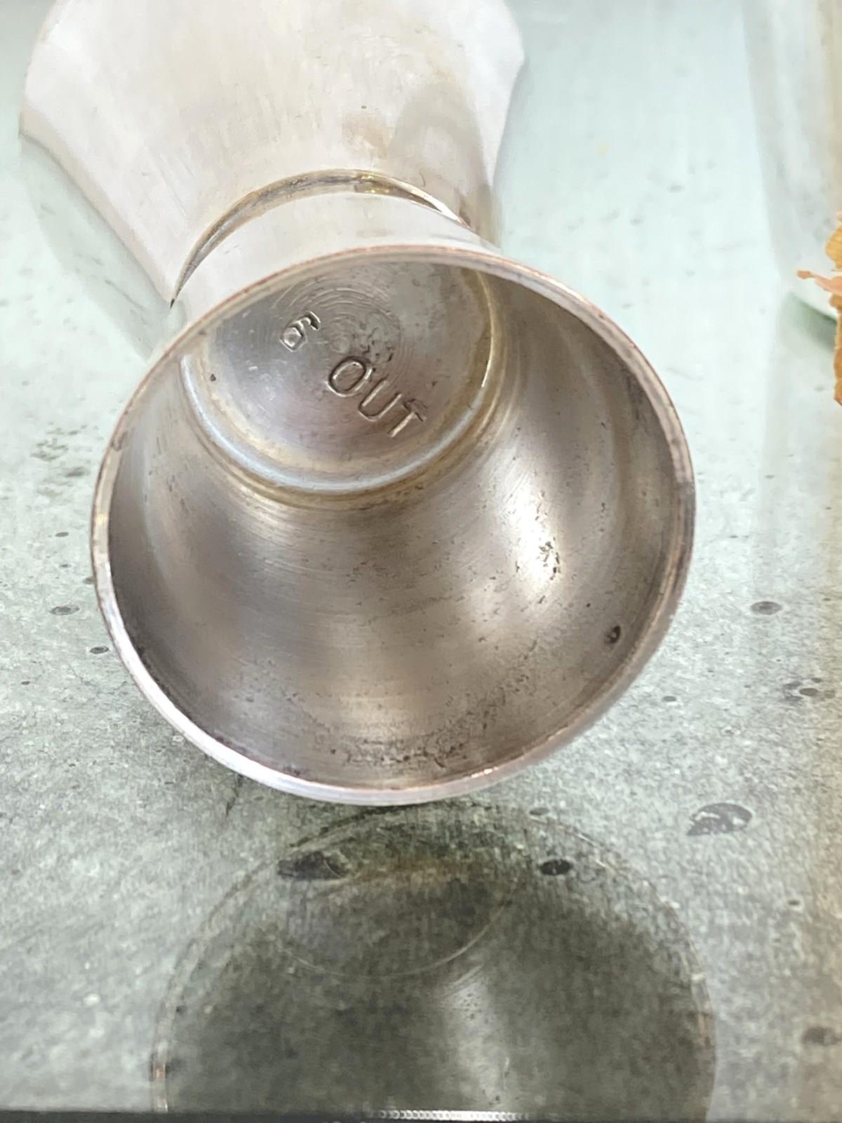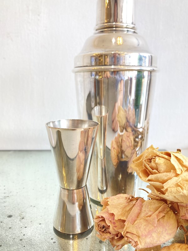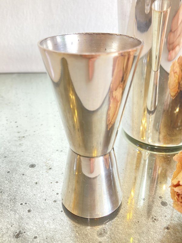 A really elegant and classically glamorous double ended spirit measure or jigger in silver plate - one end is for a single and the other for a double measure. A wonderful gift or addition to a cocktail trolley or home bar - in lovely condition.