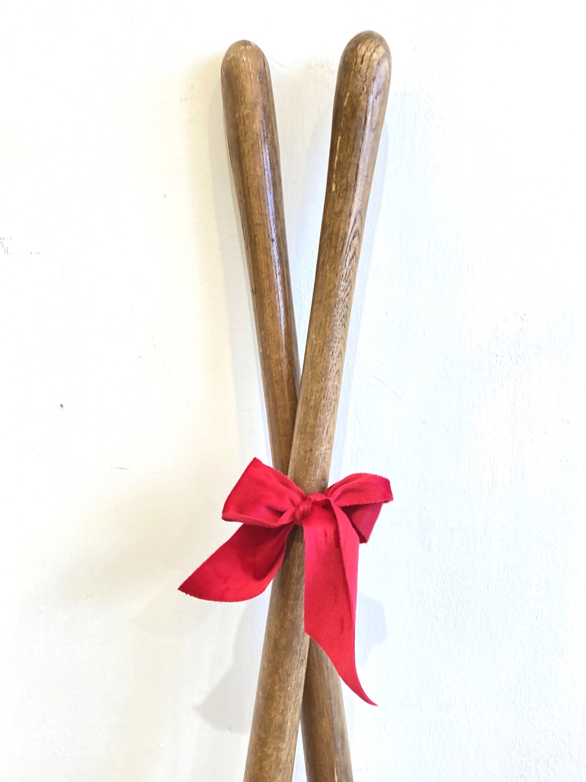 Now this is what Christmas used to be about!! So simple, handmade and just hours of fun (with the added danger of a potential visit to A&E!) A pair of vintage stilts, still perfectly fit for purpose - just wait until after you've had a turn to start on the wine...