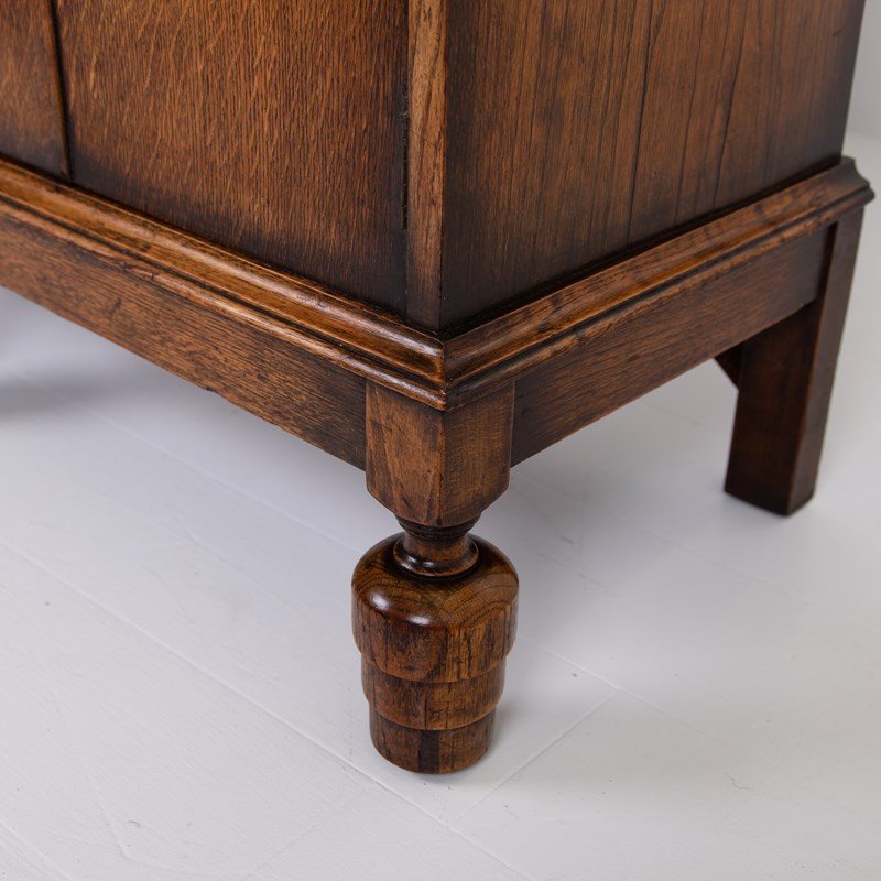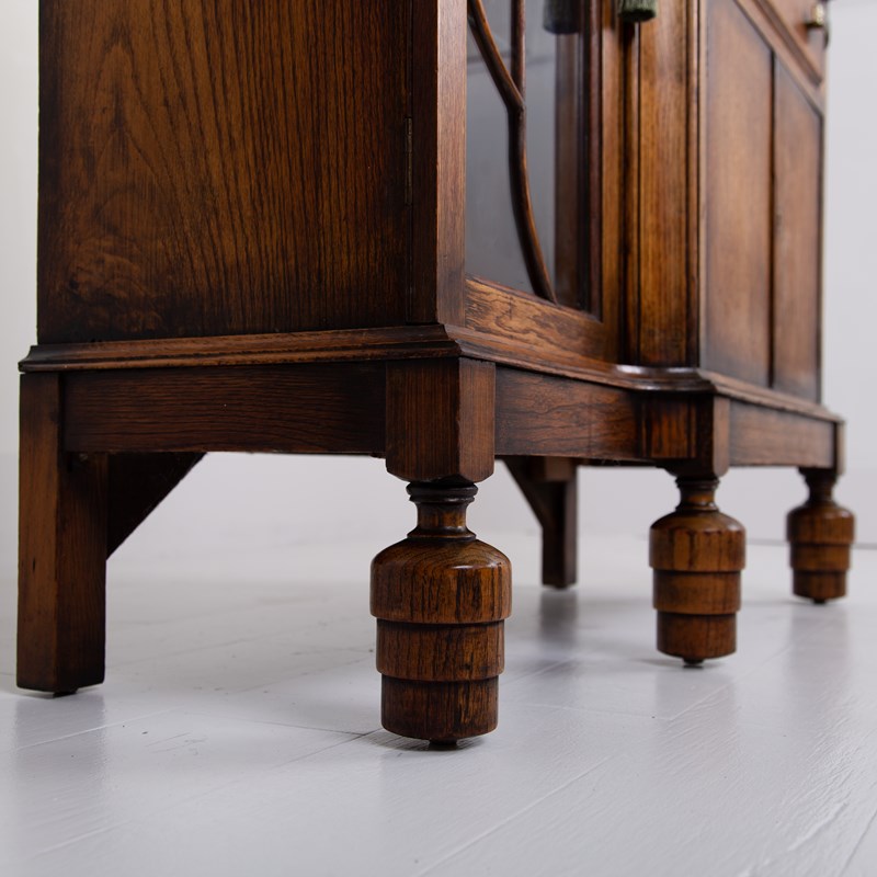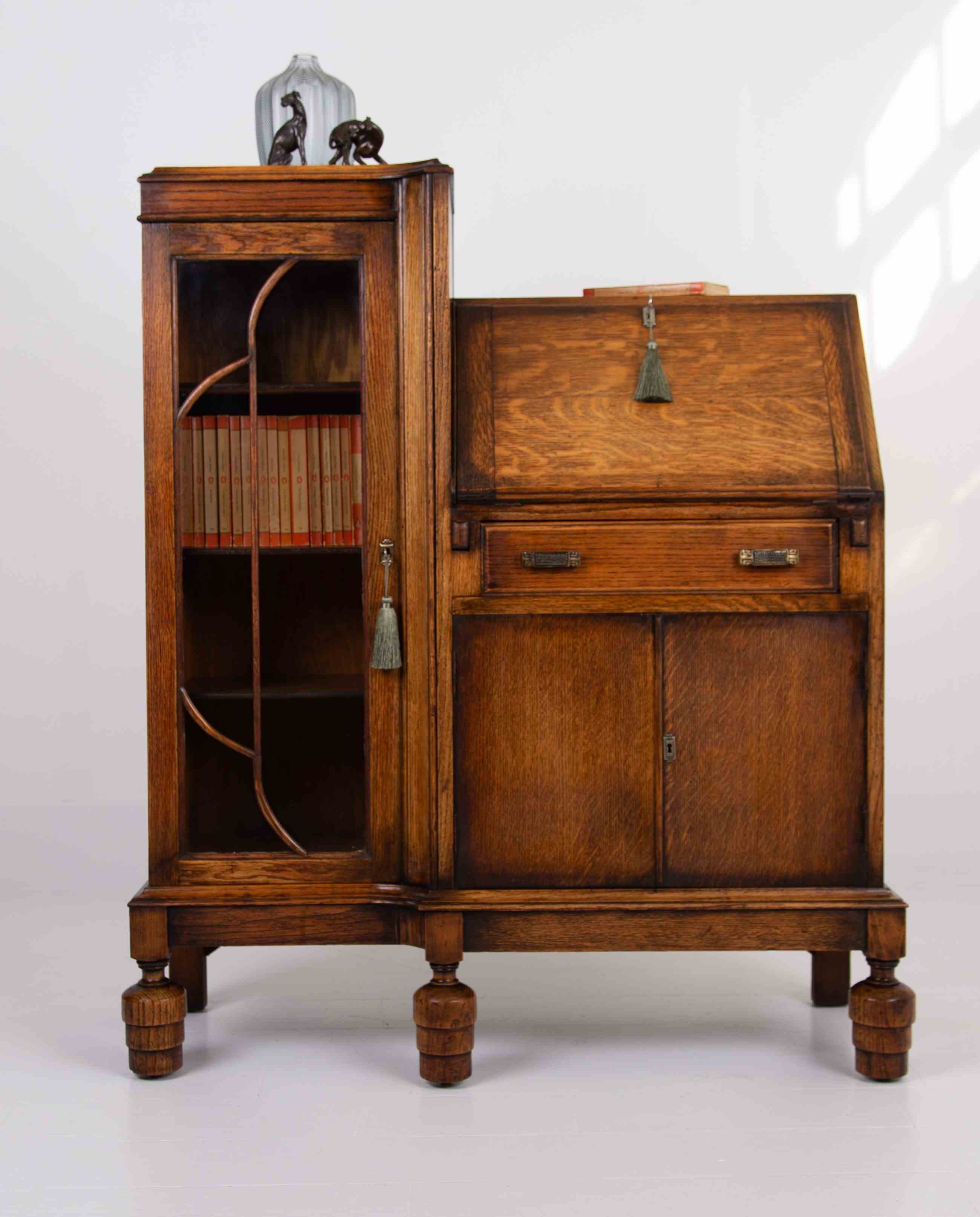 A rather gorgeous Art Deco bookcase bureau in solid English oak C1930 and very likely a commission piece - we’ve not seen one like this before.