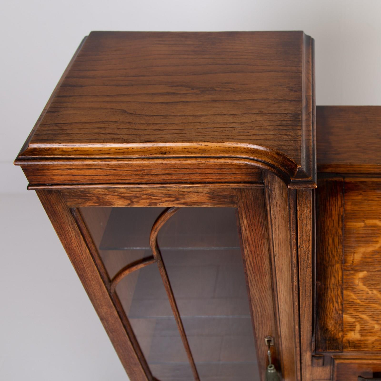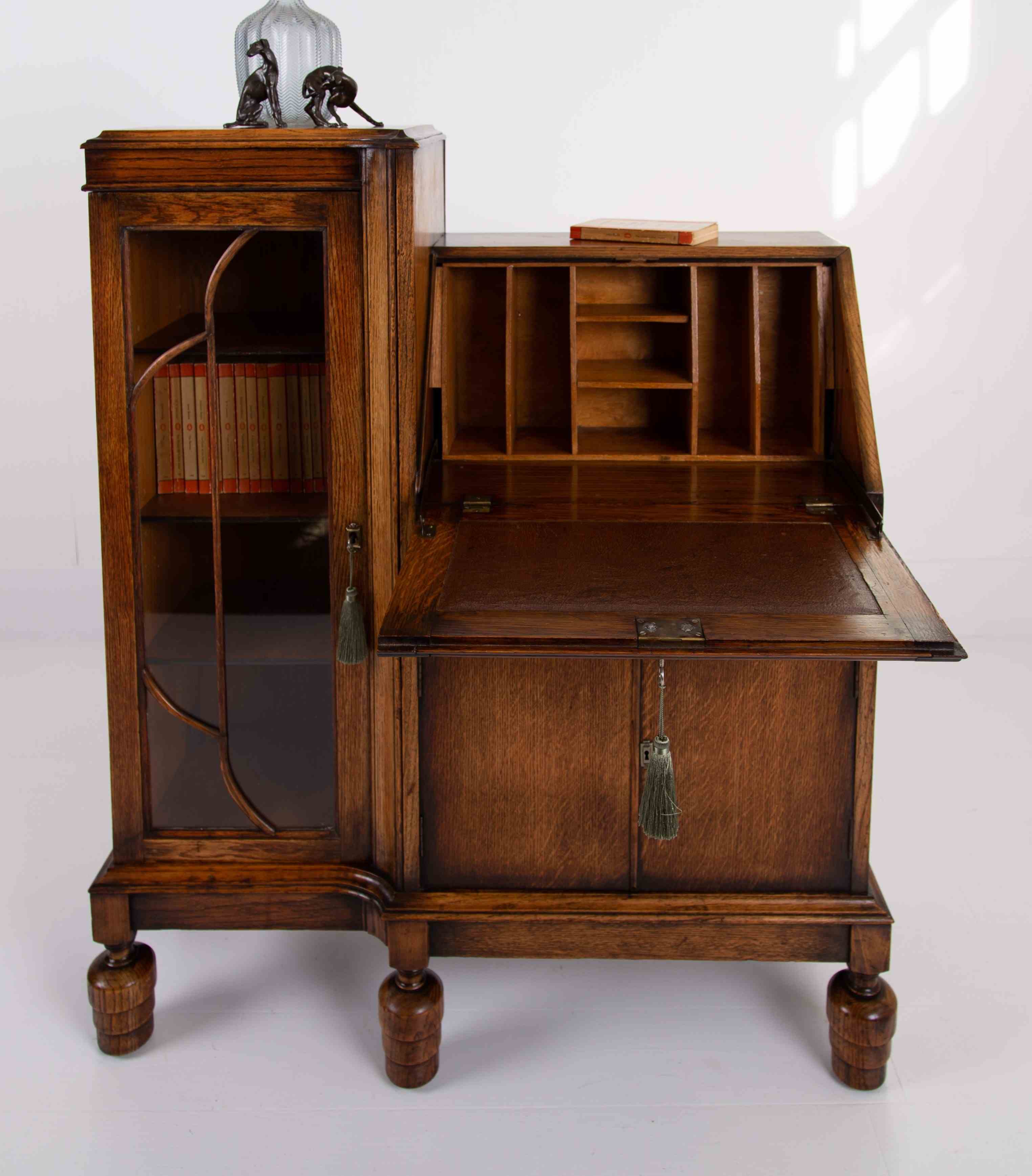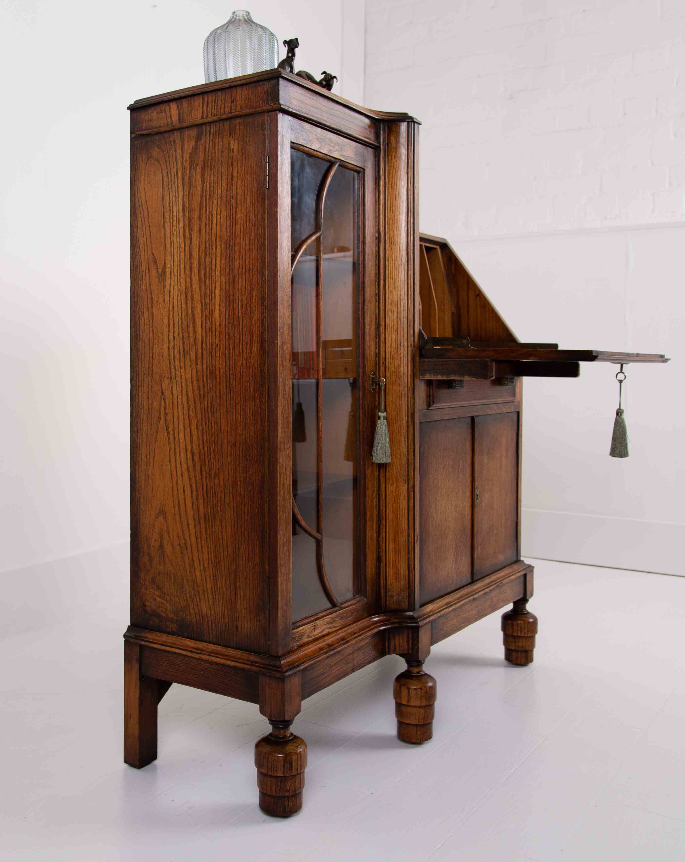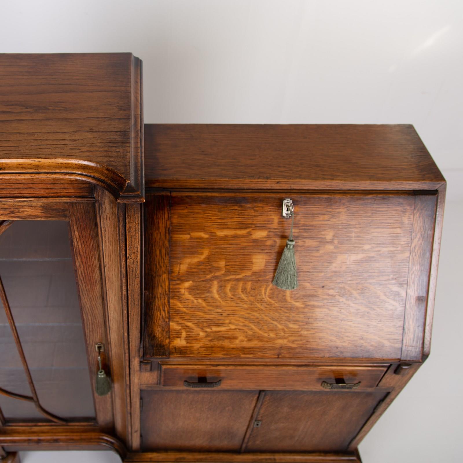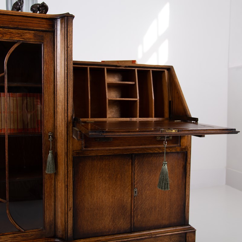 A Most Handsome Art Deco Oak Bureau Bookcase C1930