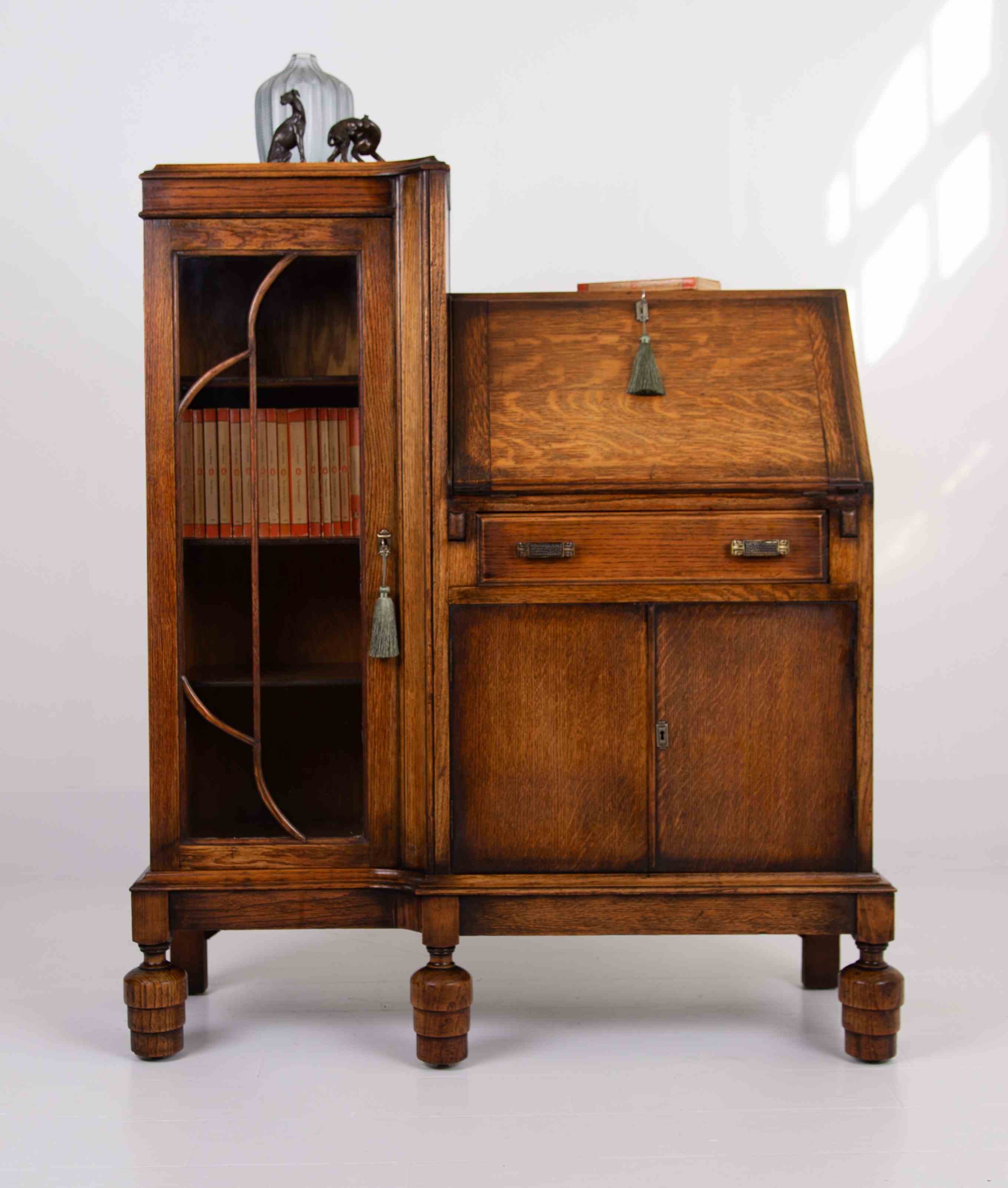 Art Deco Oak Bureau Bookcase C1930
