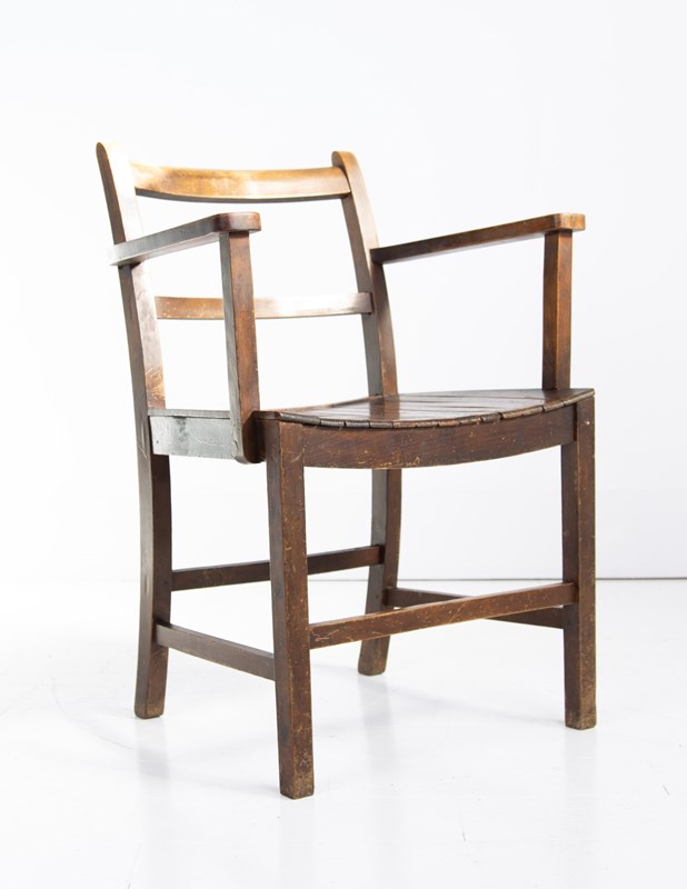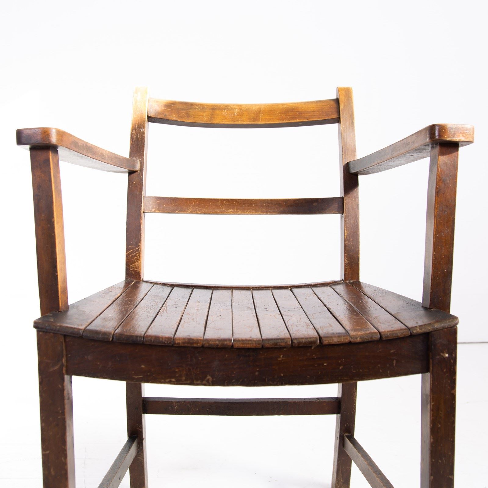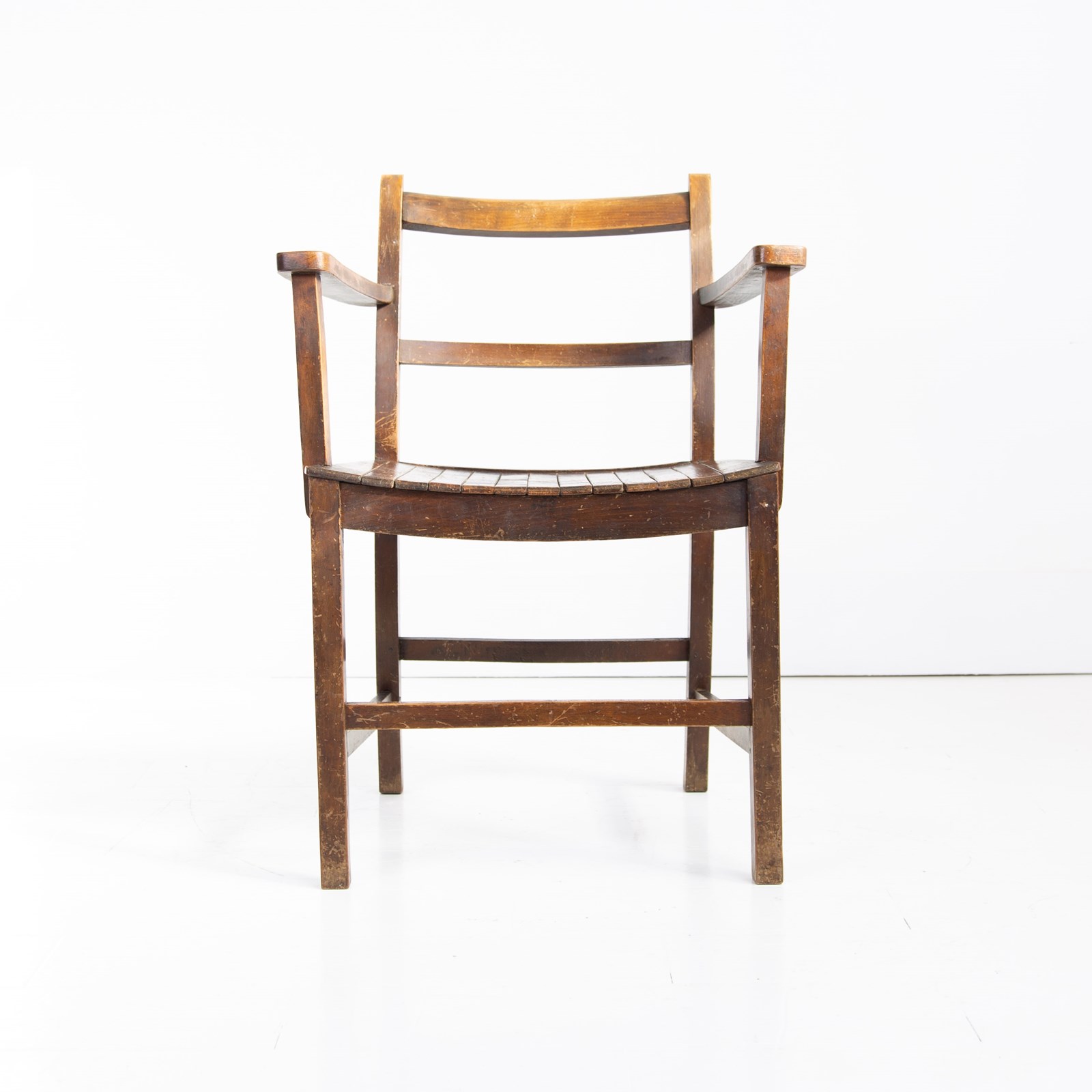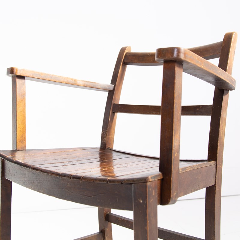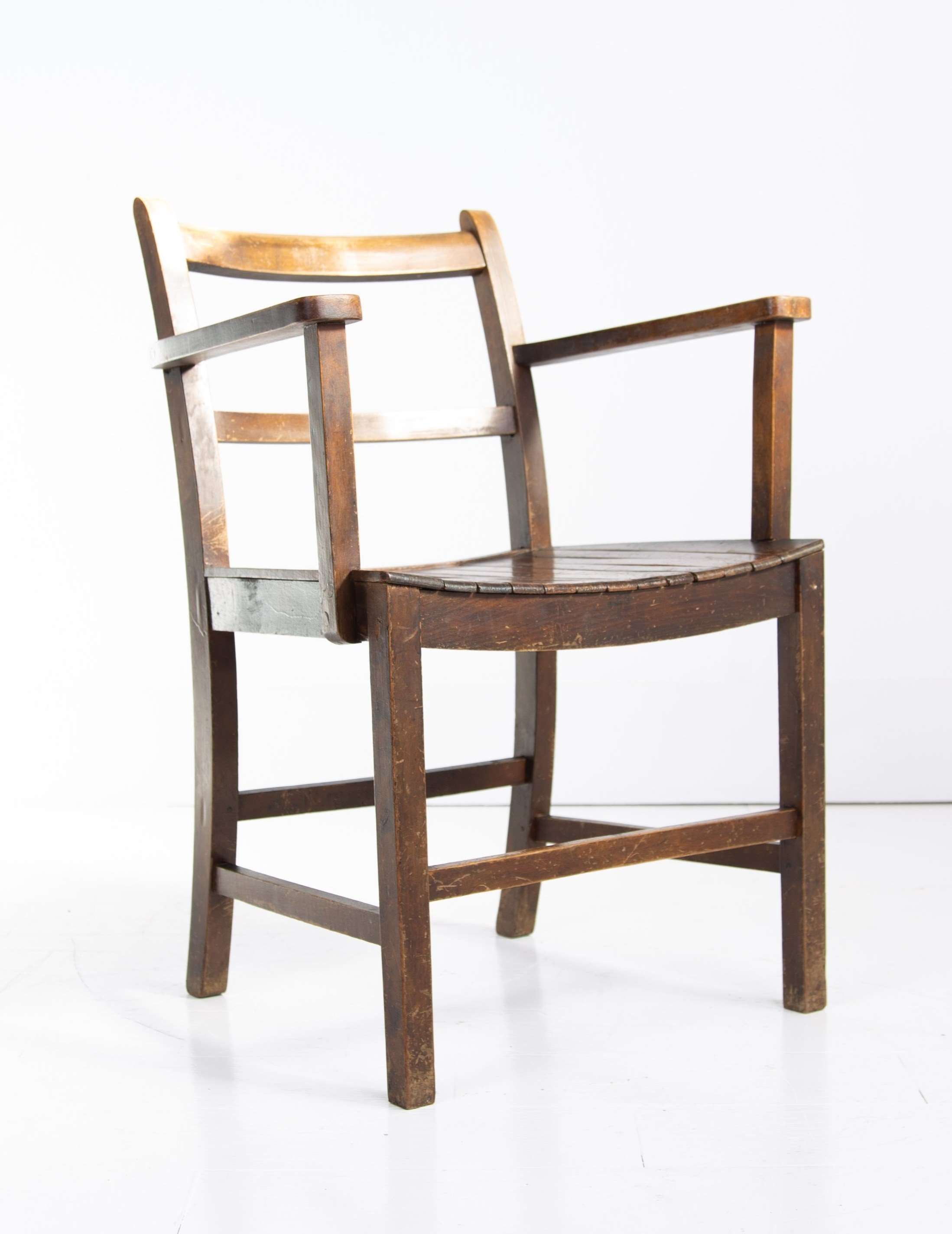 A great looking military issue armchair with a slatted seat and bar back sitting in lovely original condition with just the right amount of genuine wear. This one could be slotted into so many spaces - a perfect partner for a desk, great for the bathroom, spot on for a hallway and good in the kitchen…