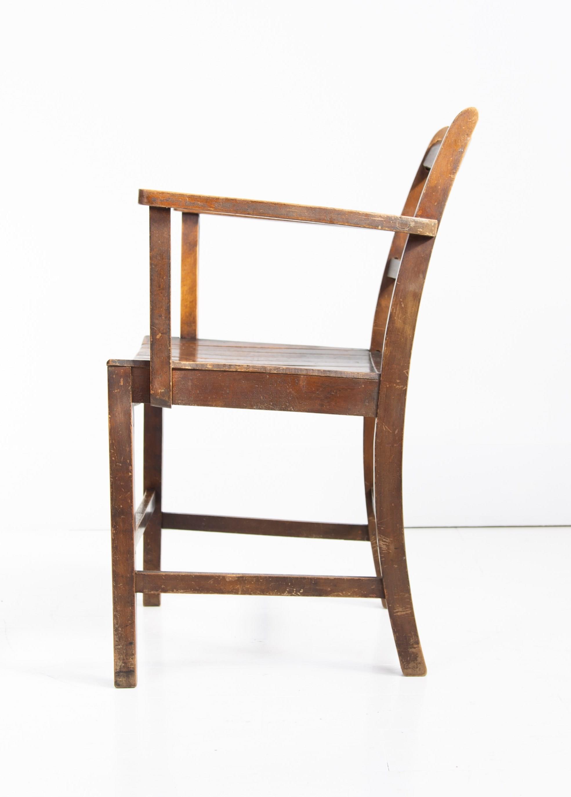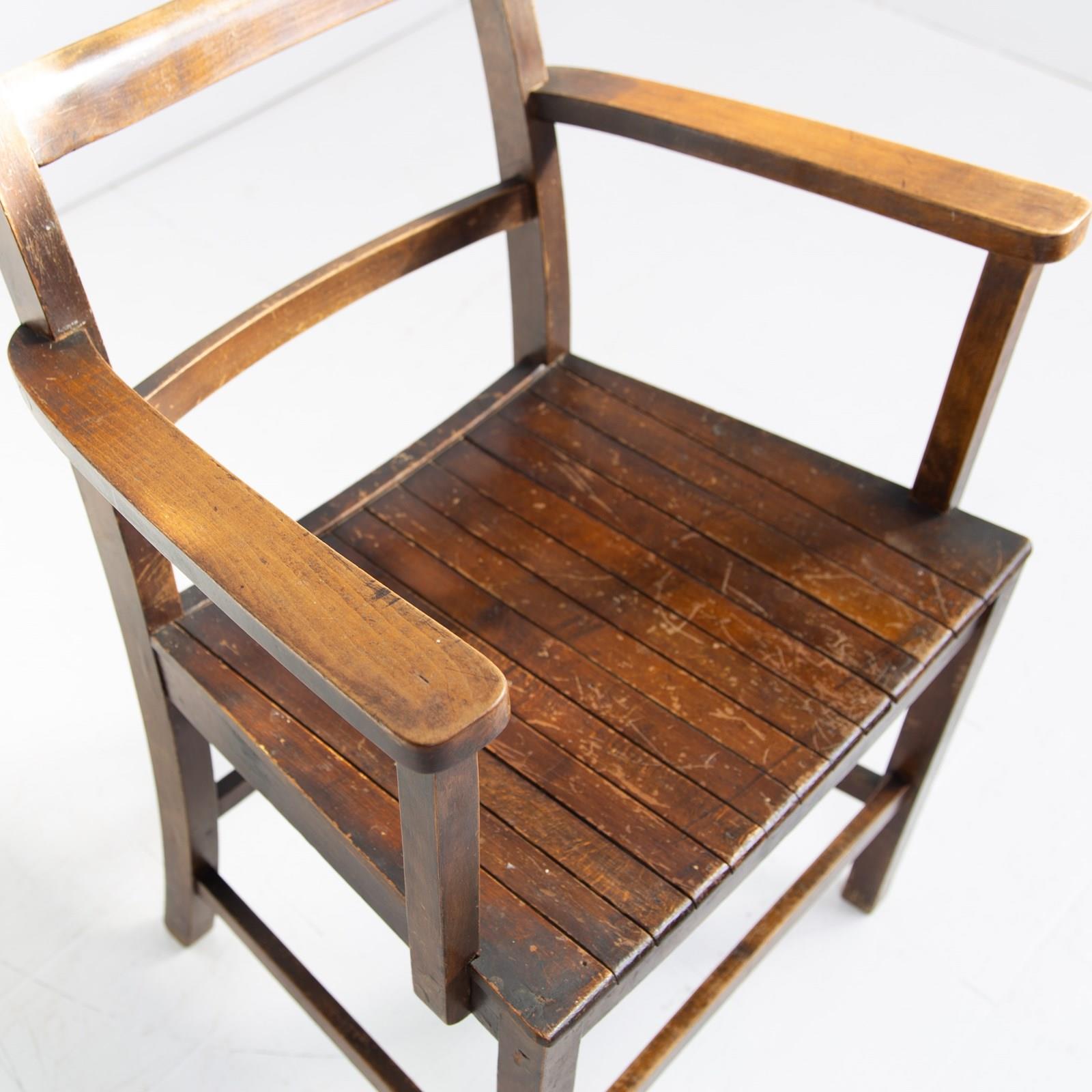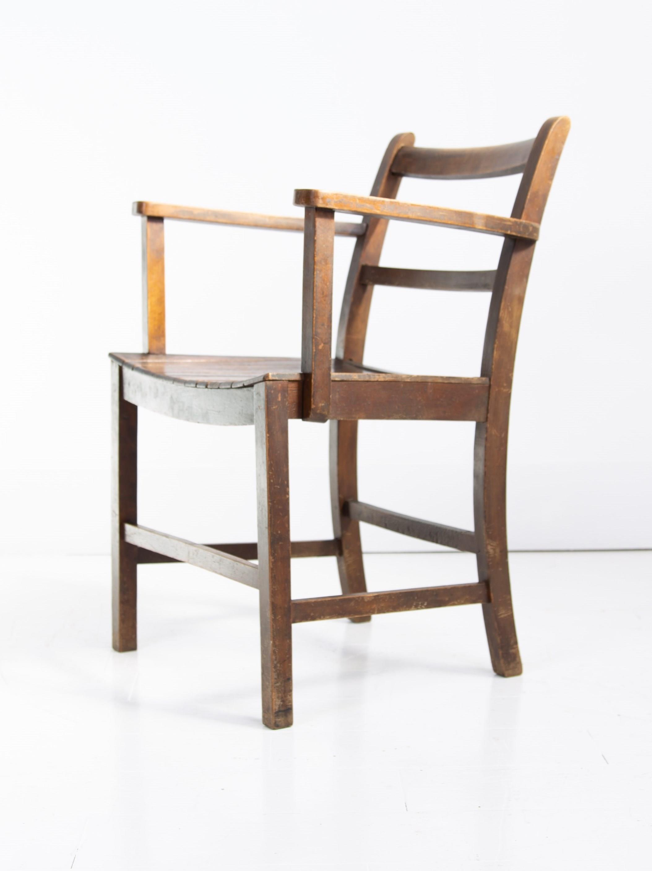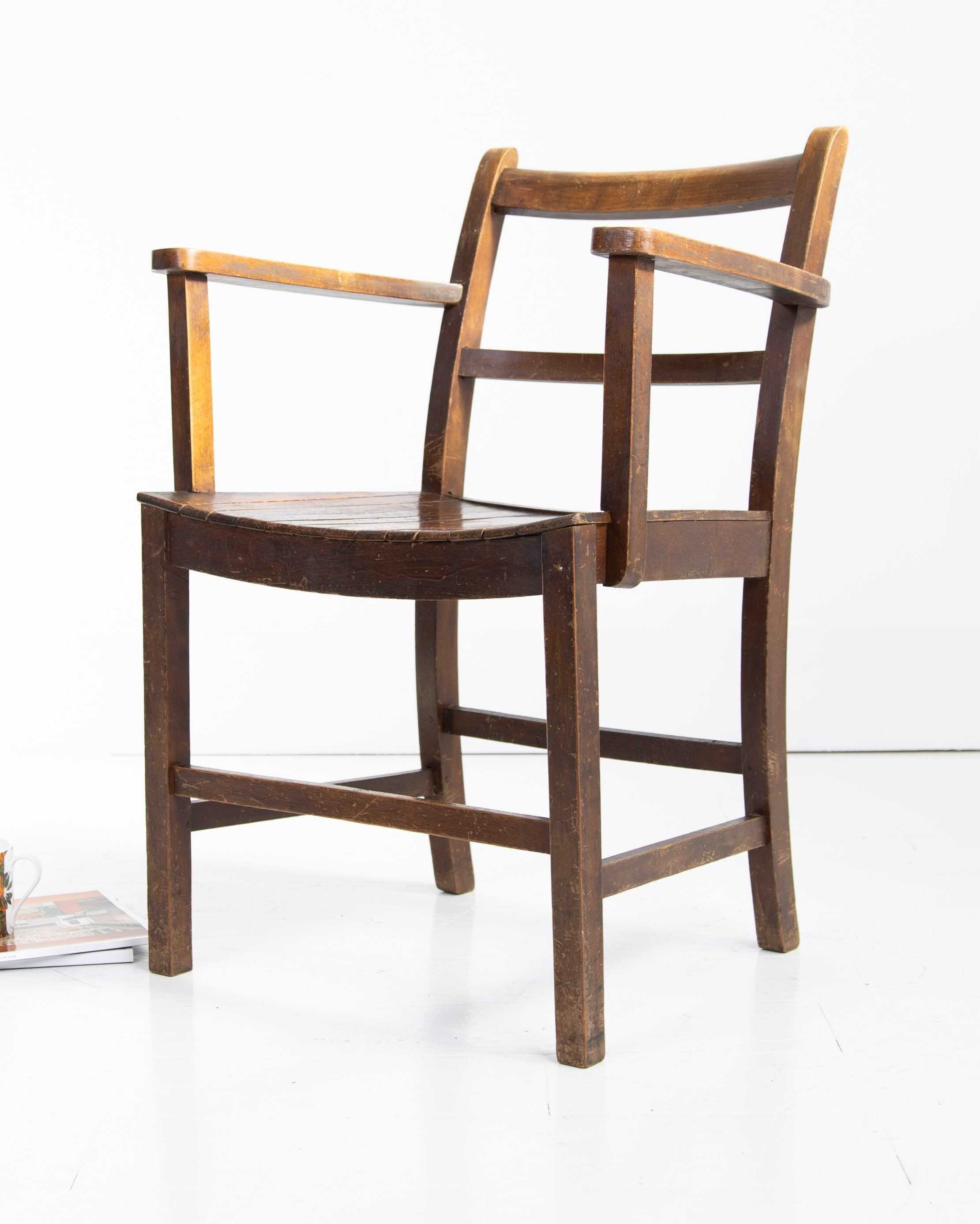 A great looking military issue armchair with a slatted seat and bar back sitting in lovely original condition with just the right amount of genuine wear. This one could be slotted into so many spaces - a perfect partner for a desk, great for the bathroom, spot on for a hallway and good in the kitchen…