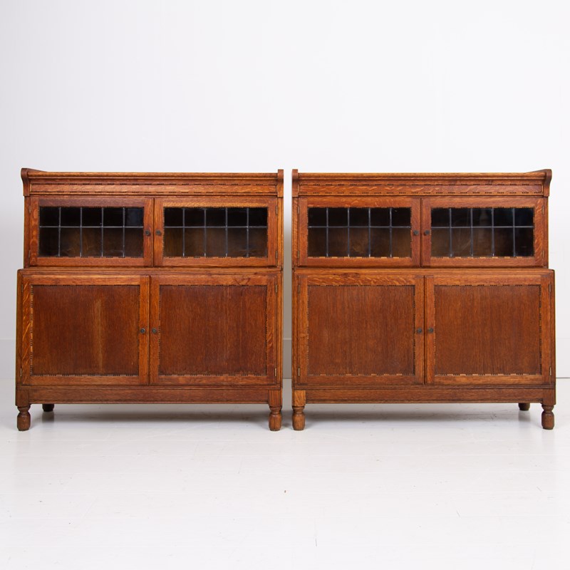 A Pair Of Oak Glazed Bookcases C1920 By Minty Oxford