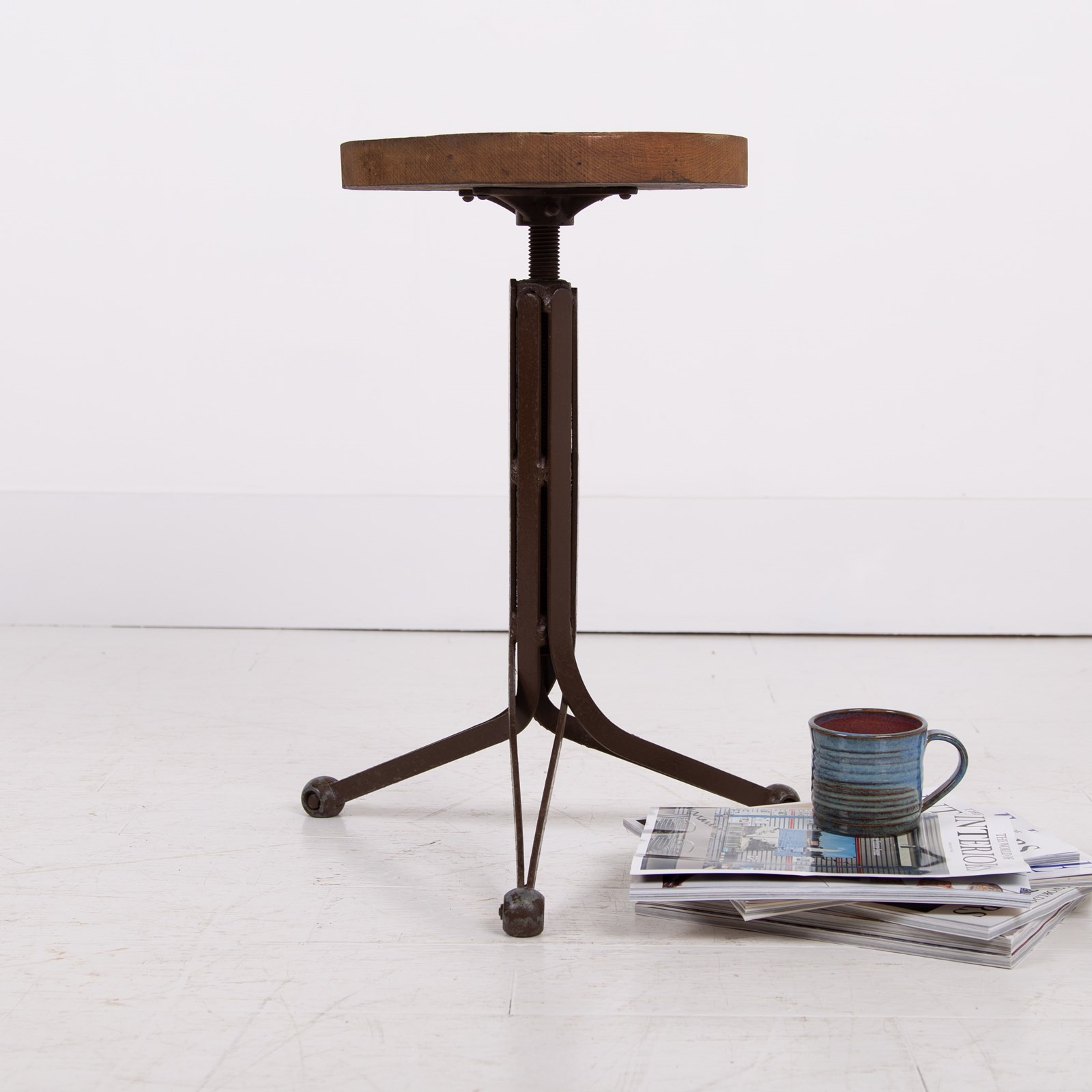 We have a rather good looking Rubery Owen Blade Stool C1940 in tremendous original condition in workshop paint and with its thick elm top. This one benefits from being adjustable in height unlike some. We love the character and design on these and this one is pretty much untouched.