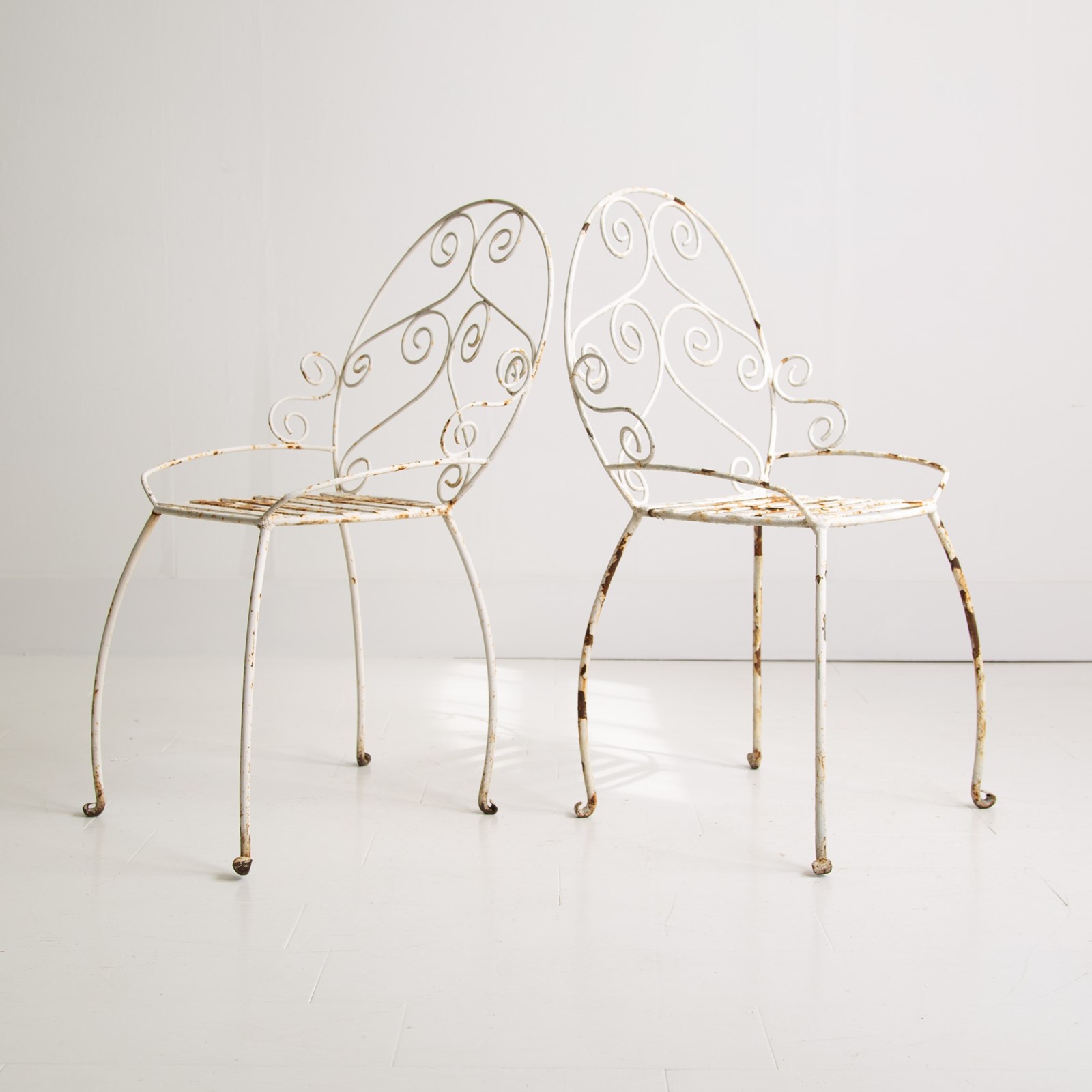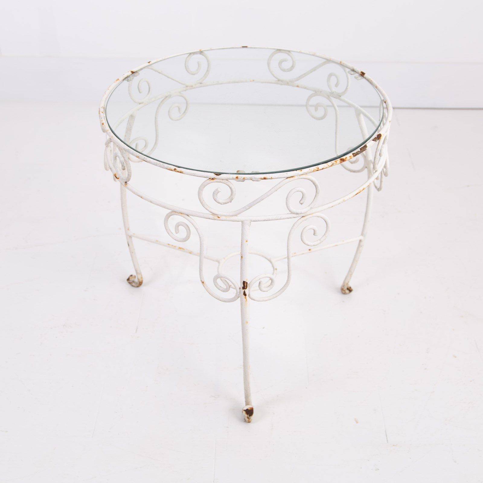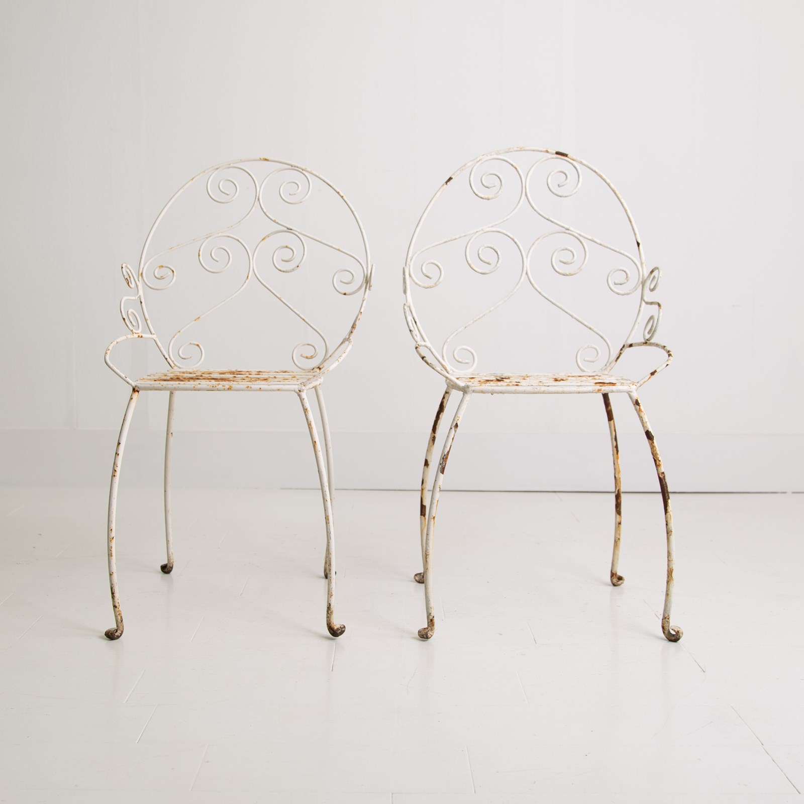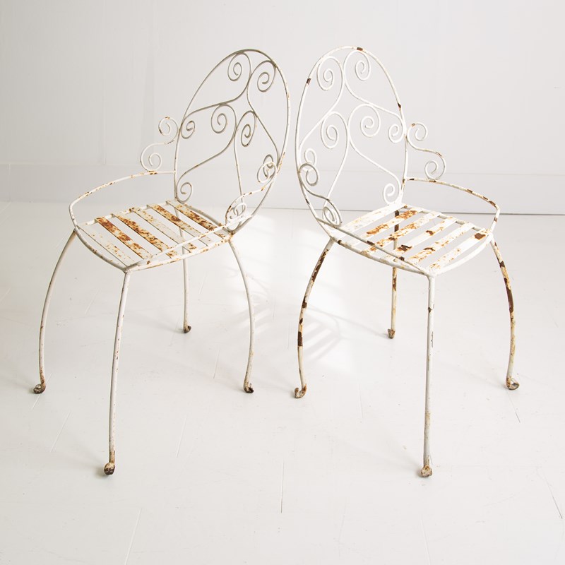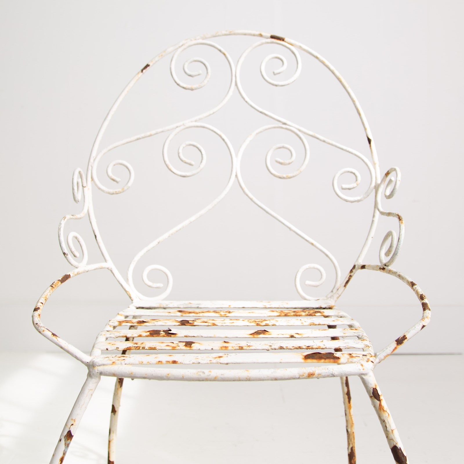 A rather delightfully attractive weathered and aged patio set consisting of a little round table and 2 matching chairs. A fab size for a little patio or roof terrace and ready to place with sensible aging to the iron frames and glass top. Very decorative with swirls and curves galore.