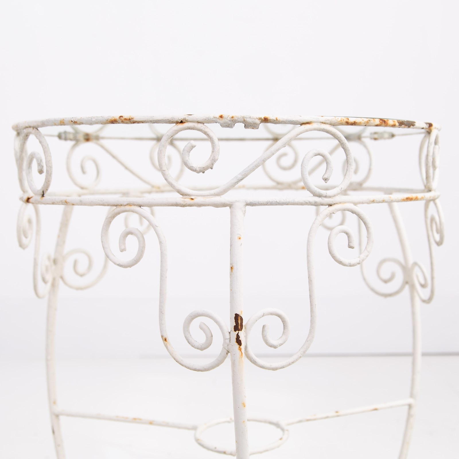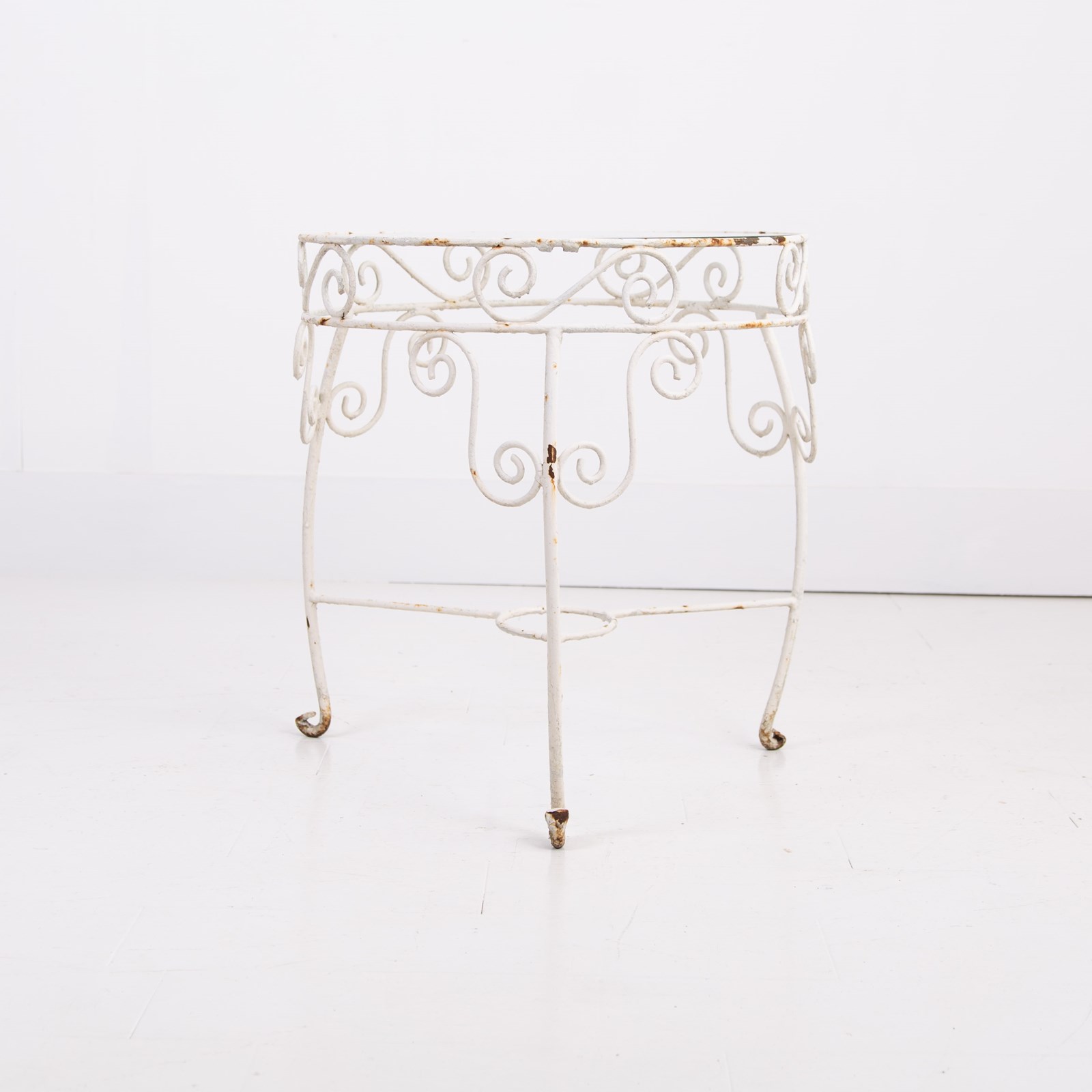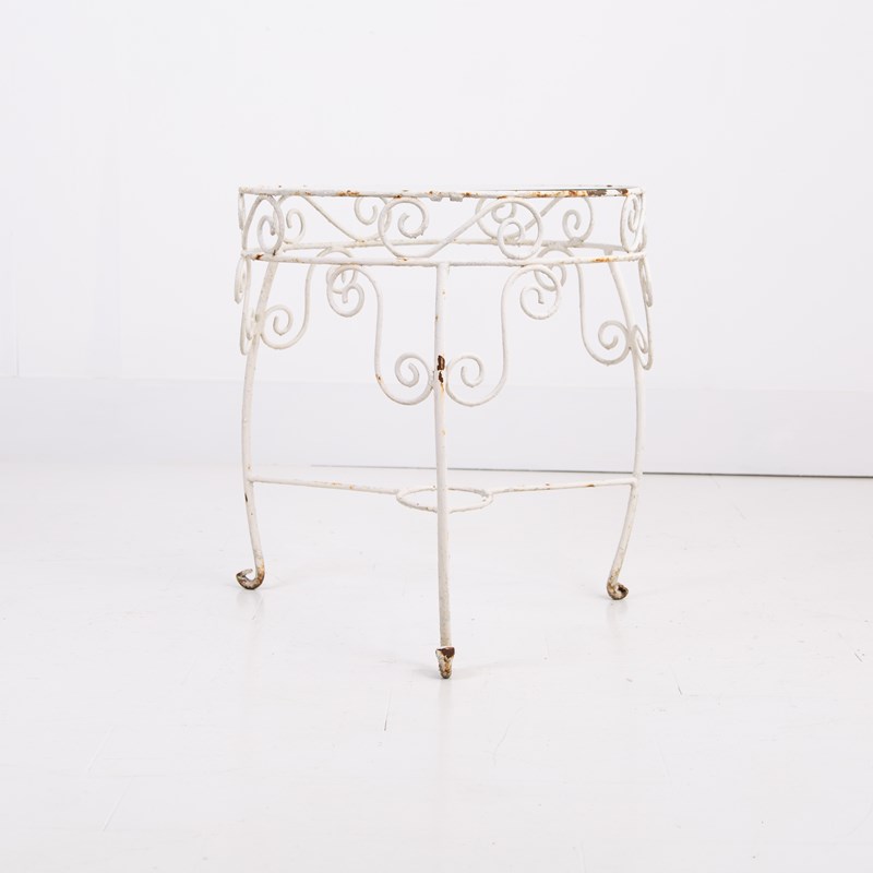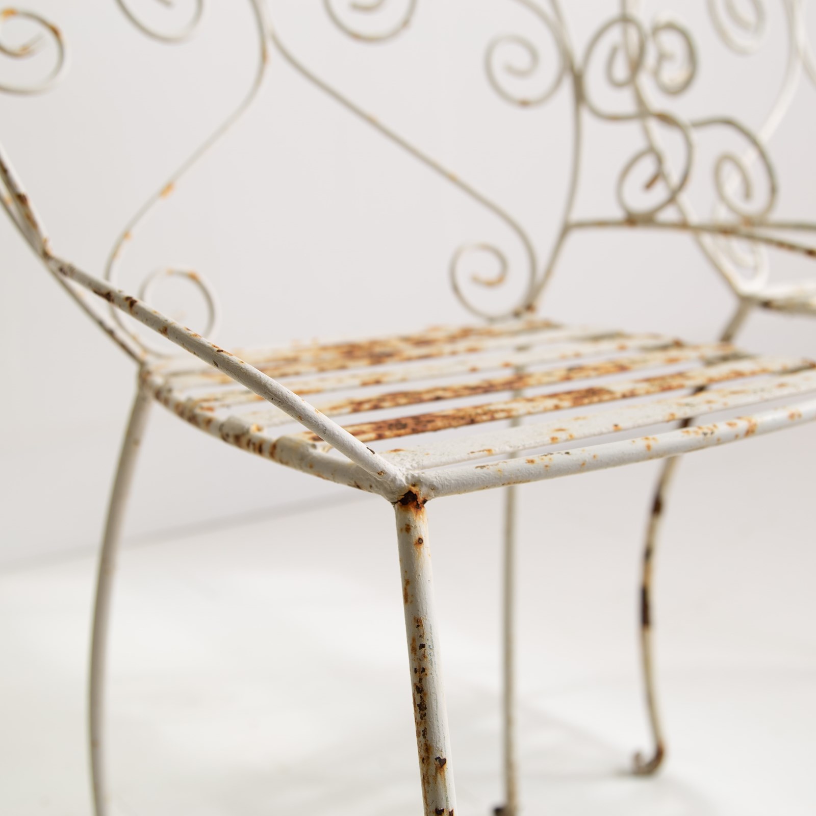 A rather delightfully attractive weathered and aged patio set consisting of a little round table and 2 matching chairs. A fab size for a little patio or roof terrace and ready to place with sensible aging to the iron frames and glass top. Very decorative with swirls and curves galore.