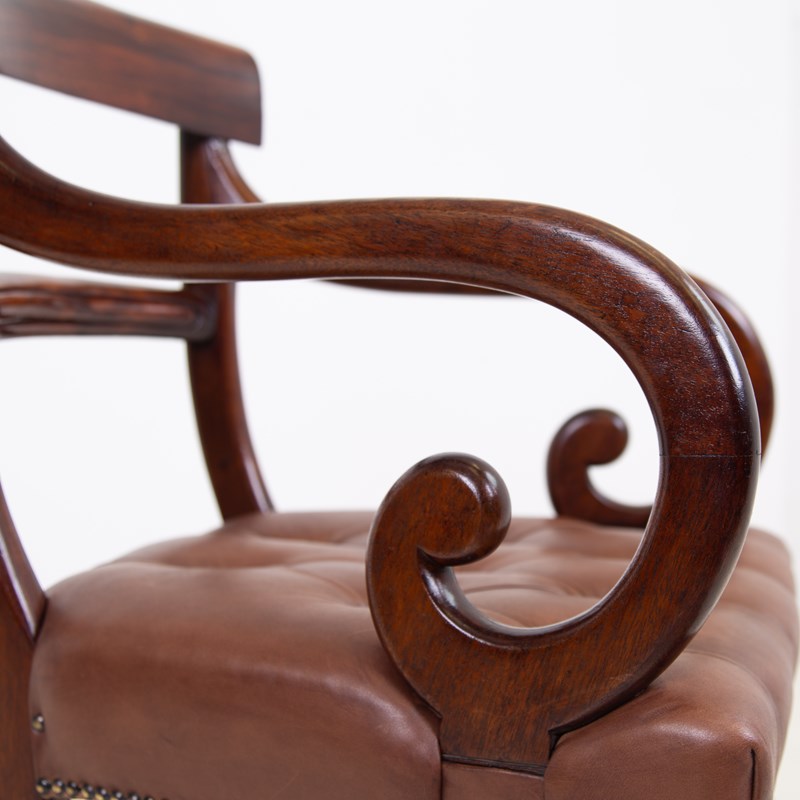 Antique Scroll Armchair Leather Seat C.1860 We Have 2