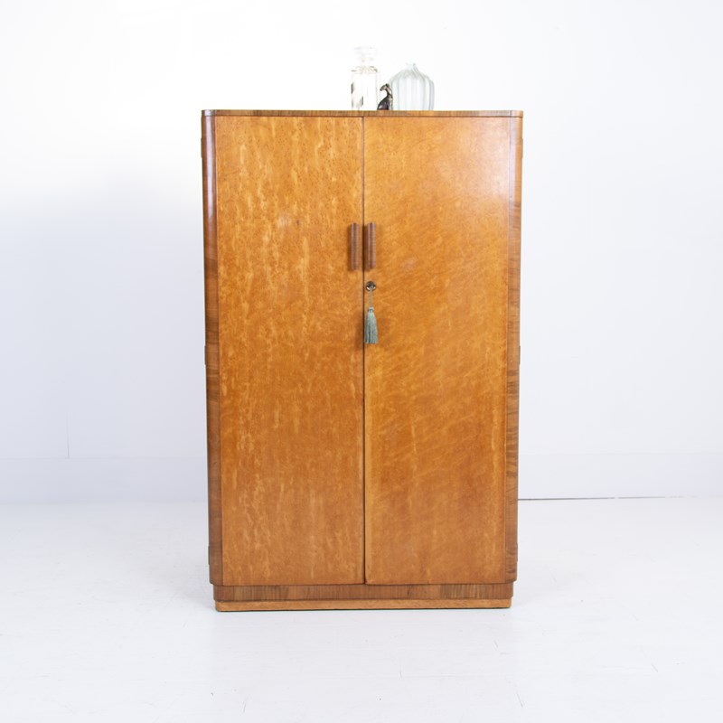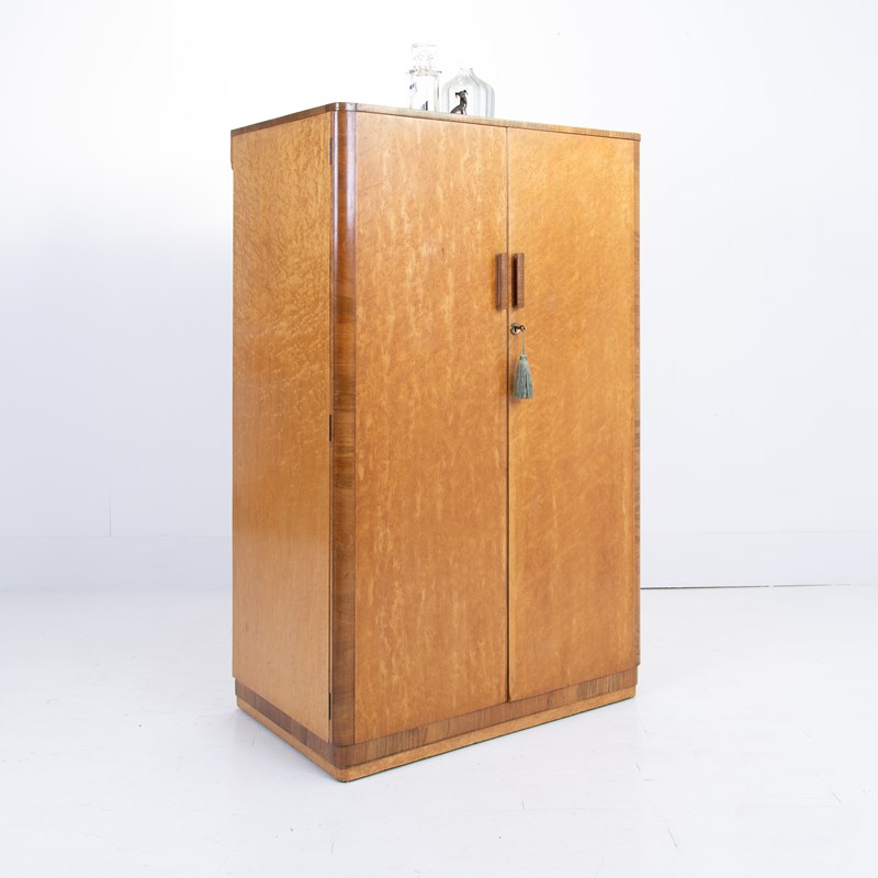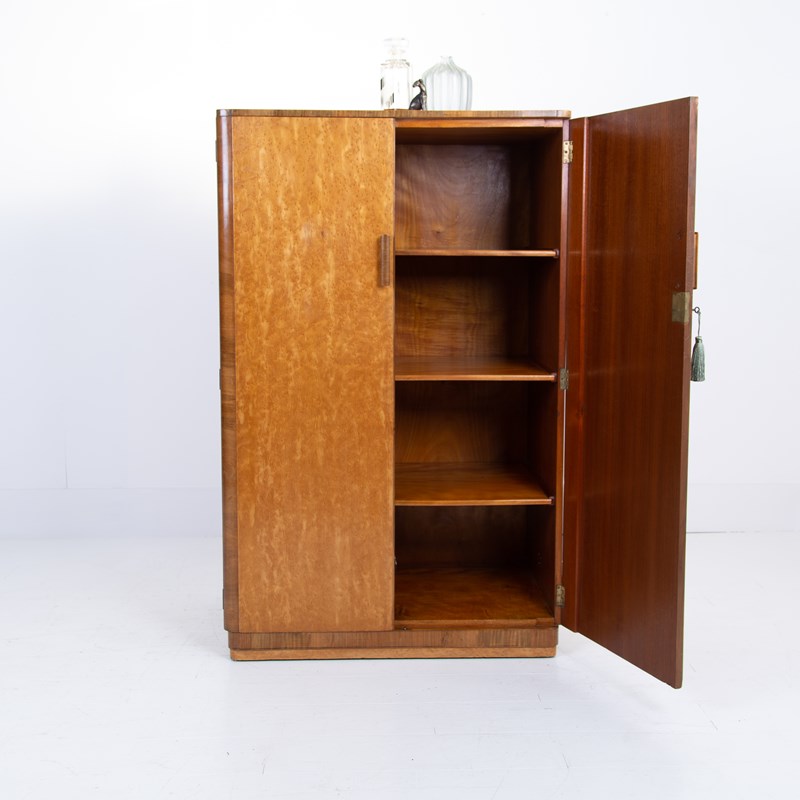 Super quality and classic Art Deco design, we have a birds eye maple cabinet/cupboard in lovely original condition with the bonus of a working lock and key. It is of sensible proportions and would fit into so many spaces in a period home or modern apartment.