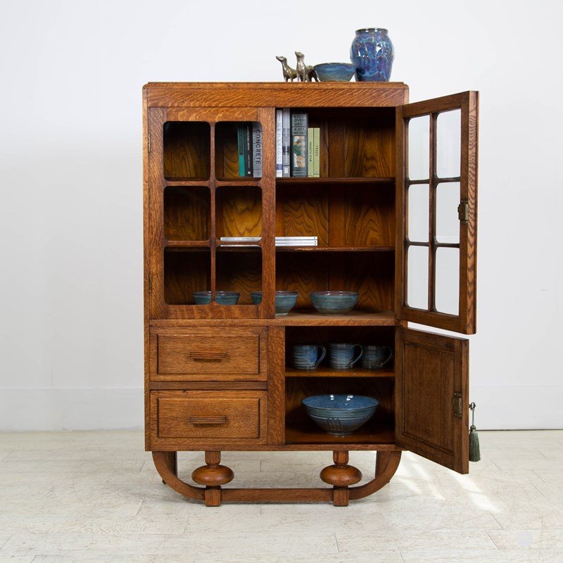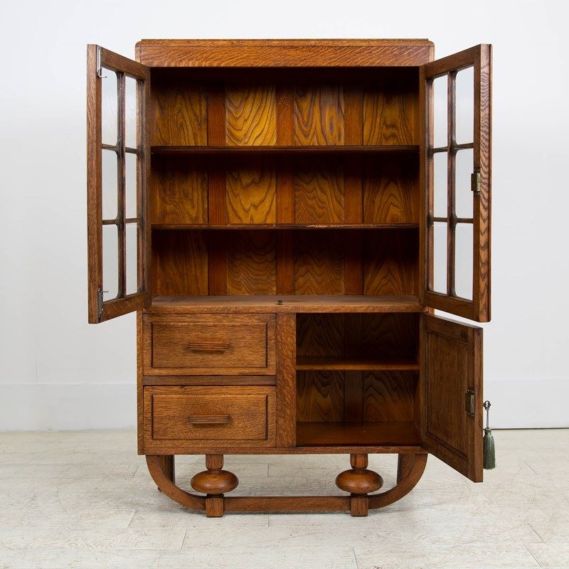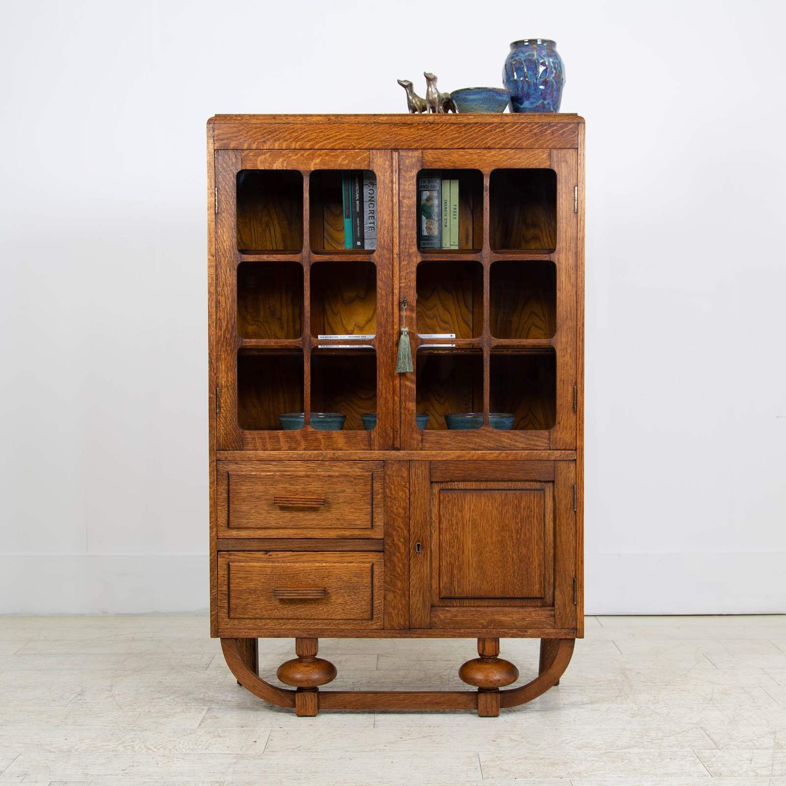 Art Deco Oak Glazed Cabinet Bookcase C1930